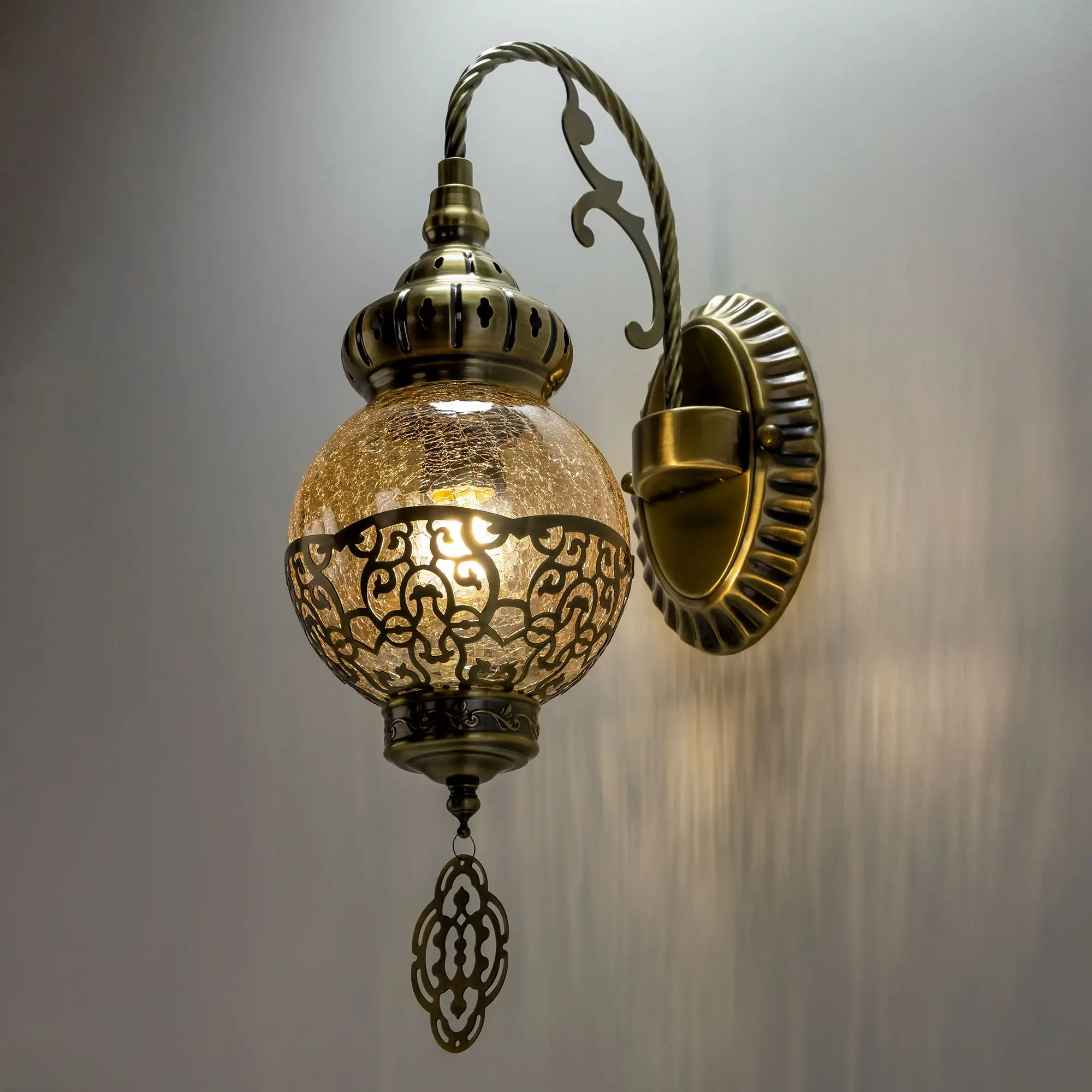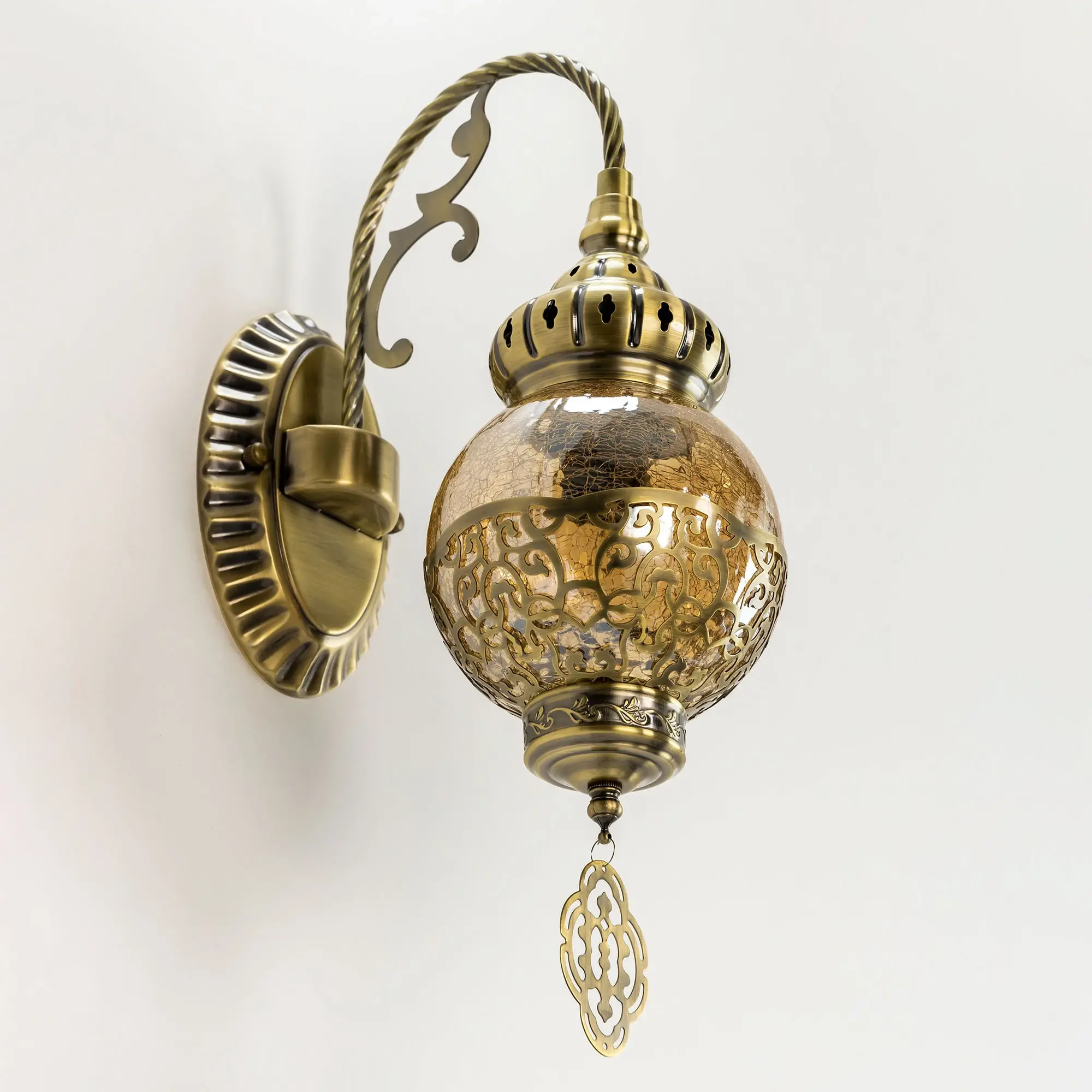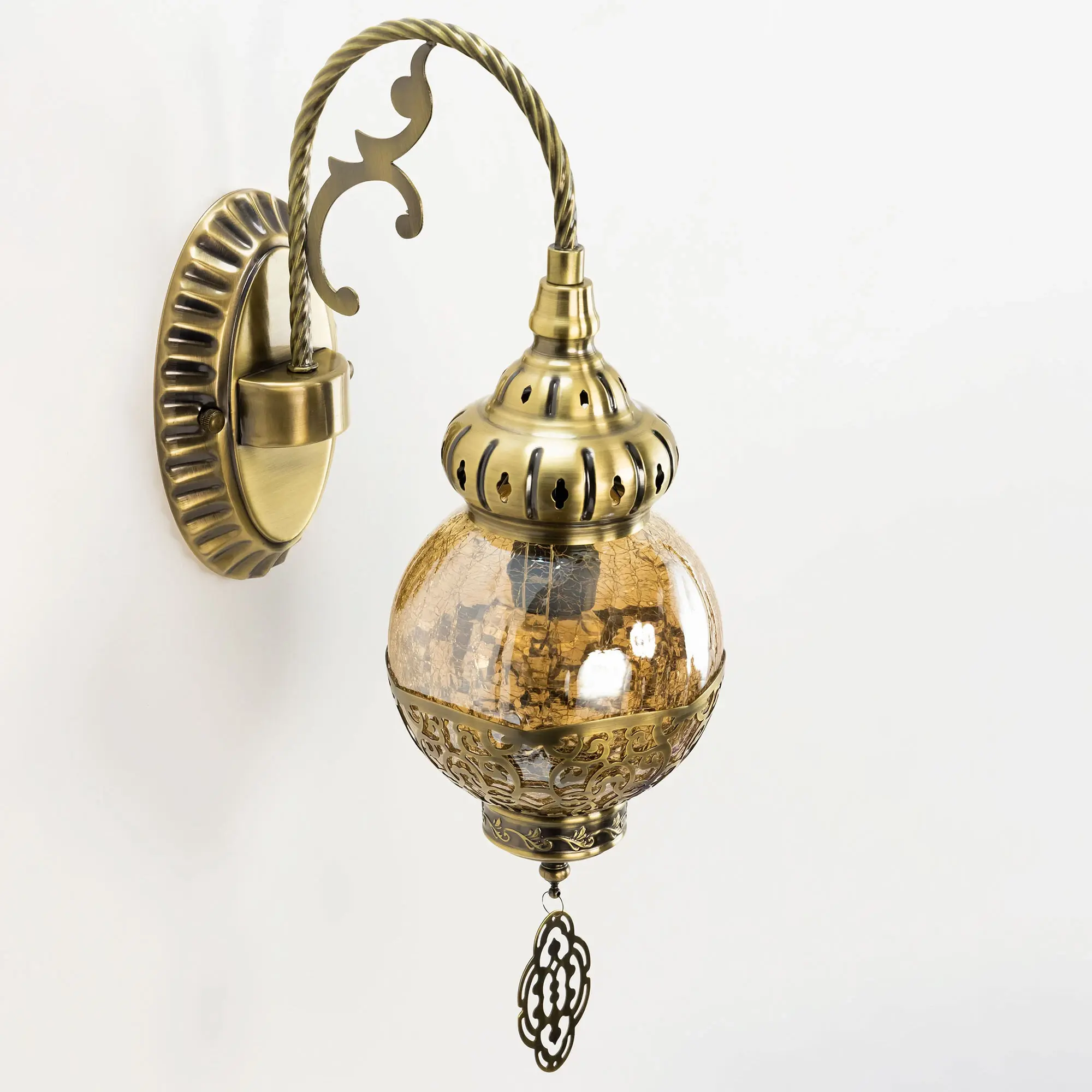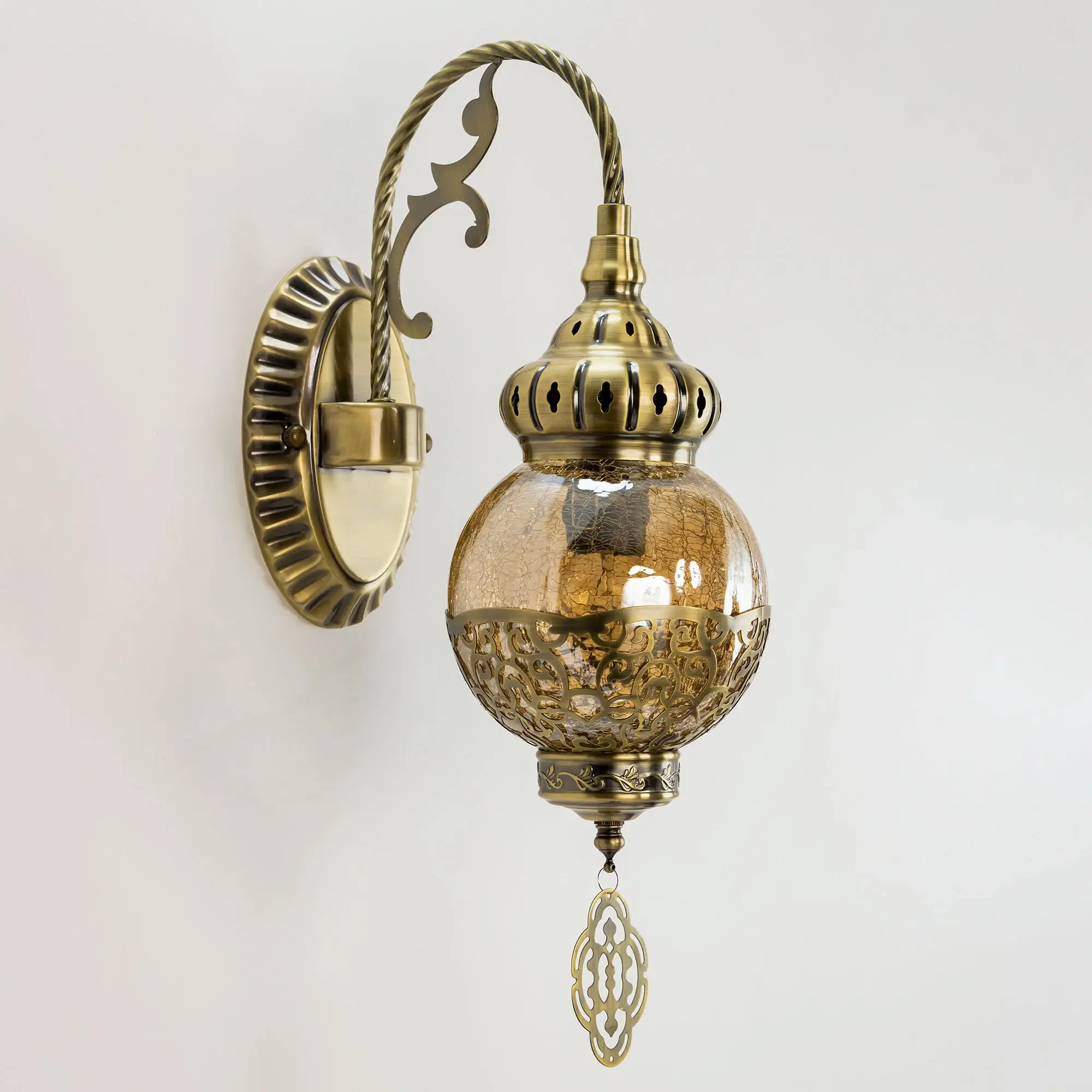 Восточный настенный светильник Citilux Каир CL419313 с одним плафоном. Корпус металлический, цвет бронза. Плафон в форме шара, изготовлен из прозрачного стекла медового оттенка, украшен декоративными, ажурными элементами. В изделии используется лампа с цоколем Е27, максимальной мощностью для ламп накаливания 75Вт. Светодиодные лампы можно устанавливать более яркие. Тип крепления к стене – планка. Бра Каир CL419313 прекрасный вариант для атмосферного освещения интерьеров квартир и загородных домов, выполненных в восточном стиле. Это великолепное решение при оформлении уютных кафе, баров и ресторанов.,