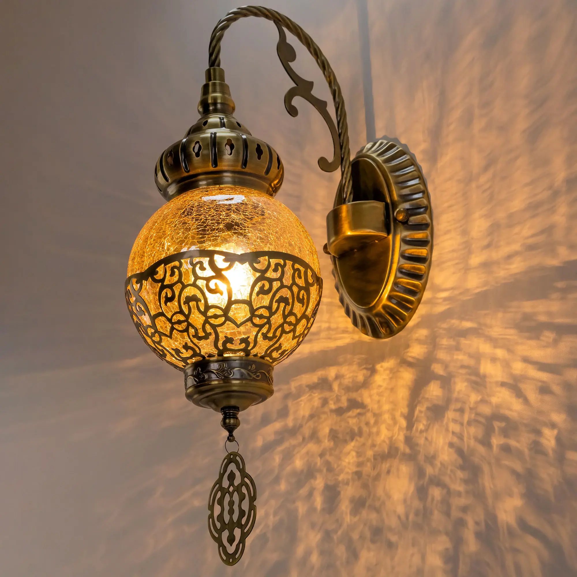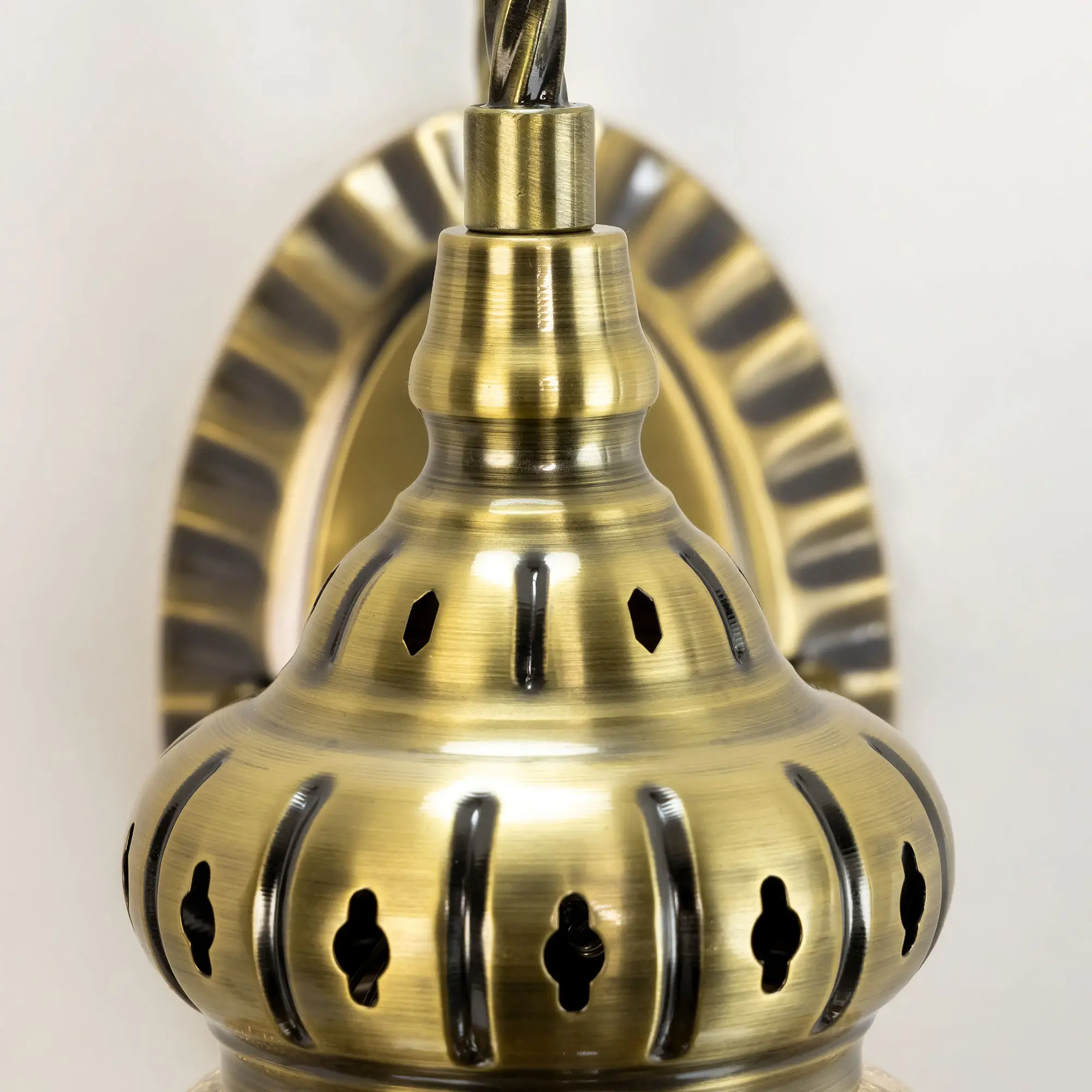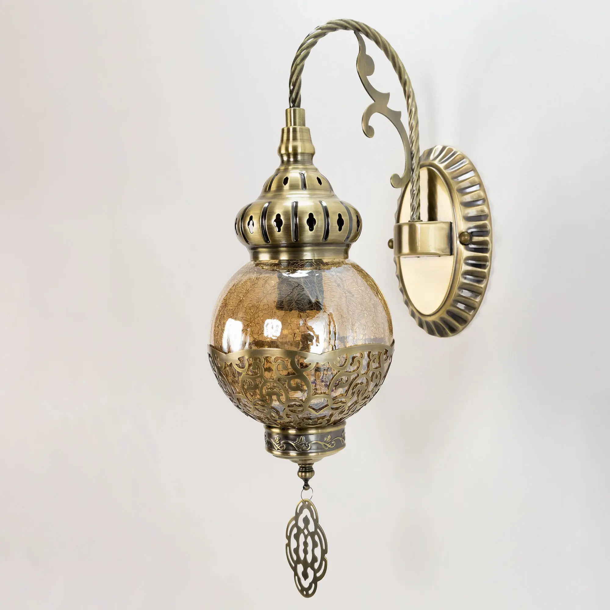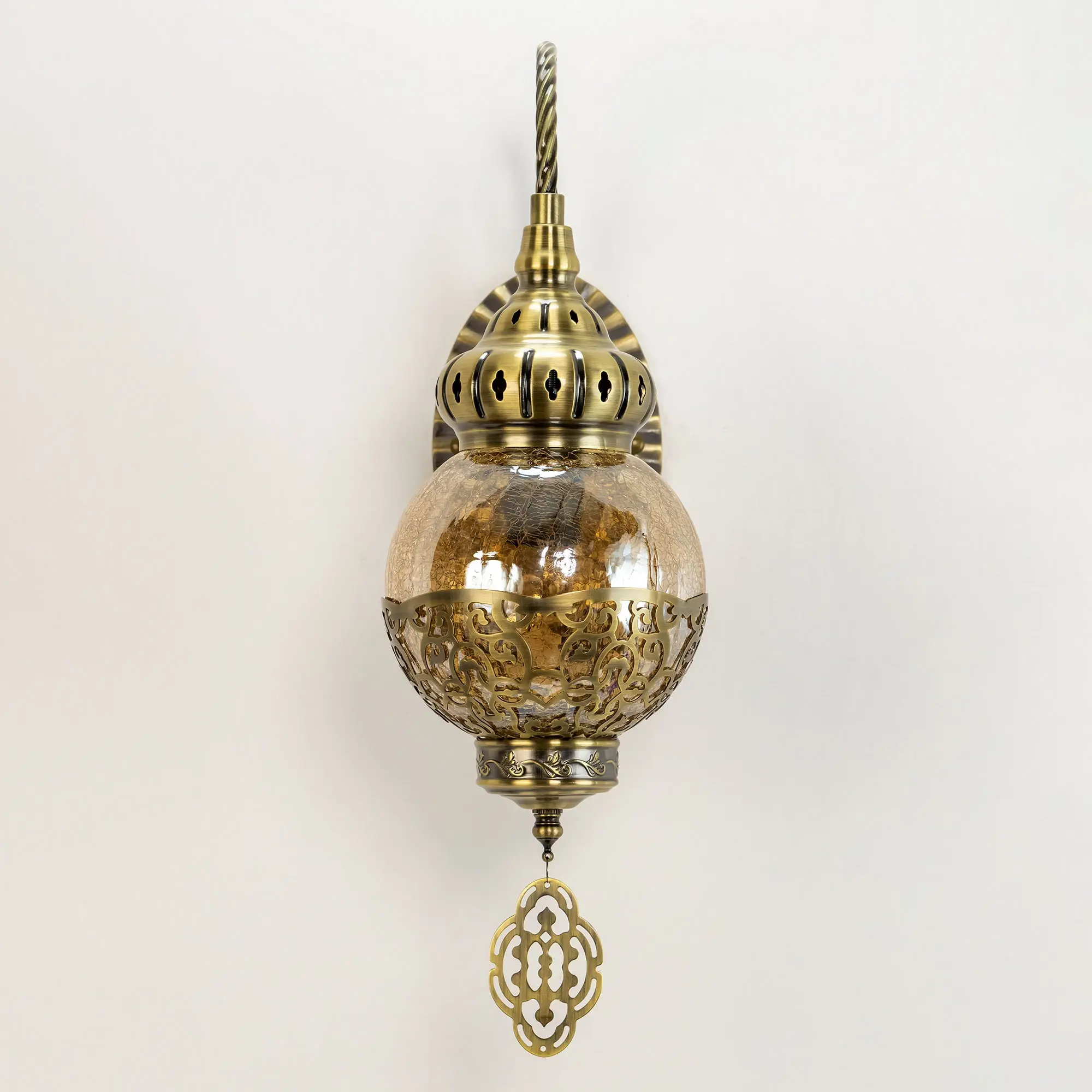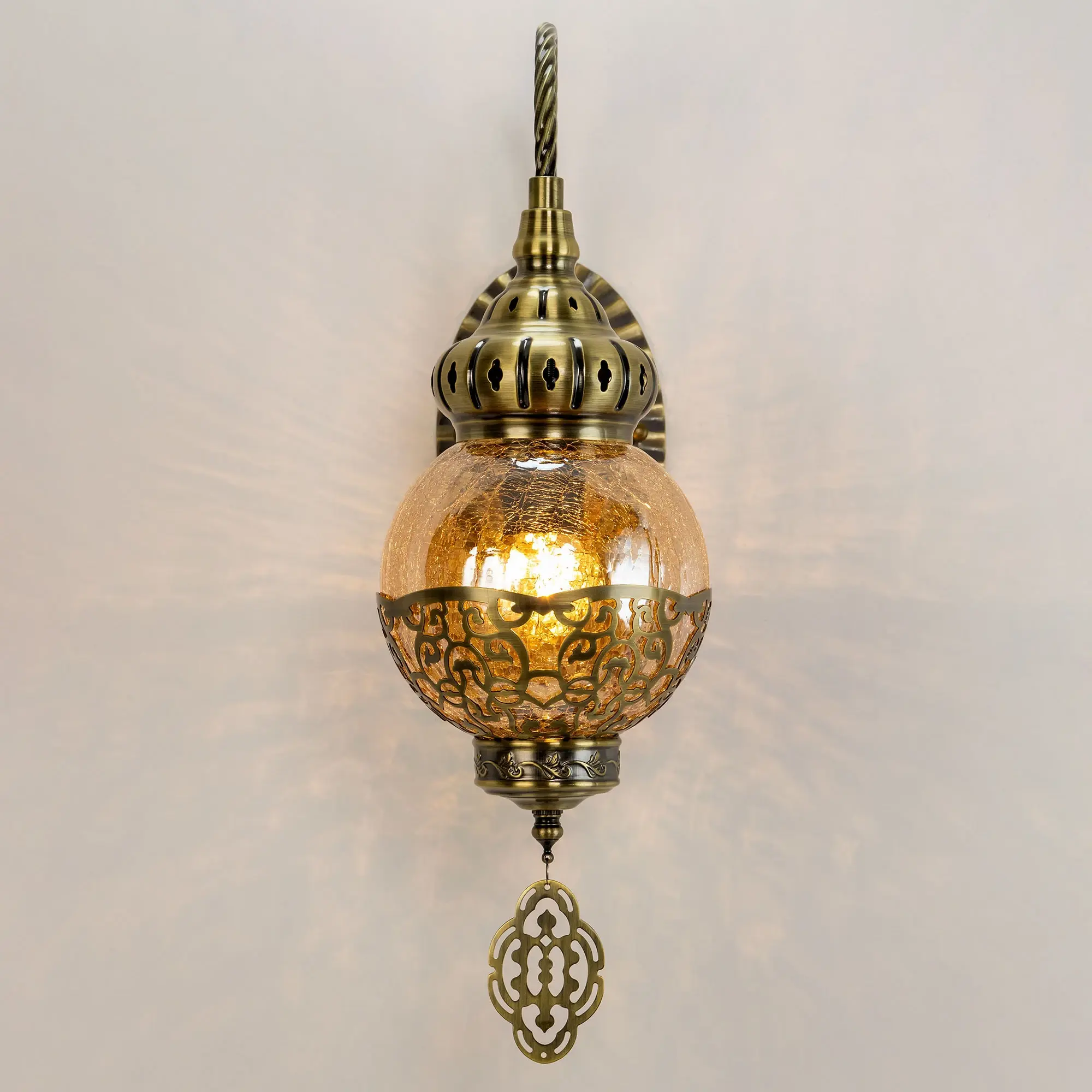 Восточный настенный светильник Citilux Каир CL419313 с одним плафоном. Корпус металлический, цвет бронза. Плафон в форме шара, изготовлен из прозрачного стекла медового оттенка, украшен декоративными, ажурными элементами. В изделии используется лампа с цоколем Е27, максимальной мощностью для ламп накаливания 75Вт. Светодиодные лампы можно устанавливать более яркие. Тип крепления к стене – планка. Бра Каир CL419313 прекрасный вариант для атмосферного освещения интерьеров квартир и загородных домов, выполненных в восточном стиле. Это великолепное решение при оформлении уютных кафе, баров и ресторанов.,