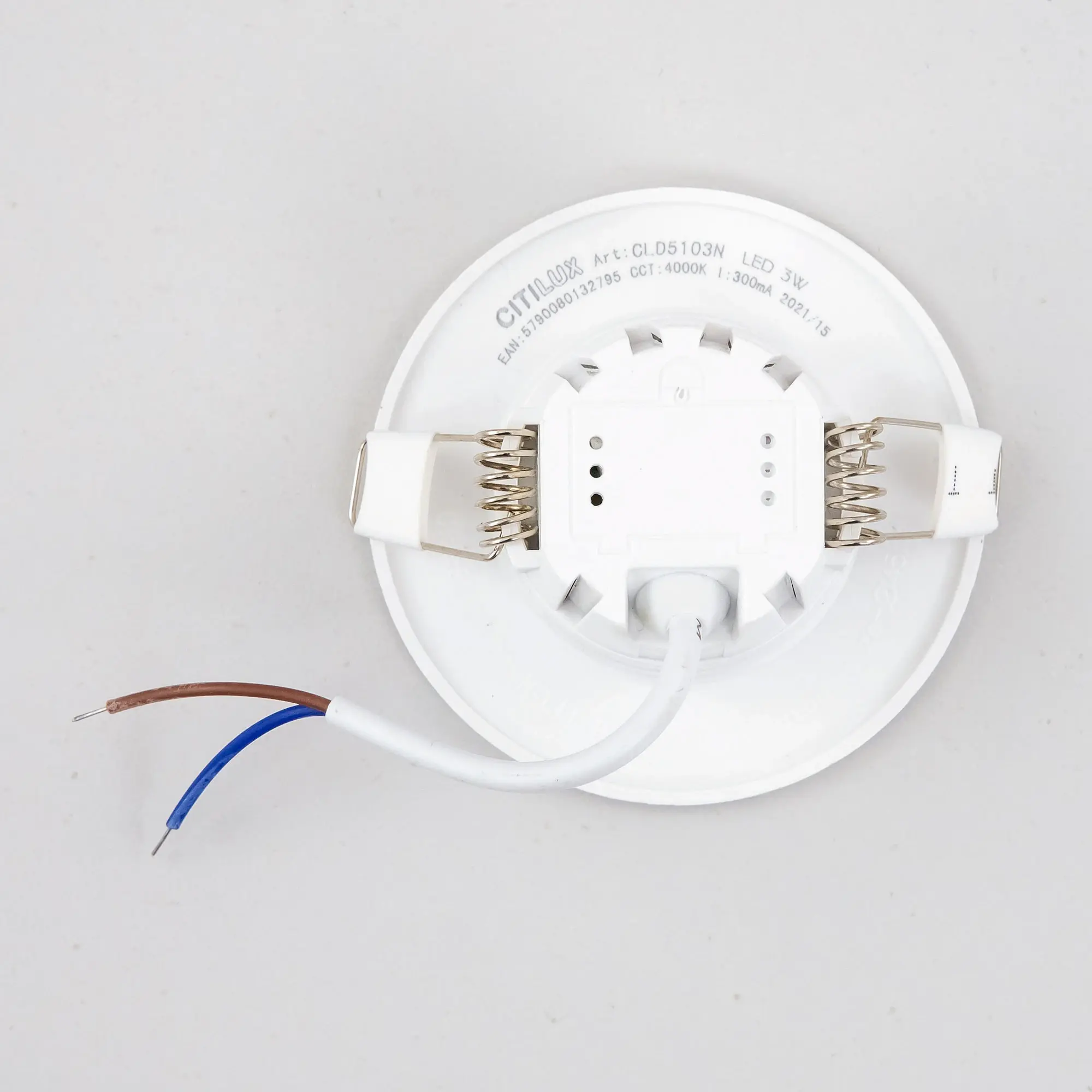 Встраиваемый светодиодный светильник Citilux Кинто CLD5103N в современном стиле минимализм. Корпус круглой формы из прочного полимера, цвет белый. Изделие оснащено ярким светодиодом с мощным радиатором охлаждения. Мощность 3Вт, цветовая температура 4000К – нейтральный белый свет, без мерцаний и пульсаций. Модель подходит для всех типов навесных и натяжных потолков.