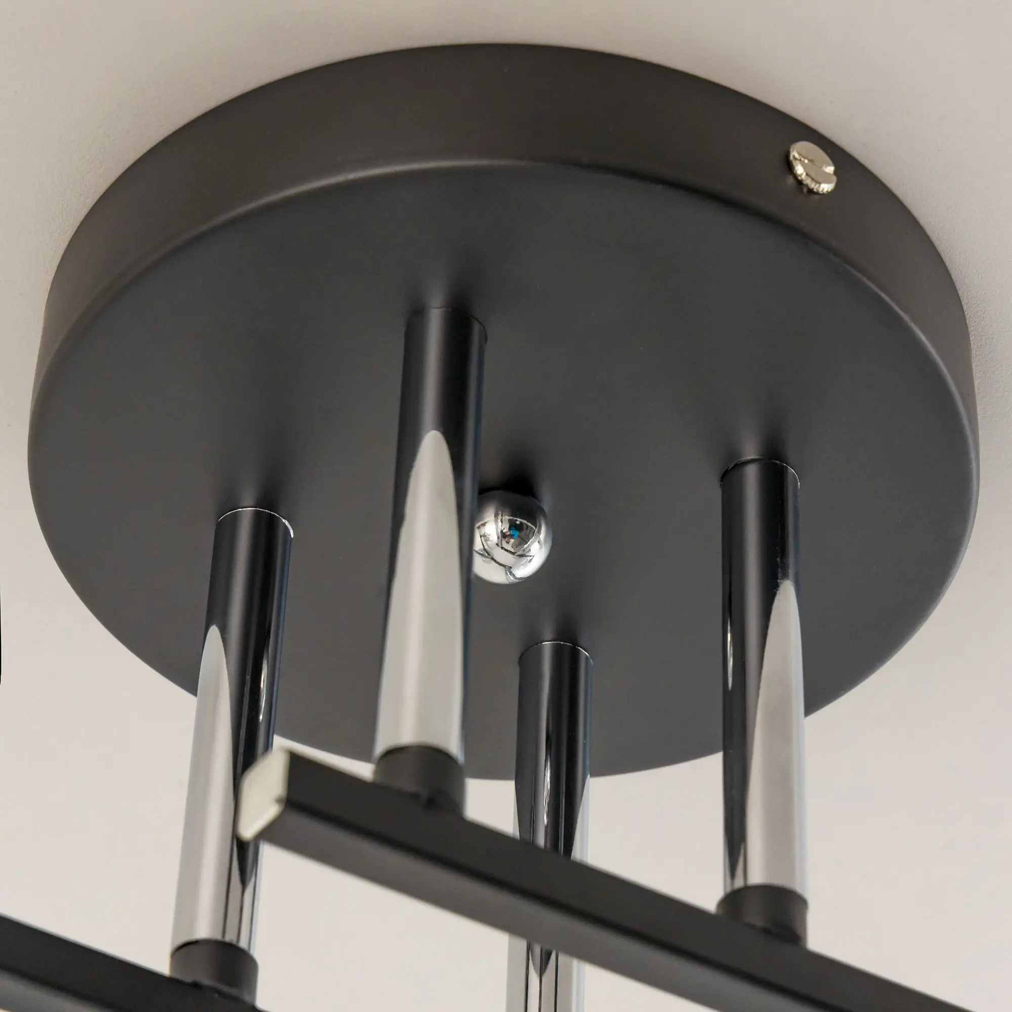 Современная потолочная люстра Citilux Клаус CL134145 для стильных интерьеров. Корпус светильника металлический, с рожками штангами. Основной цвет чёрный матовый, с декоративными хромированными элементами. Плафоны стеклянные, оригинальной формы, прозрачные, с дымчатой тонировкой. Люстру можно скоммутировать для работы как с одноклавишным, так и с двухклавишным выключателем. В изделии 4 лампы с цоколем Е27, максимальной мощностью для ламп накаливания 60Вт. Рекомендуем использовать светодиодные лампы. Подходит для всех типов потолков, в том числе натяжных. Тип крепления-планка. Прекрасный вариант для яркого освещения помещений с низкими потолками, площадью около 14м²