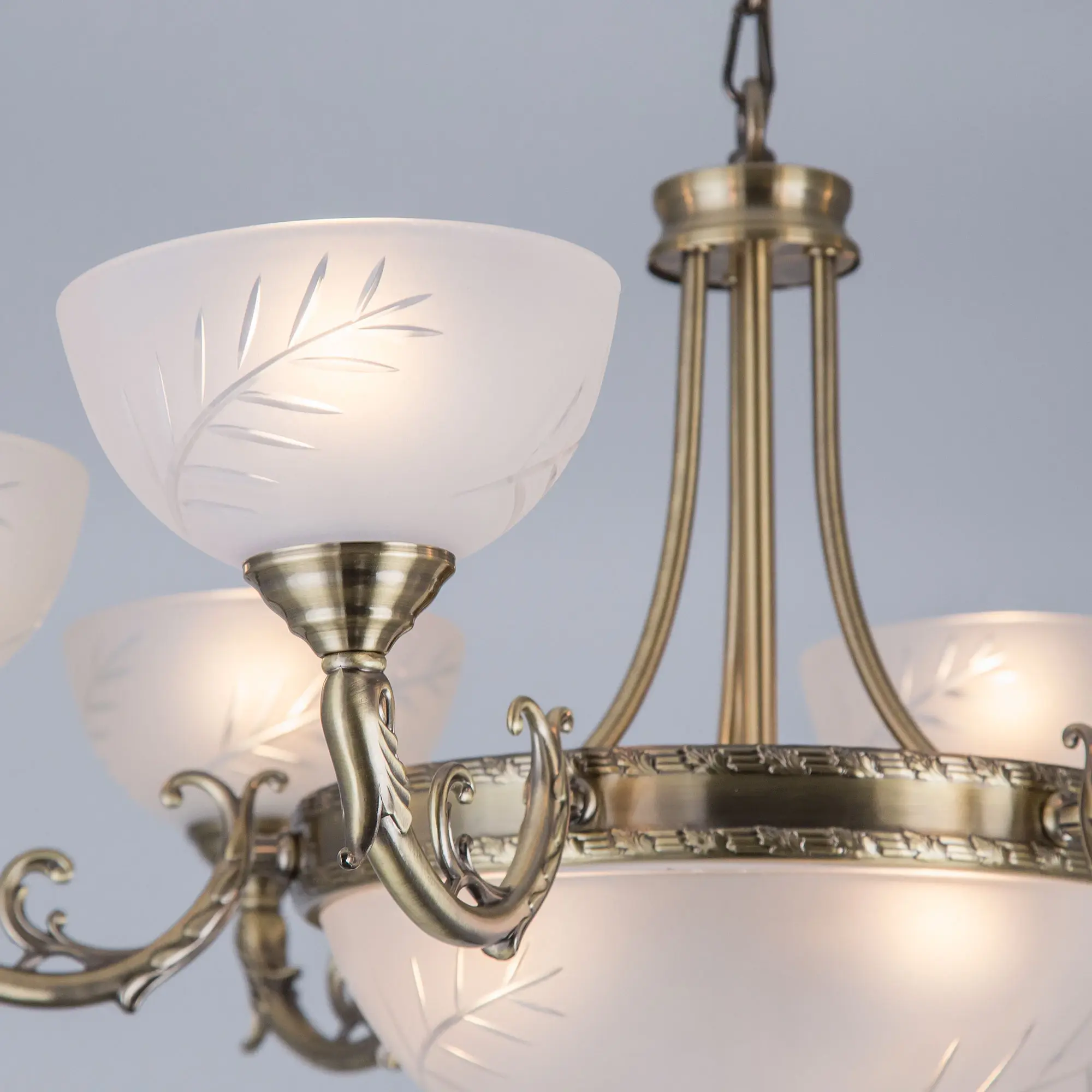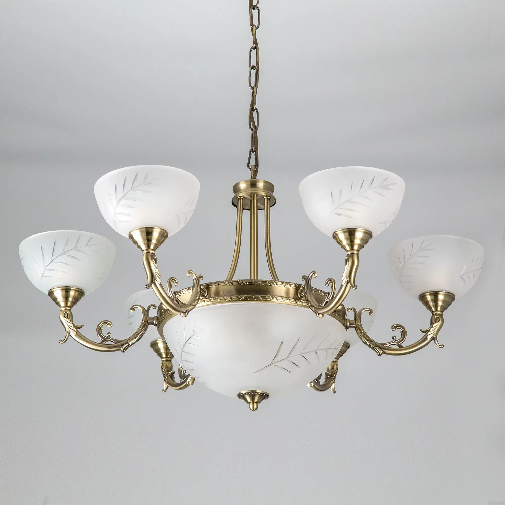 Люстра подвесная, шестирожковая с центральным плафоном Citilux Кремона CL406193. Корпус светильника металлический, цвет бронза. Плафоны стеклянные, полуматовые с изящной гравировкой. В 6 рожках используется лампы с цоколем Е27 и максимальной мощностью для ламп накаливания 40Вт. В центральном плафоне 3 лампы с цоколем Е14 и максимальной мощностью для ламп накаливания 40Вт, подходят лампы как с колбой в форме свечи, так и «шарики». Светодиодные лампы допускается использовать более яркие. На этапе сборки, плафоны можно направить вверх или вниз. Подвесная люстра Citilux Кремона CL406193 – прекрасный вариант для освещения зала, гостиной, столовой или кабинета, оформленных в классическом стиле,