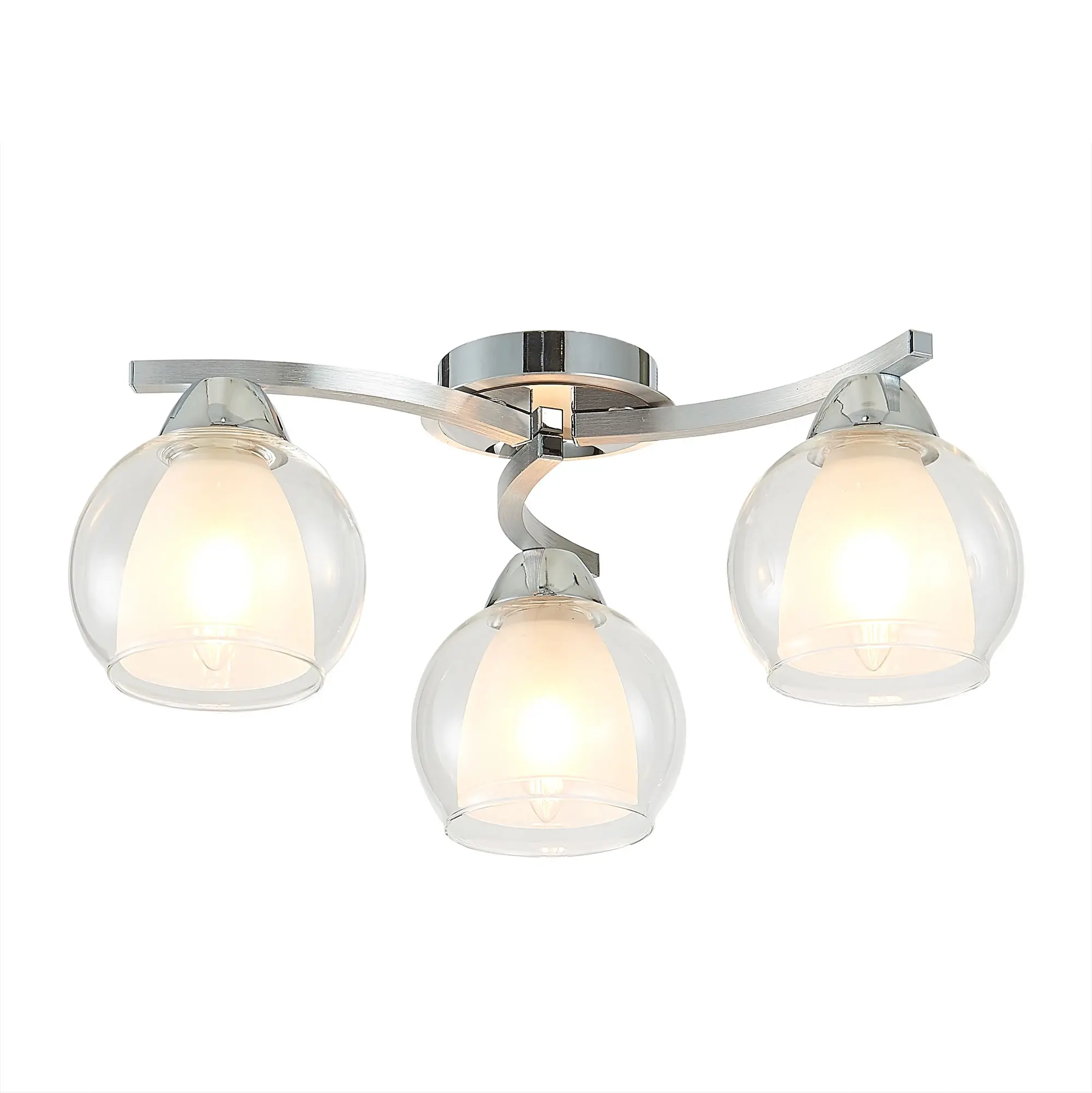 Главной изюминкой этой люстры являются оригинальные плафоны, имеющие форму усеченного шара. Они изготовлены из двух типов стекла: внутренняя часть плафона полуматовая, а внешняя - прозрачная. Такое сочетание позволяет создать приятное рассеянное освещение, сохраняя при этом высокую светопроницаемость.