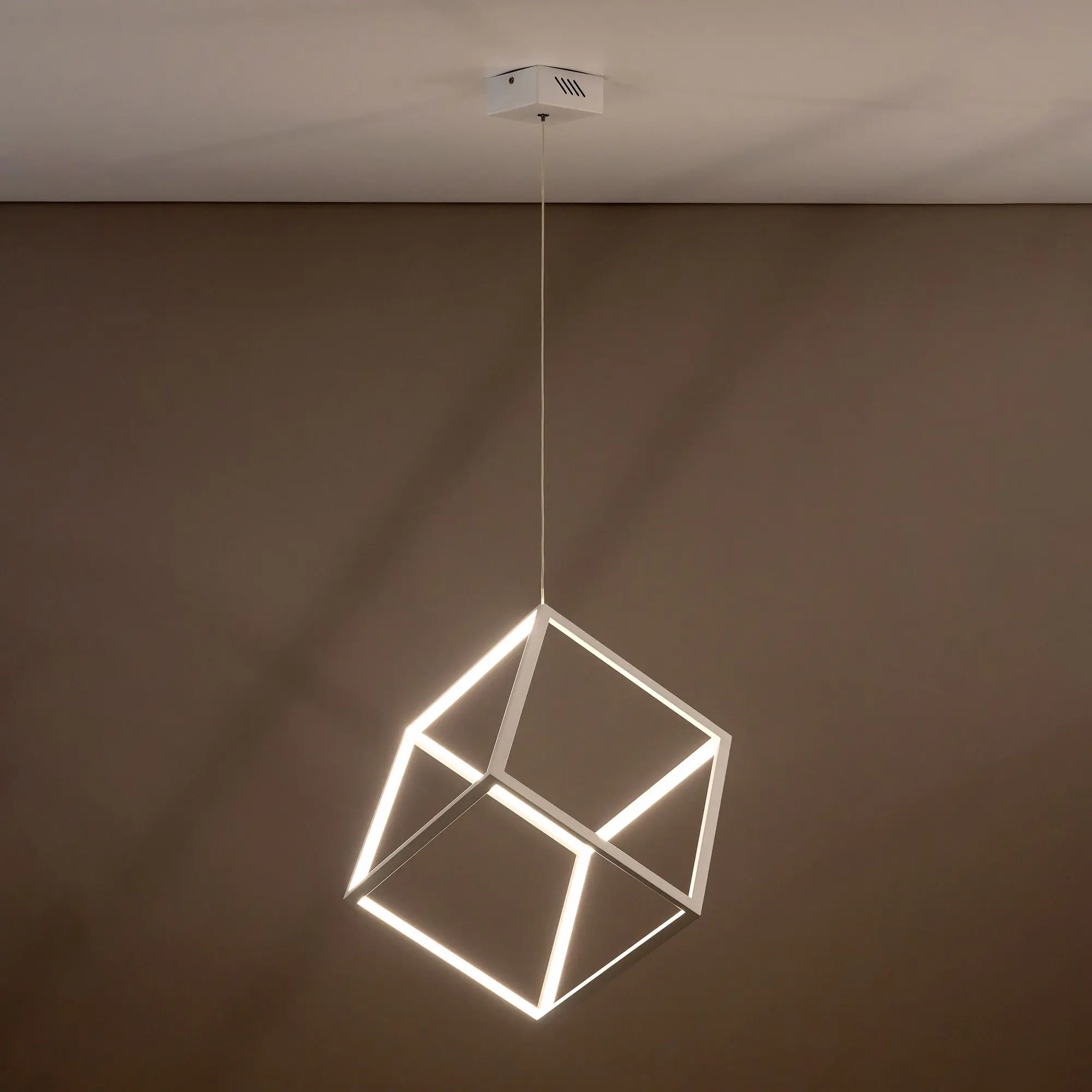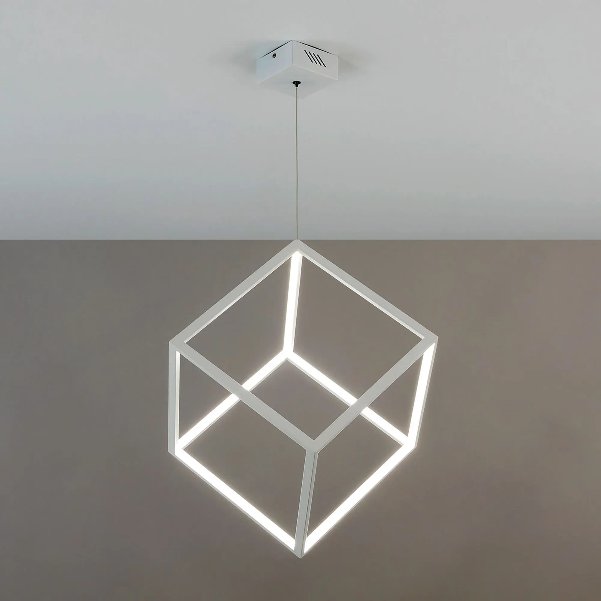 Оригинальный подвесной светодиодный светильник Citilux Куб CL719300 выполнен в современном стиле. Корпус металлический, цвет белый матовый. Внутренние грани куба оснащены яркими встроенными светодиодами.