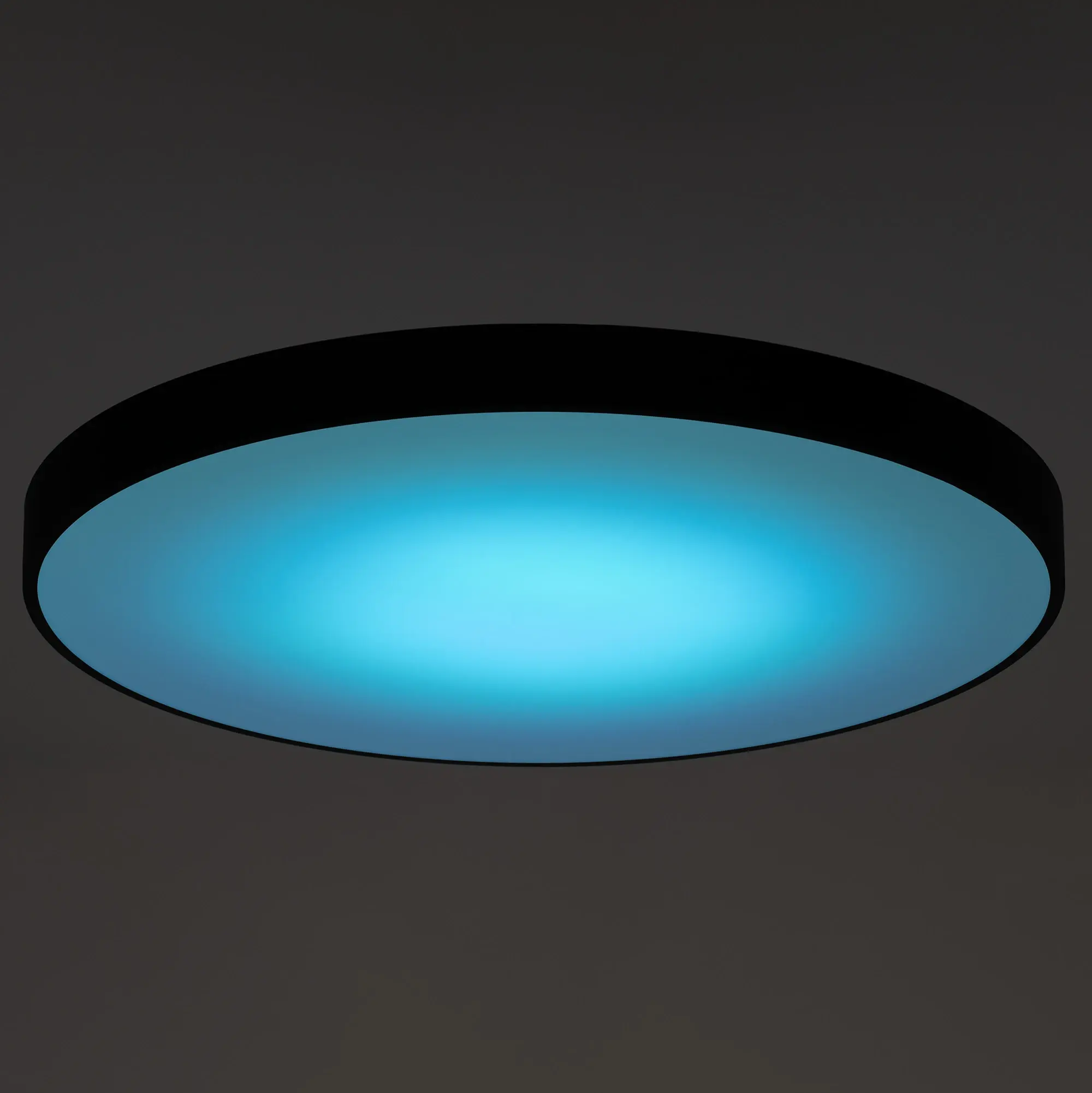 Светодиодный потолочный светильник Citilux Купер CL724155G1 с яркой цветной RGB подсветкой всего плафона. Корпус металлический плоский круглой формы, цвет чёрный матовый, рассеиватель из оптического полимера.