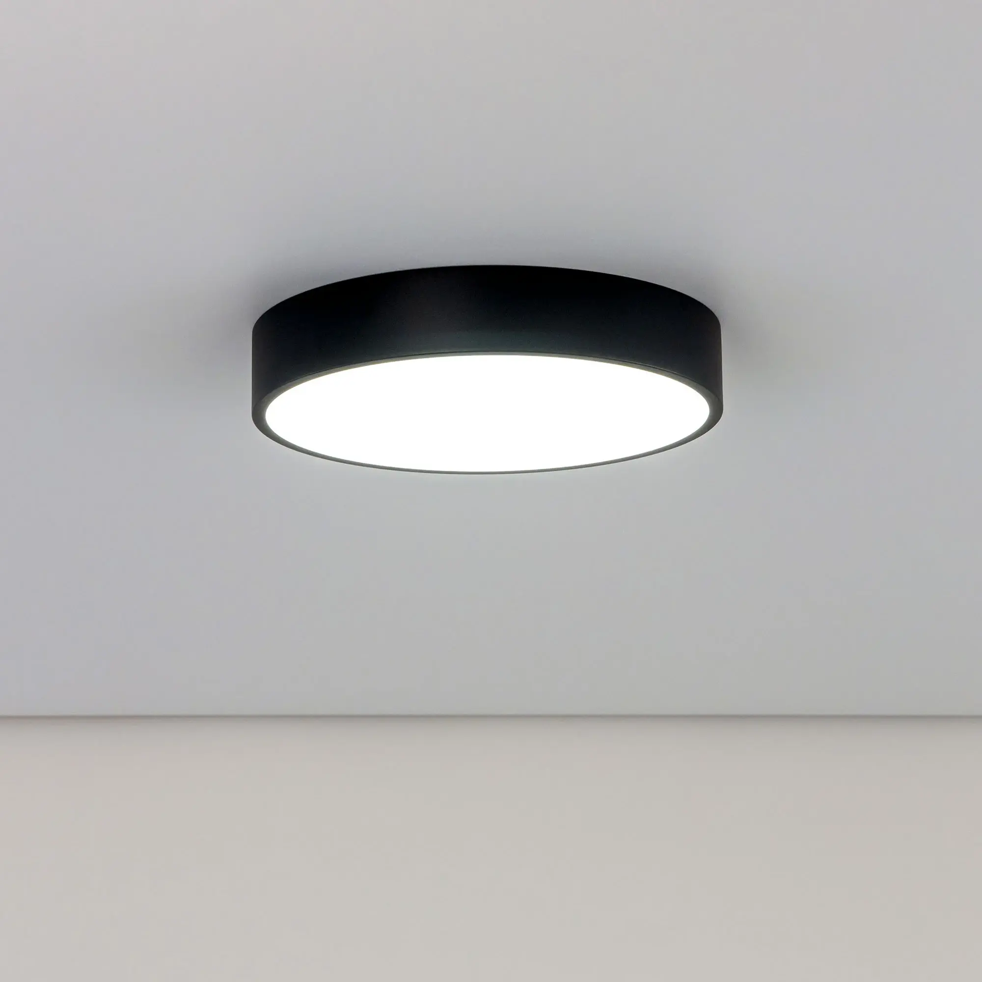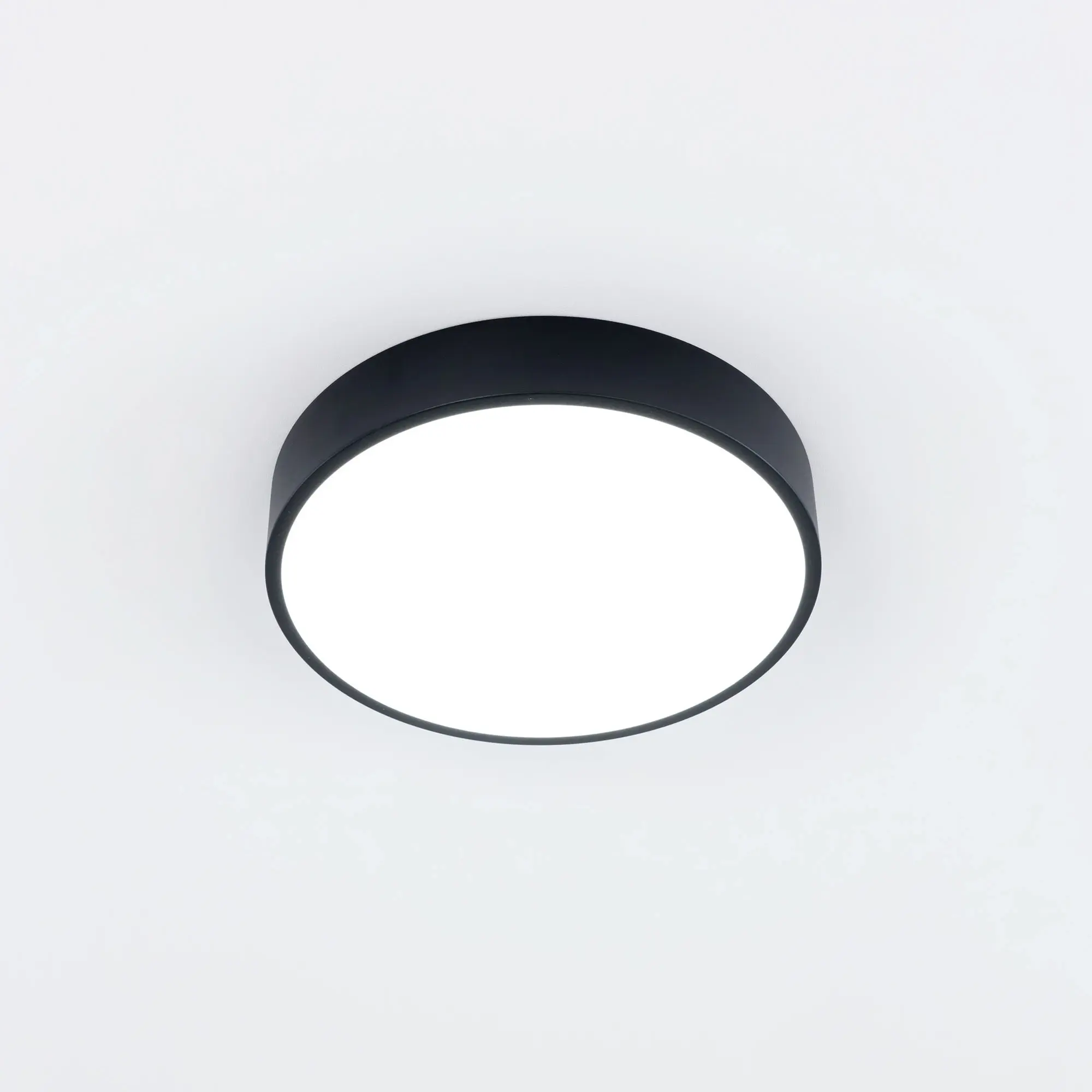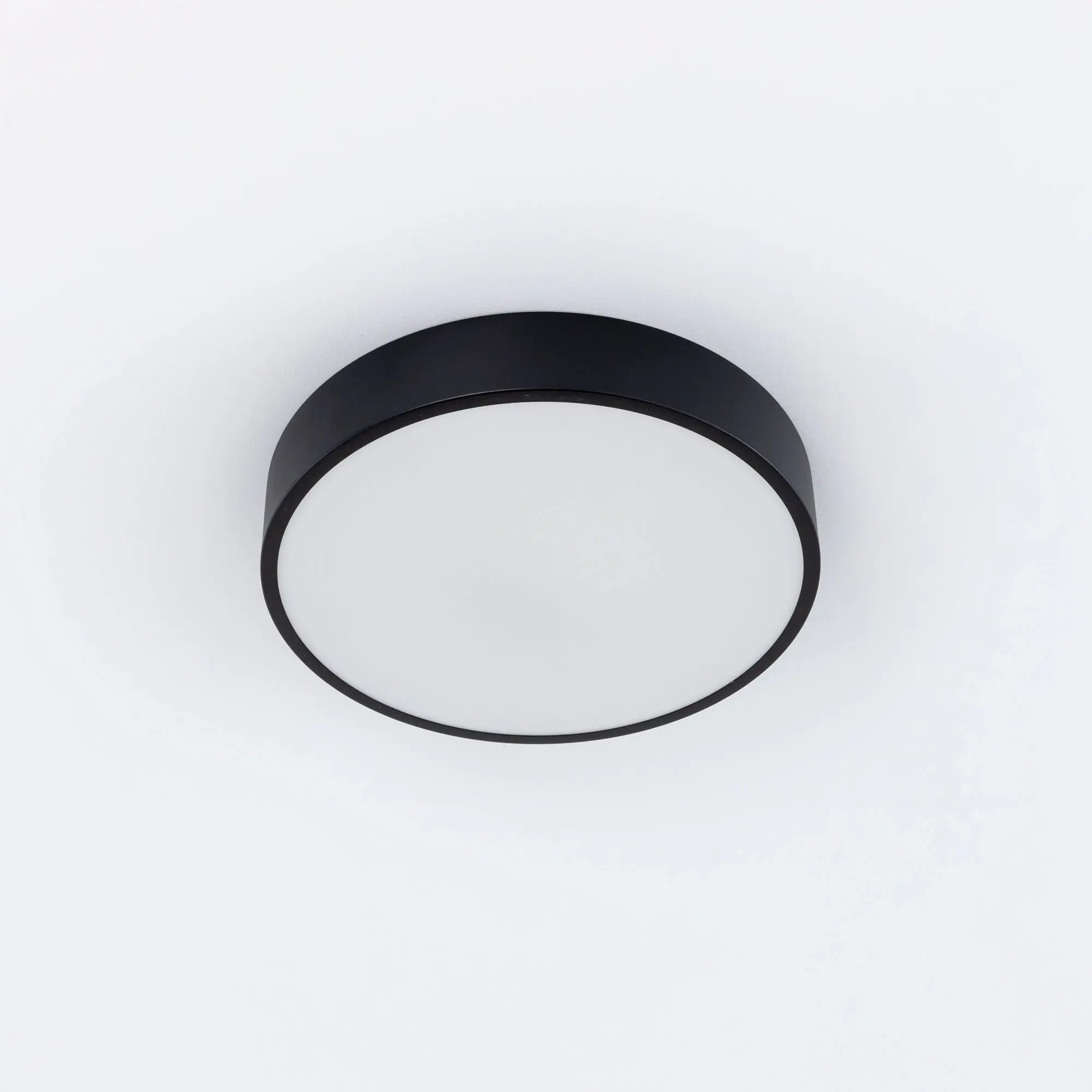 Потолочный светодиодный светильник Citilux Купер CL72424V1 в современном стиле минимализм. Корпус металлический, круглой формы, цвет чёрный матовый. Рассеиватель из оптического полимера. Светильник оснащен встроенным 3-х ступенчатым диммером 100-40-15% яркости, управляется настенным выключателем. Переключатель цветовой температуры, расположенный на блоке питания, позволяет при монтаже установить режим - 3000-4000-5500К (тёплый, нейтральный или холодный свет). Мощность 24Вт, световой поток 1900Лм, индекс цветопередачи больше 80 CRI. Свет без мерцаний и пульсаций, что обеспечит защиту здоровья ваших глаз. Подходит для всех типов потолков, в том числе натяжных. Тип крепления – через основание.,