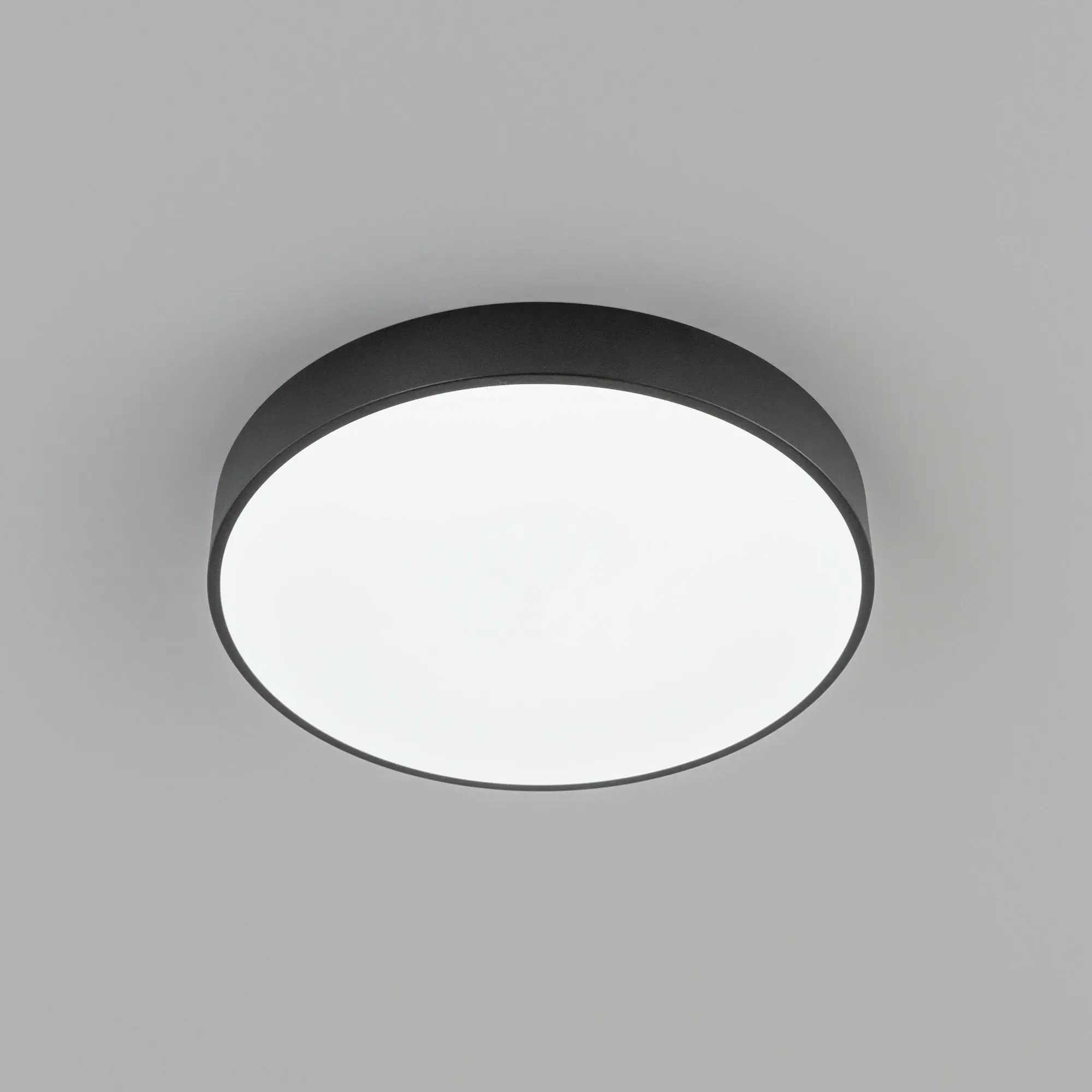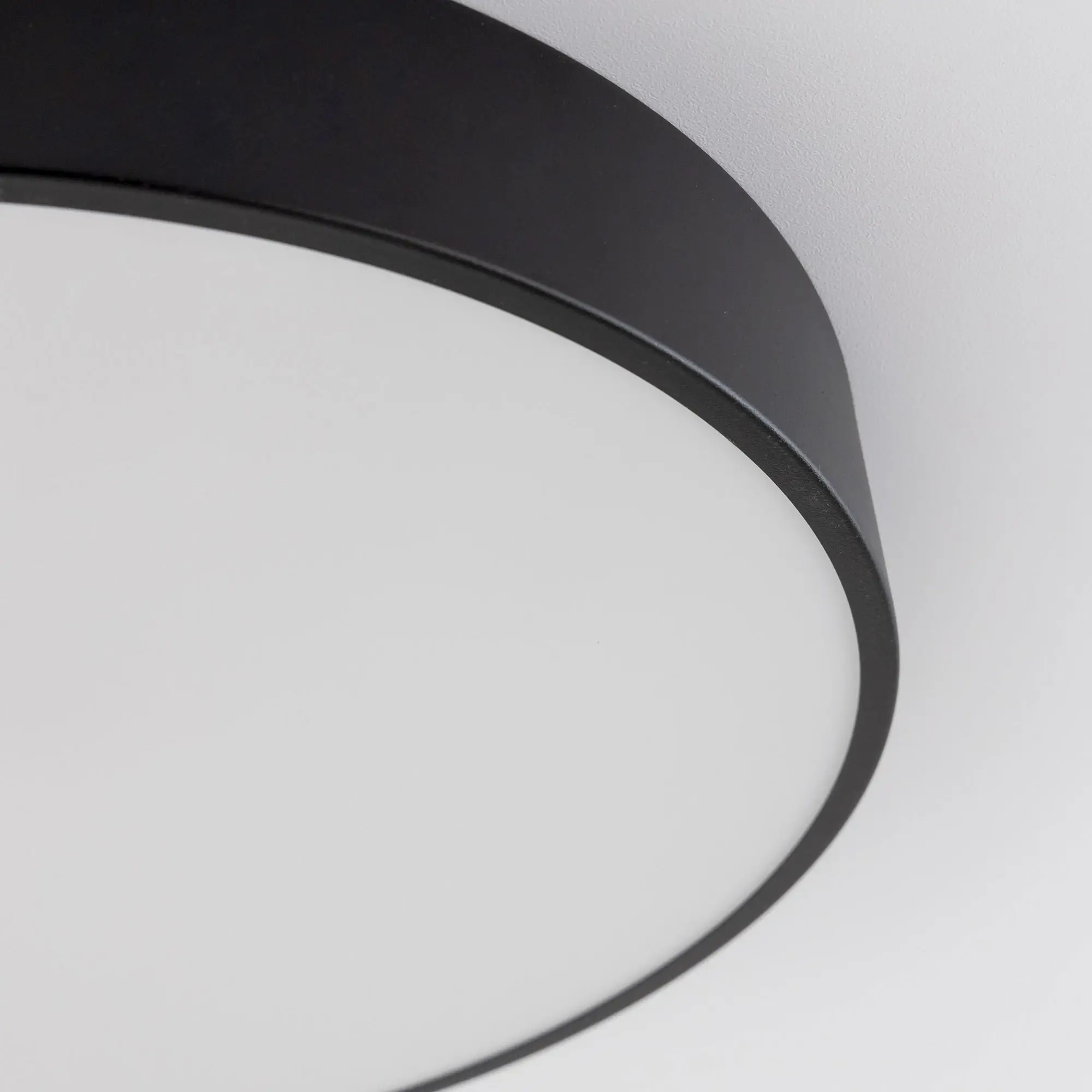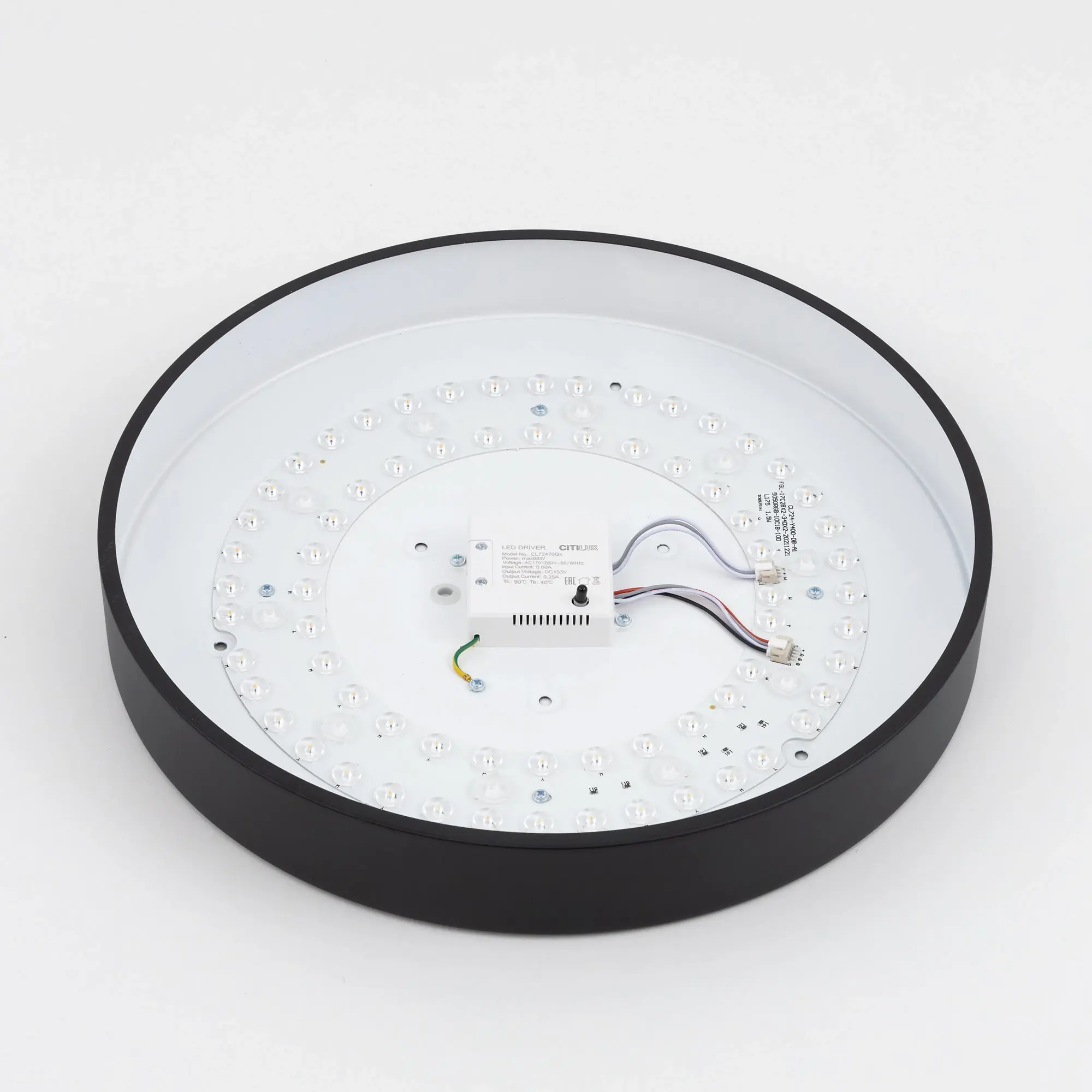 Светодиодный потолочный светильник Citilux Купер CL72470G1 с яркой цветной RGB подсветкой всего плафона. Корпус металлический, круглой формы, цвет чёрный матовый. Рассеиватель из оптического полимера. Мощность 70Вт, световой поток 5600Лм. С помощью пульта дистанционного управления доступна плавная регулировка яркости от 100 до 10%, управление цветовой температурой доступно в диапазоне от 3000К до 5500К, что позволяет настроить любые оттенки теплого, нейтрального или холодного света. Цветная RGB подсветка имеет различные режимы работы. Таймер - функция отсроченного на 20сек. выключения. Четыре кнопки памяти позволяют сохранить настроенные режимы работы и включать их пультом или обычным настенным выключателем. Подходит для всех типов потолков, в том числе натяжных. Тип крепления – через основание. Изделие комплектуется инфракрасным пультом ДУ, тип батареек ААА (батарейки в комплект не входят),