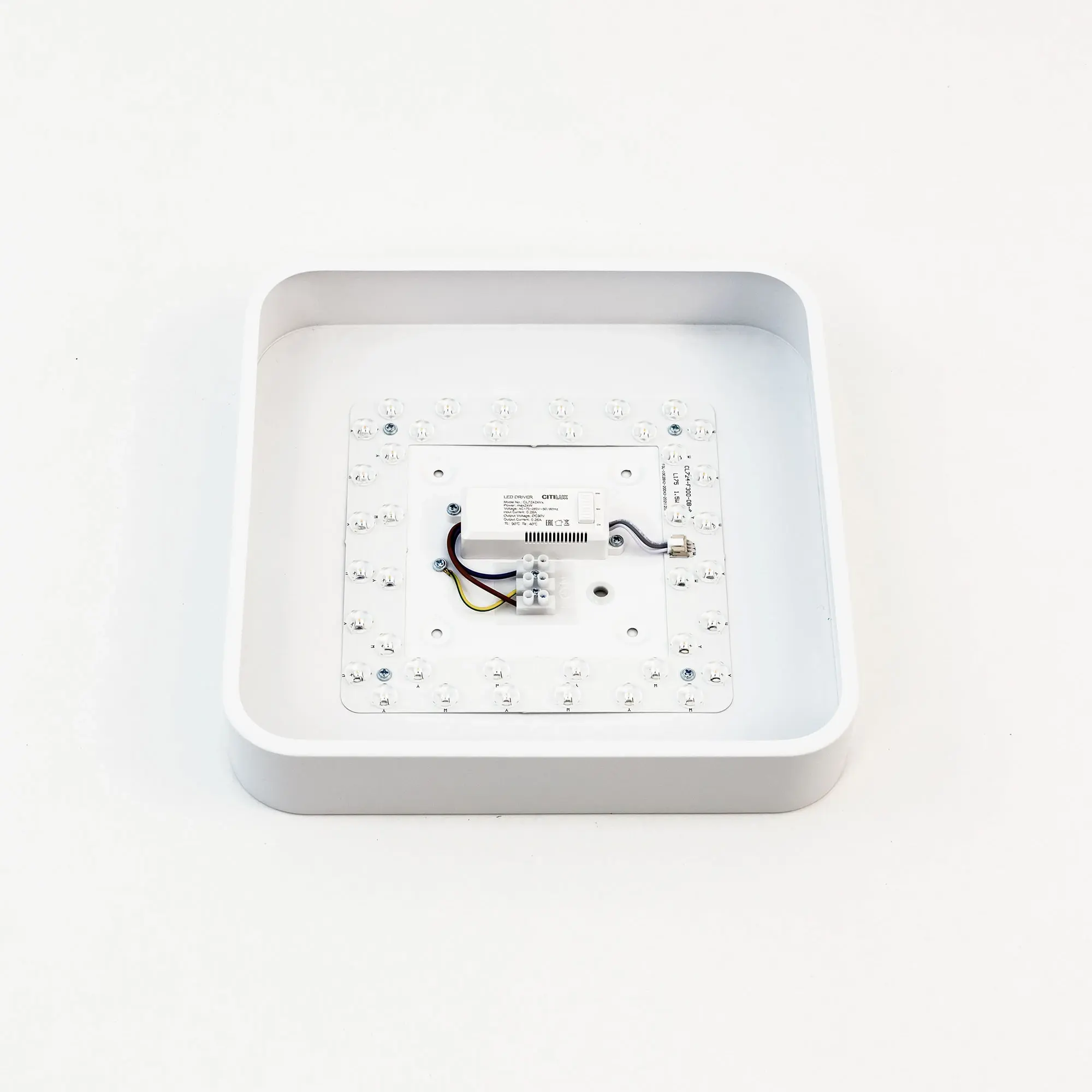 Потолочный светодиодный светильник Citilux Купер CL724K24V0 в современном стиле минимализм. Корпус металлический, квадратной формы, цвет белый матовый. Рассеиватель из оптического полимера. Светильник оснащен встроенным 3-х ступенчатым диммером 100-40-15% яркости, управляется настенным выключателем. Переключатель цветовой температуры, расположенный на блоке питания, позволяет при монтаже установить режим - 3000-4000-5500К (тёплый, нейтральный или холодный свет). Мощность 24Вт, световой поток 1900Лм, индекс цветопередачи больше 80 CRI. Свет без мерцаний и пульсаций, что обеспечит защиту здоровья ваших глаз. Подходит для всех типов потолков, в том числе натяжных. Тип крепления – через основание.,