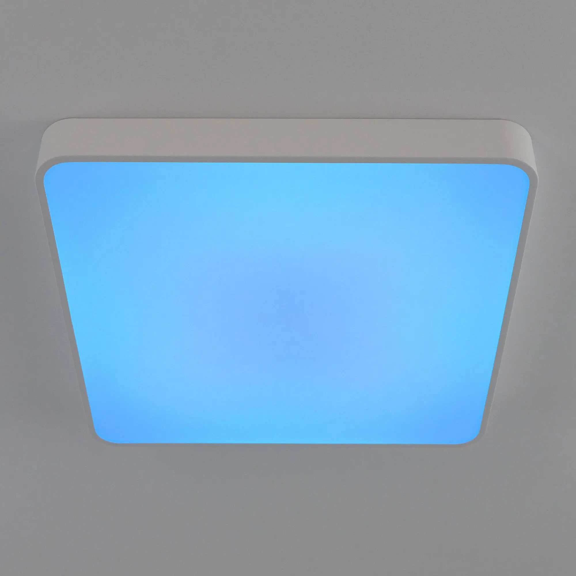 Светодиодный потолочный светильник Citilux Купер CL724K95G0 с яркой цветной RGB подсветкой всего плафона. Корпус металлический, квадратной формы, цвет белый матовый. Рассеиватель из оптического полимера. Мощность 95Вт, световой поток 7600Лм. С помощью пульта дистанционного управления доступна плавная регулировка яркости от 100 до 10%, управление цветовой температурой доступно в диапазоне от 3000К до 5500К, что позволяет настроить любые оттенки теплого, нейтрального или холодного света. Цветная RGB подсветка имеет различные режимы работы. Таймер - функция отсроченного на 20сек. выключения. Четыре кнопки памяти позволяют сохранить настроенные режимы работы и включать их пультом или обычным настенным выключателем. Подходит для всех типов потолков, в том числе натяжных. Тип крепления – через основание. Изделие комплектуется инфракрасным пультом ДУ, тип батареек ААА (батарейки в комплект не входят),