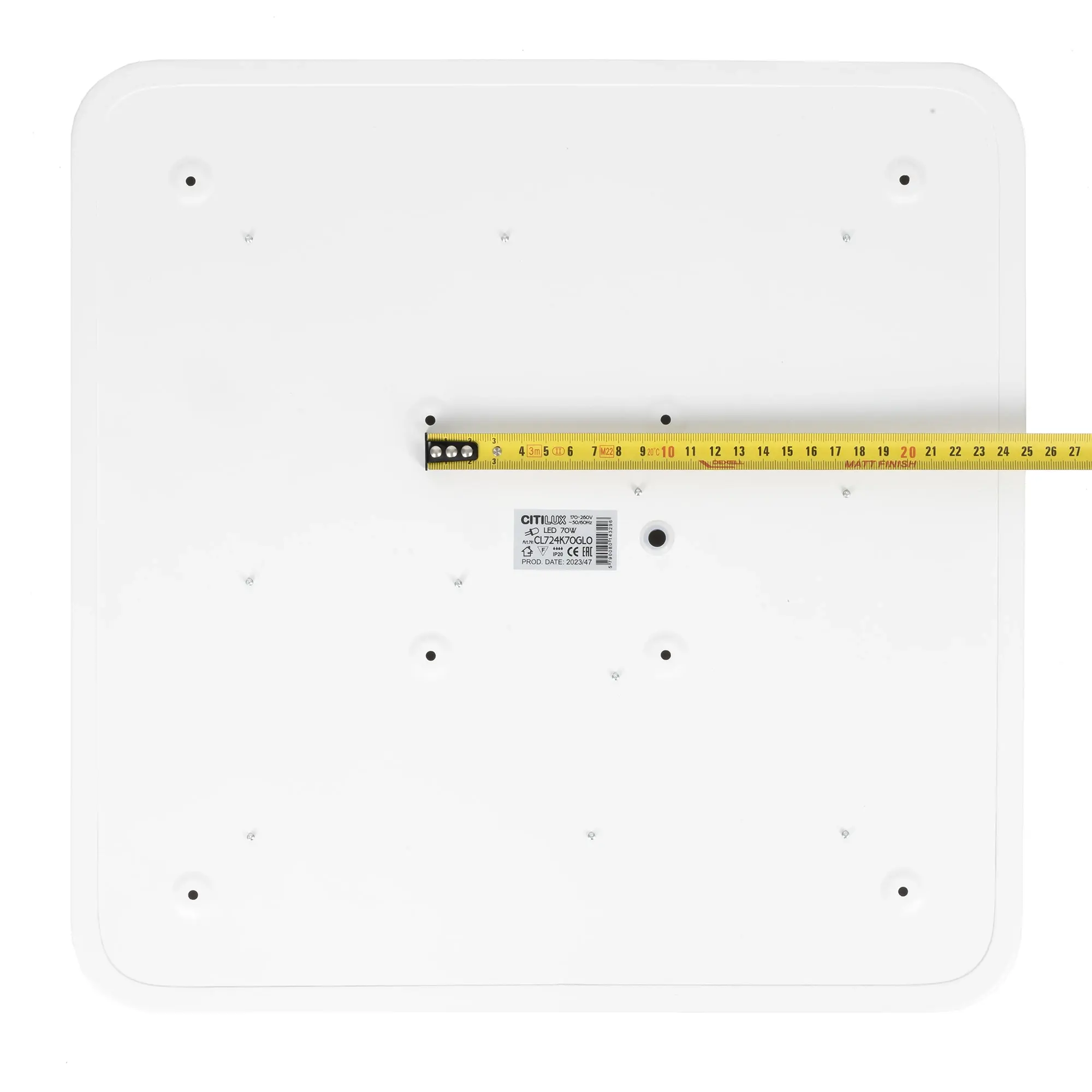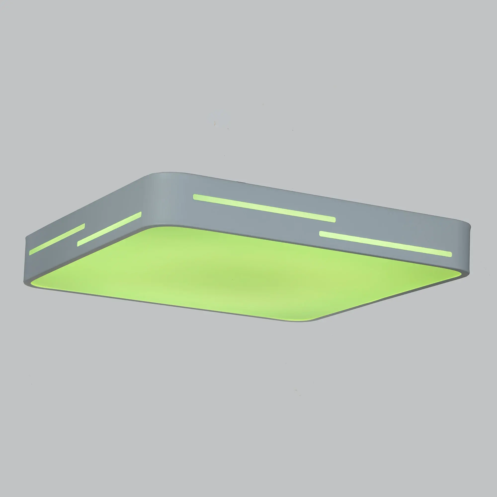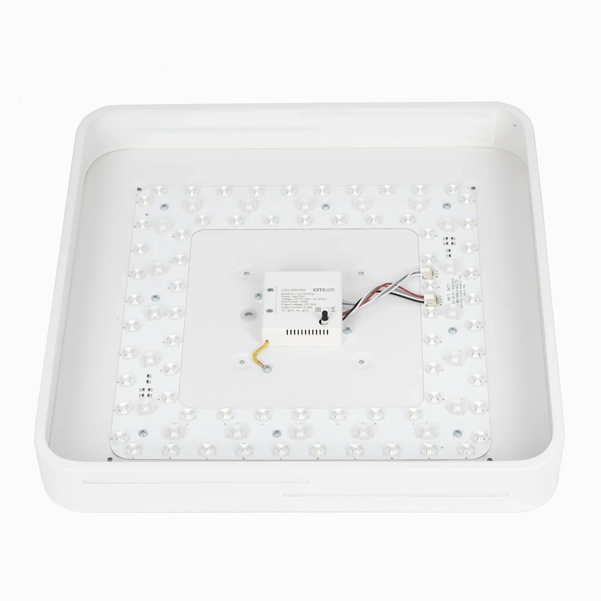 Накладной плоский светильник подходит для всех типов потолков, в том числе натяжных. Тип крепления – через основание. Изделие комплектуется инфракрасным пультом ДУ. Для питания пульта применяются 2 батарейки формата ААА, напряжением 1,5V (не входят в комплект).