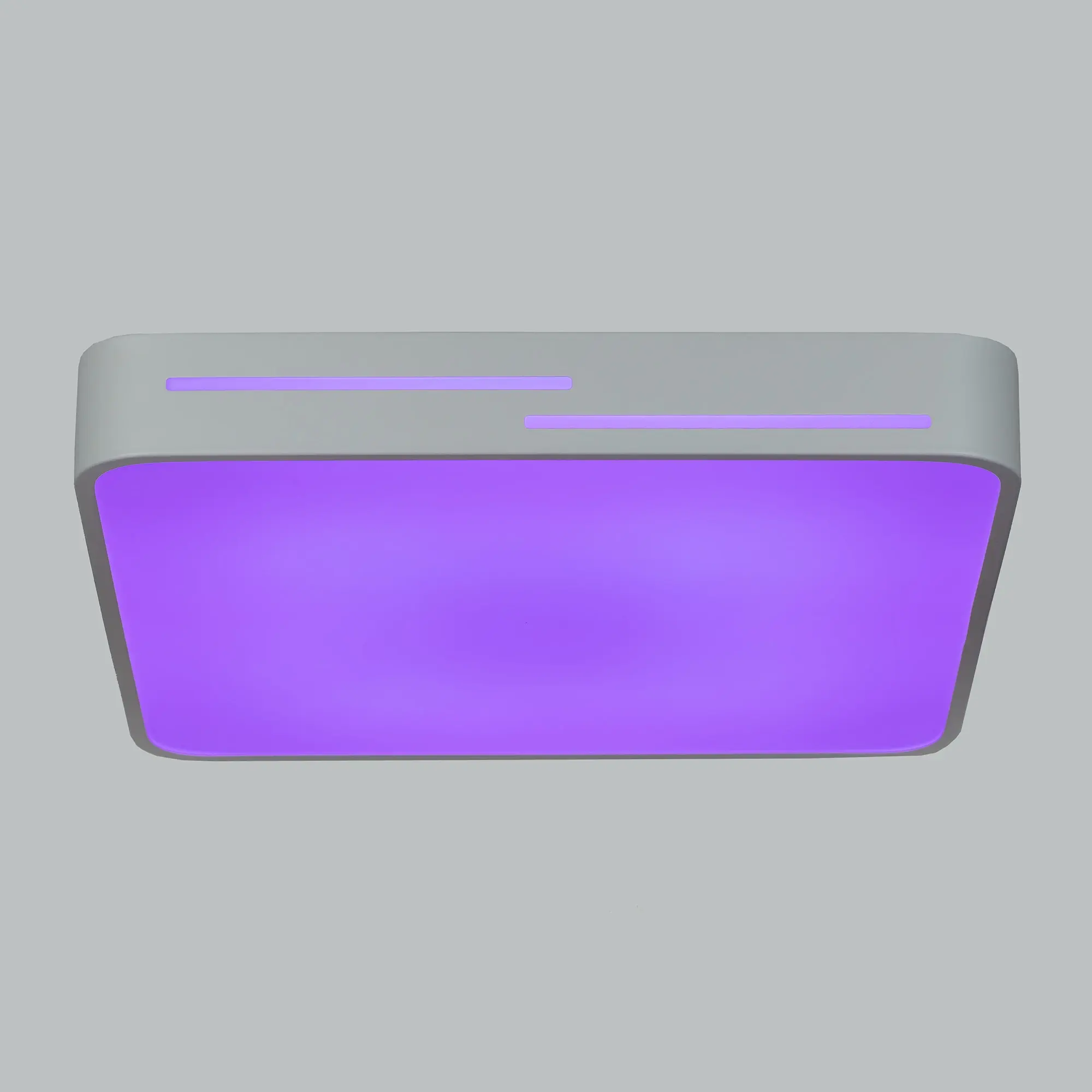 Светодиодный потолочный светильник Citilux Купер Лайн CL724K70GL0 с яркой цветной RGB подсветкой всего плафона. Корпус металлический, квадратной формы, цвет белый матовый. Рассеиватель из оптического полимера. Стильные линии бокового рассеивателя подчеркивают элегантный стиль светильника и дополнительно освещают потолок.