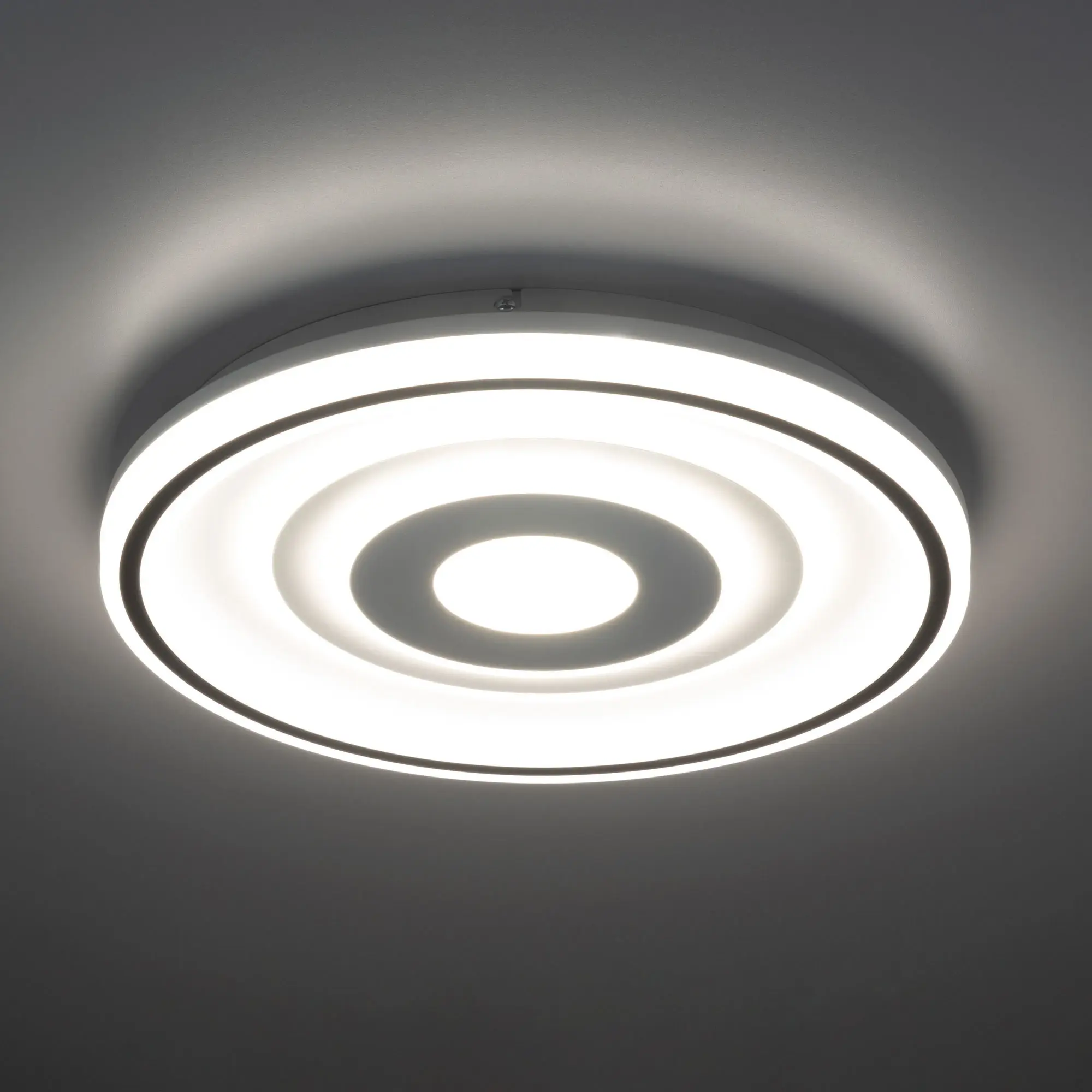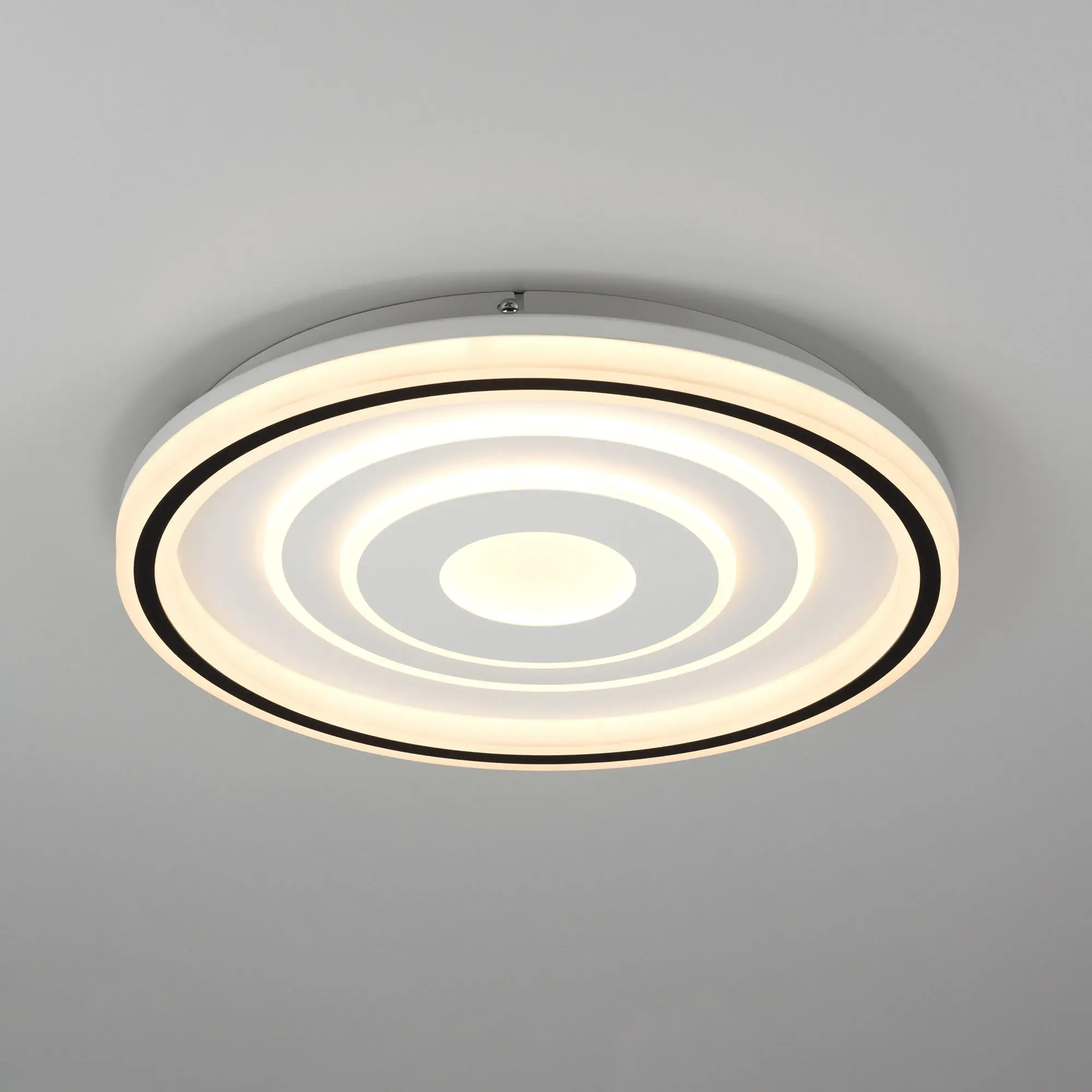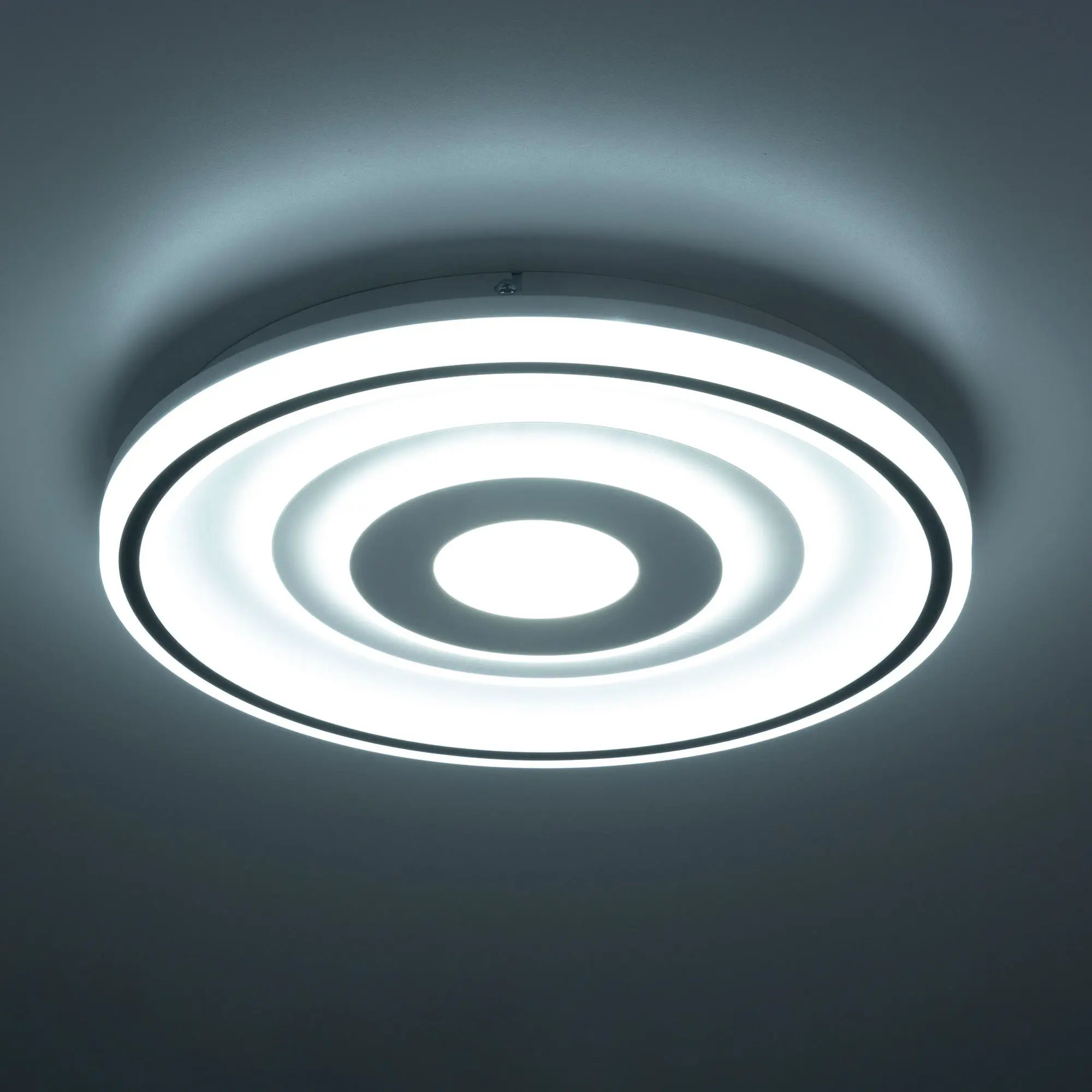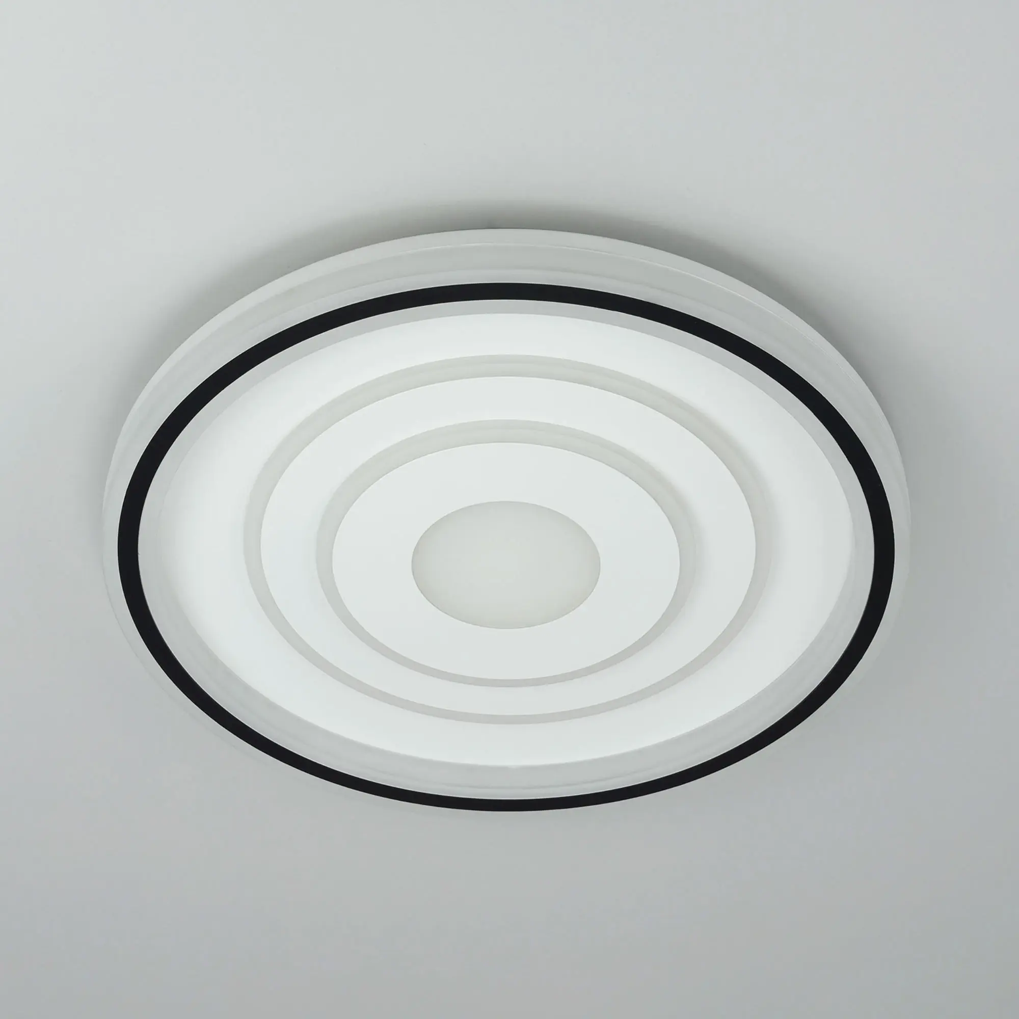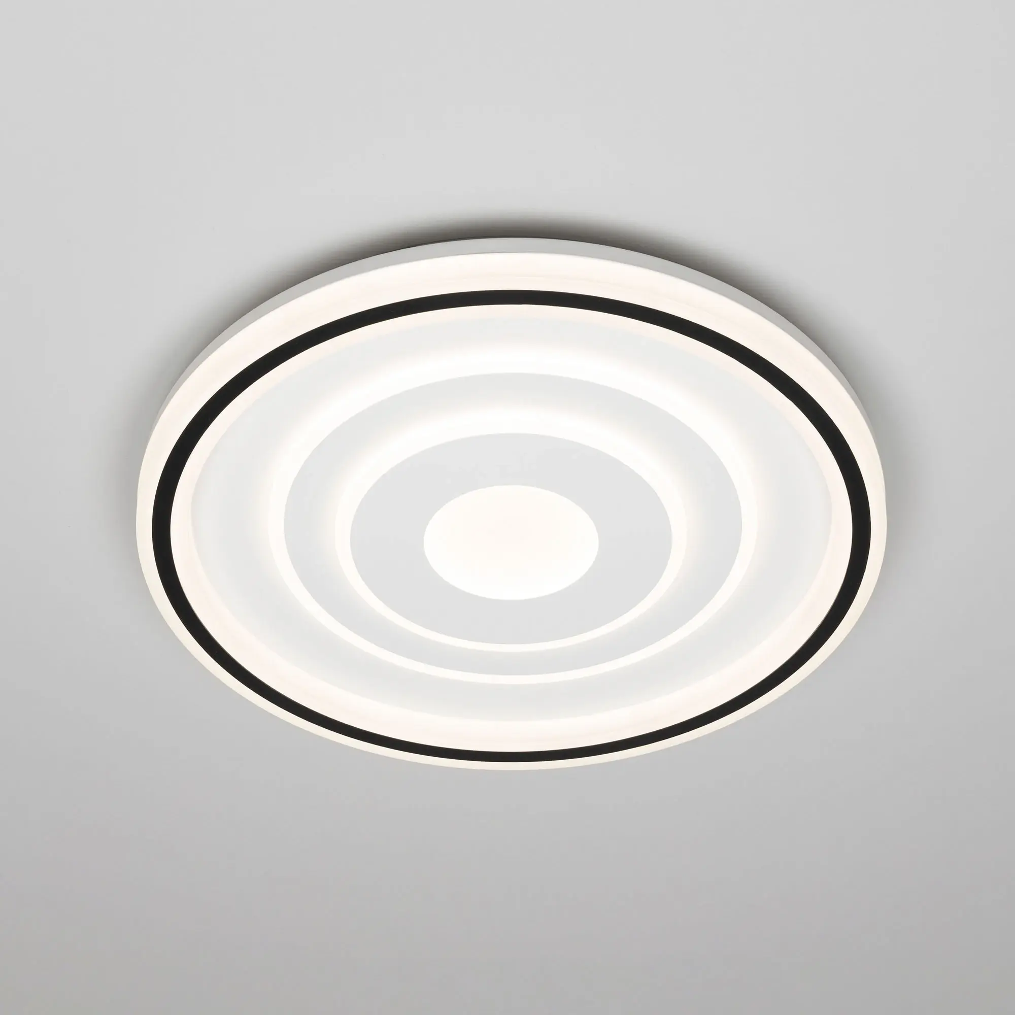 Светодиодная потолочная люстра Citilux Квест CL739190E с RGB подсветкой и пультом дистанционного управления. Основание белого цвета, со стильной чёрной окантовкой. Три светодиодных модуля плафона, формирующих внешний вид люстры, имеют круглую форму. Люстрой можно управлять с помощью пульта дистанционного управления и настенным выключателем. Изделие оснащено яркими светодиодами, с возможностью плавной регулировки яркости от 10% до 100%. Цветовая температура регулируется в диапазоне от 3000К до 5500К, позволяя настроить любые оттенки теплого, нейтрального или холодного света, без мерцания и пульсаций. Есть настраиваемые режимы памяти и таймер выключения. Модель подходит для всех типов потолков, в том числе натяжных, тип крепления – планка. Пульт ДУ в комплекте, тип батареек ААА (батарейками не комплектуется)