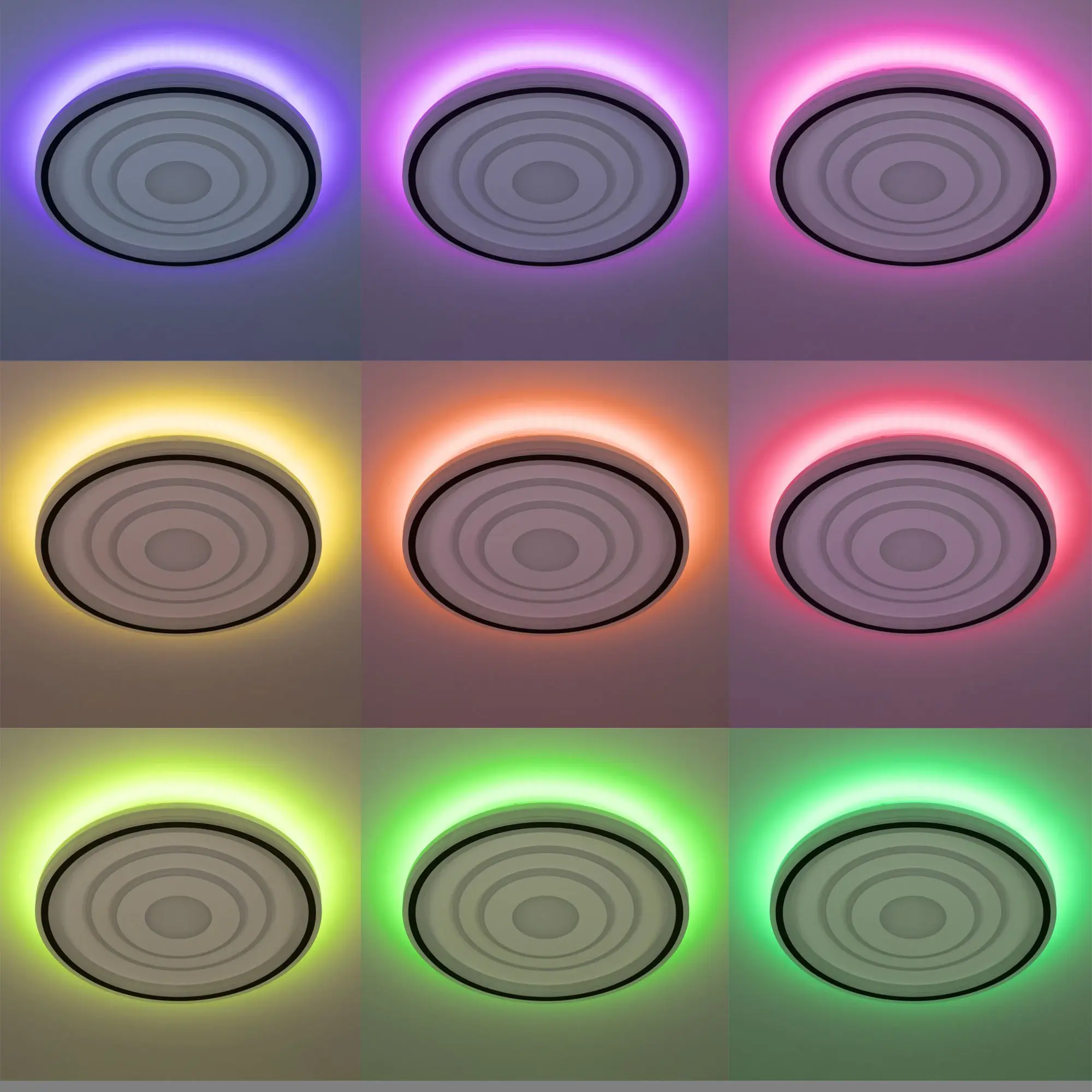 Светодиодная потолочная люстра Citilux Квест CL739190E с RGB подсветкой и пультом дистанционного управления. Основание белого цвета, со стильной чёрной окантовкой. Три светодиодных модуля плафона, формирующих внешний вид люстры, имеют круглую форму. Люстрой можно управлять с помощью пульта дистанционного управления и настенным выключателем. Изделие оснащено яркими светодиодами, с возможностью плавной регулировки яркости от 10% до 100%. Цветовая температура регулируется в диапазоне от 3000К до 5500К, позволяя настроить любые оттенки теплого, нейтрального или холодного света, без мерцания и пульсаций. Есть настраиваемые режимы памяти и таймер выключения. Модель подходит для всех типов потолков, в том числе натяжных, тип крепления – планка. Пульт ДУ в комплекте, тип батареек ААА (батарейками не комплектуется).,