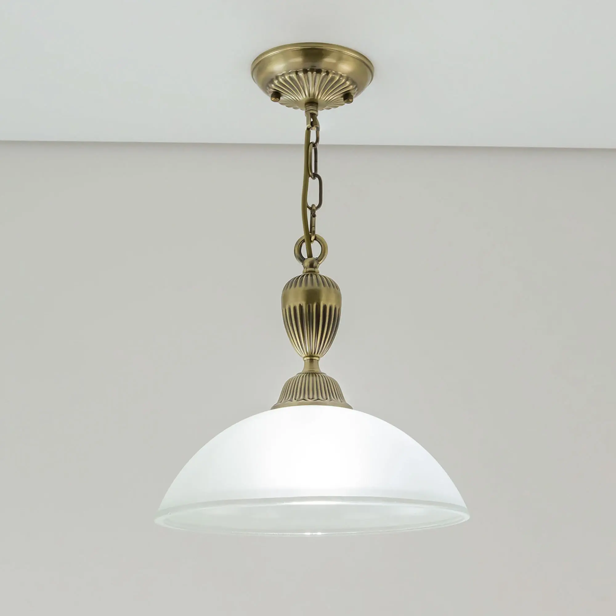 Светильник Citilux Латур CL413211 выполнен в классическом стиле. Корпус модели металлический, цвет бронза. Плафон стеклянный, белый полуматовый с утончённой прозрачной окантовкой. Высоту подвеса можно отрегулировать при установке. В модели используются 1 лампа с цоколем Е27 и максимальной мощностью для ламп накаливания 75Вт. Светодиодную лампу можно использовать более яркую,