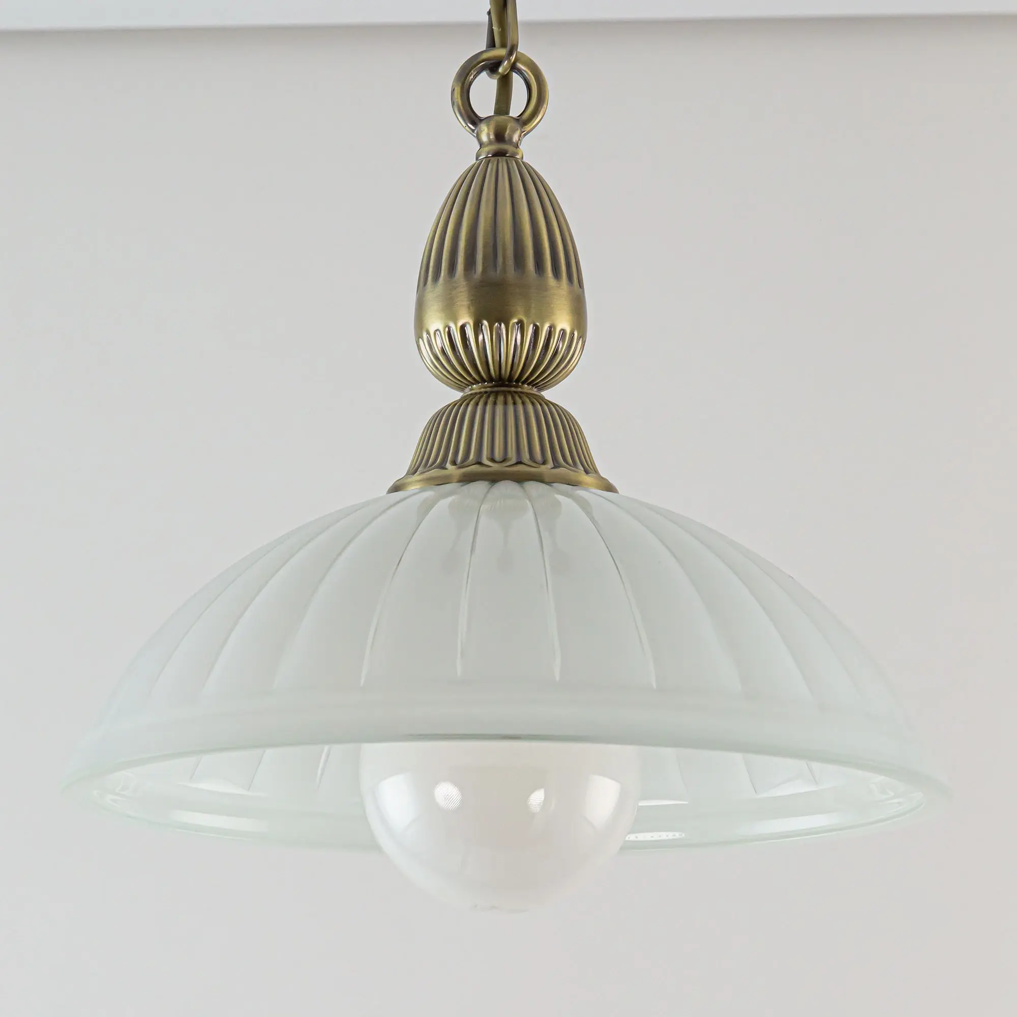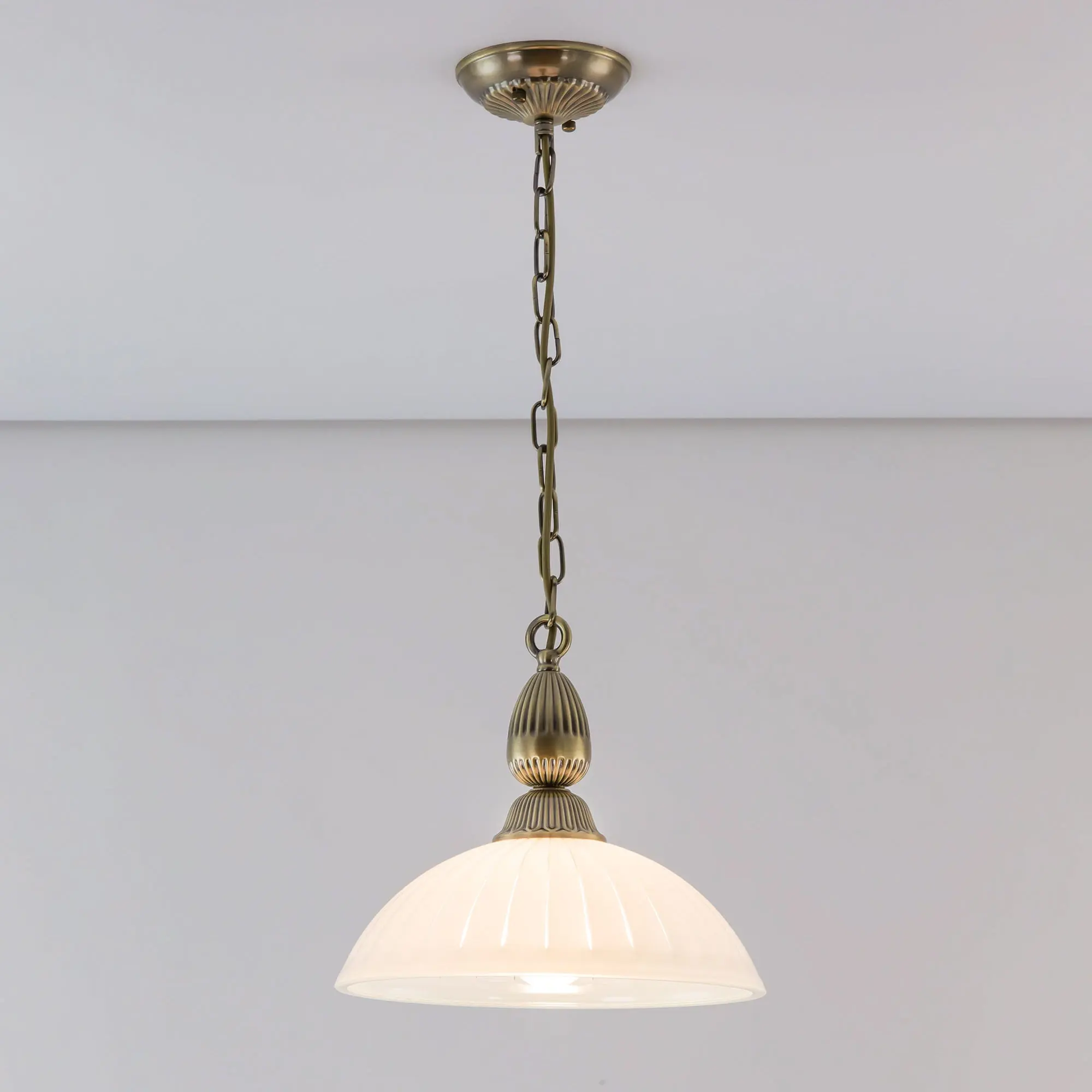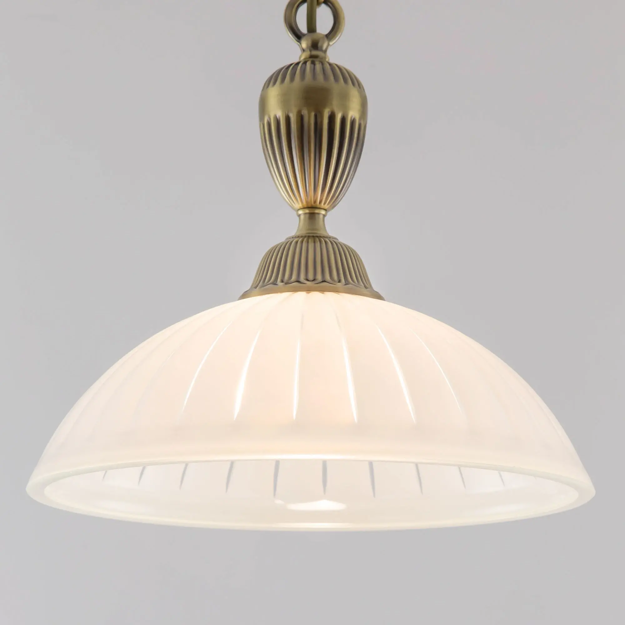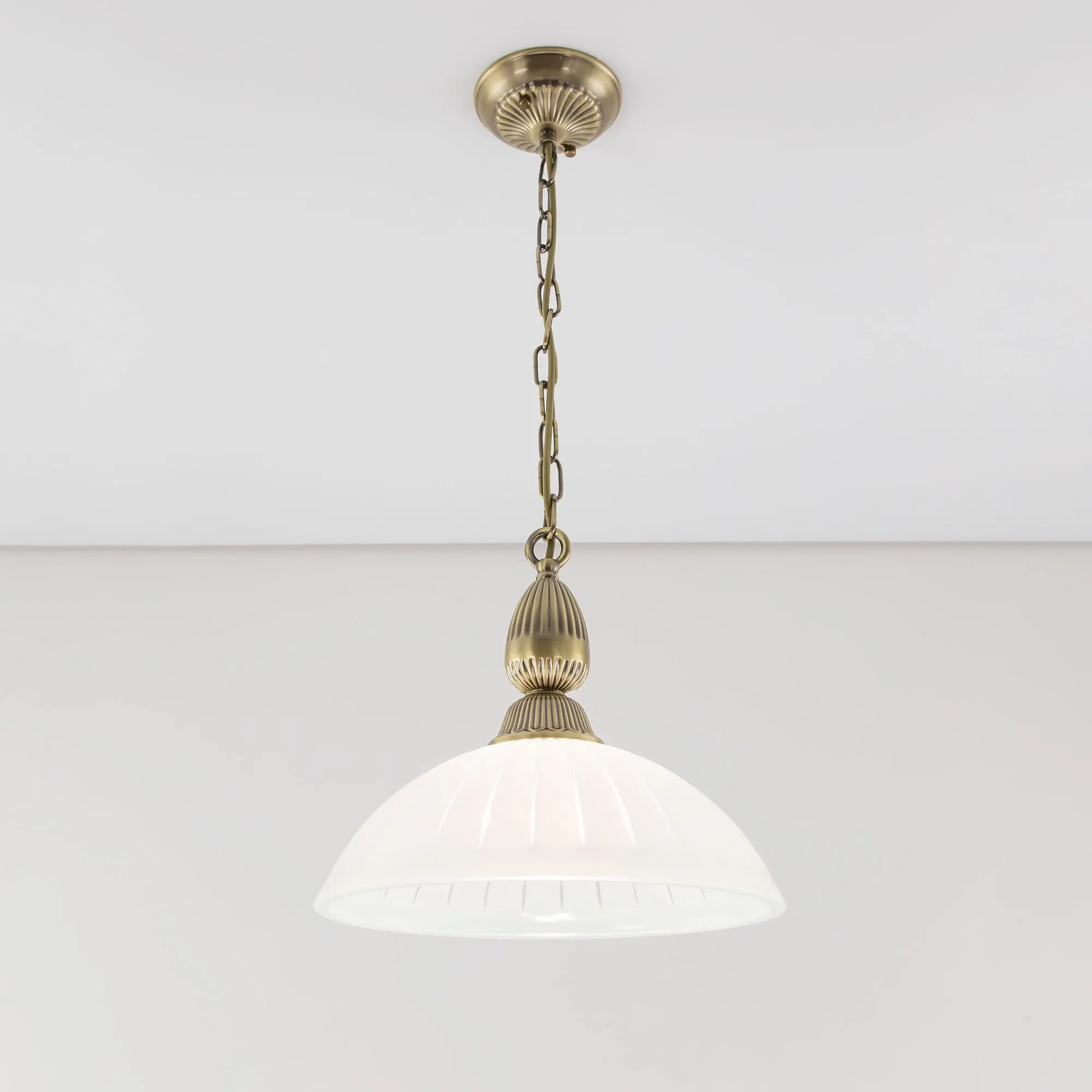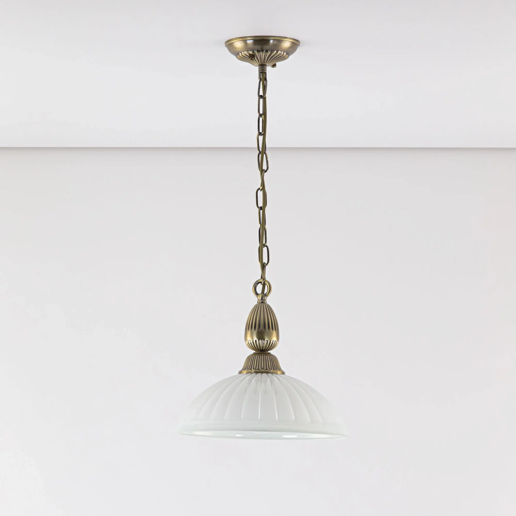Светильник Citilux Латур CL413212 выполнен в классическом стиле. Корпус модели металлический, цвет бронза. Плафон стеклянный, белый глянцевый с прозрачной гравировкой. Высоту подвеса можно отрегулировать при установке. В модели используются 1 лампа с цоколем Е27 и максимальной мощностью для ламп накаливания 75Вт. Светодиодную лампу можно использовать более яркую.