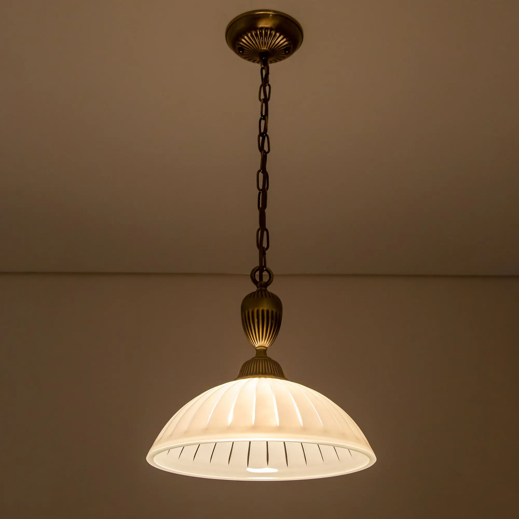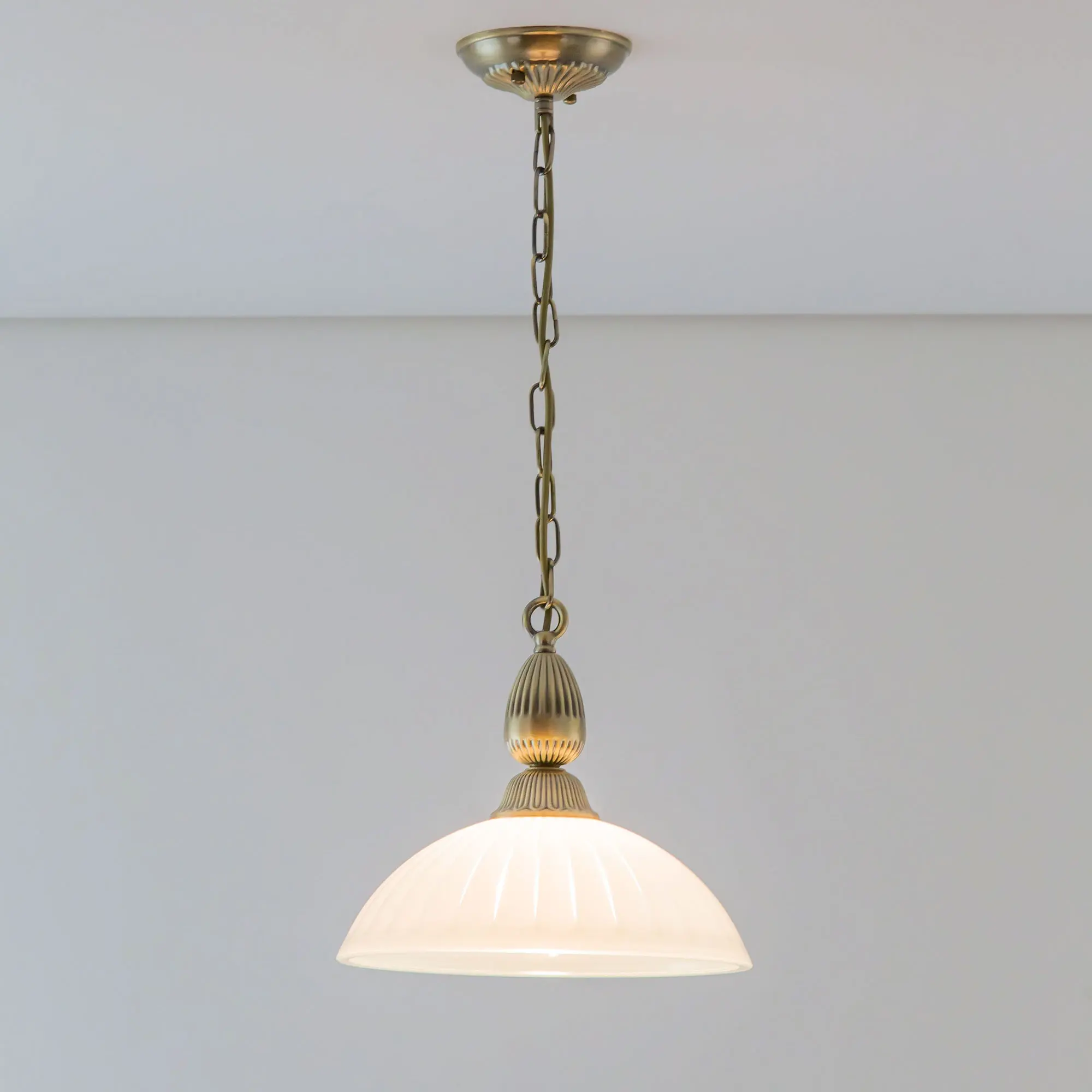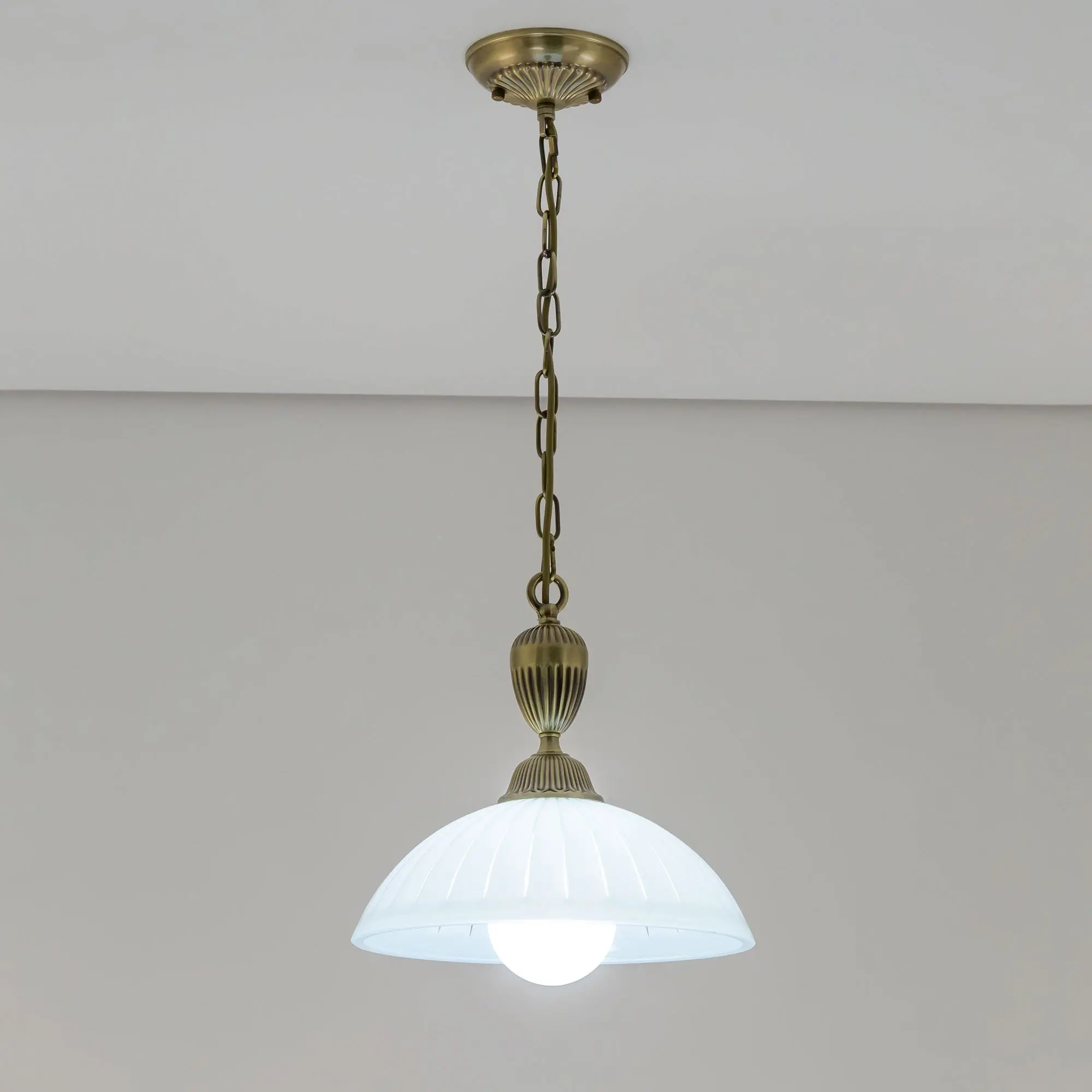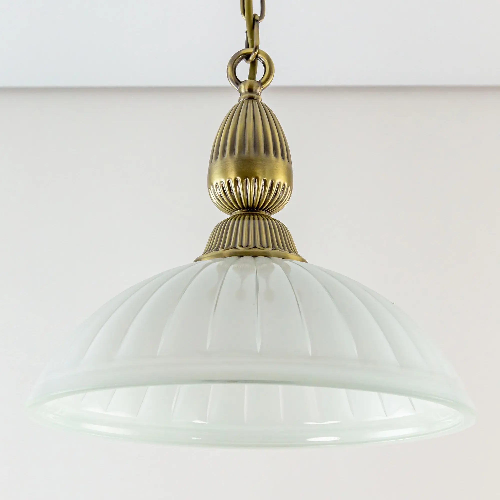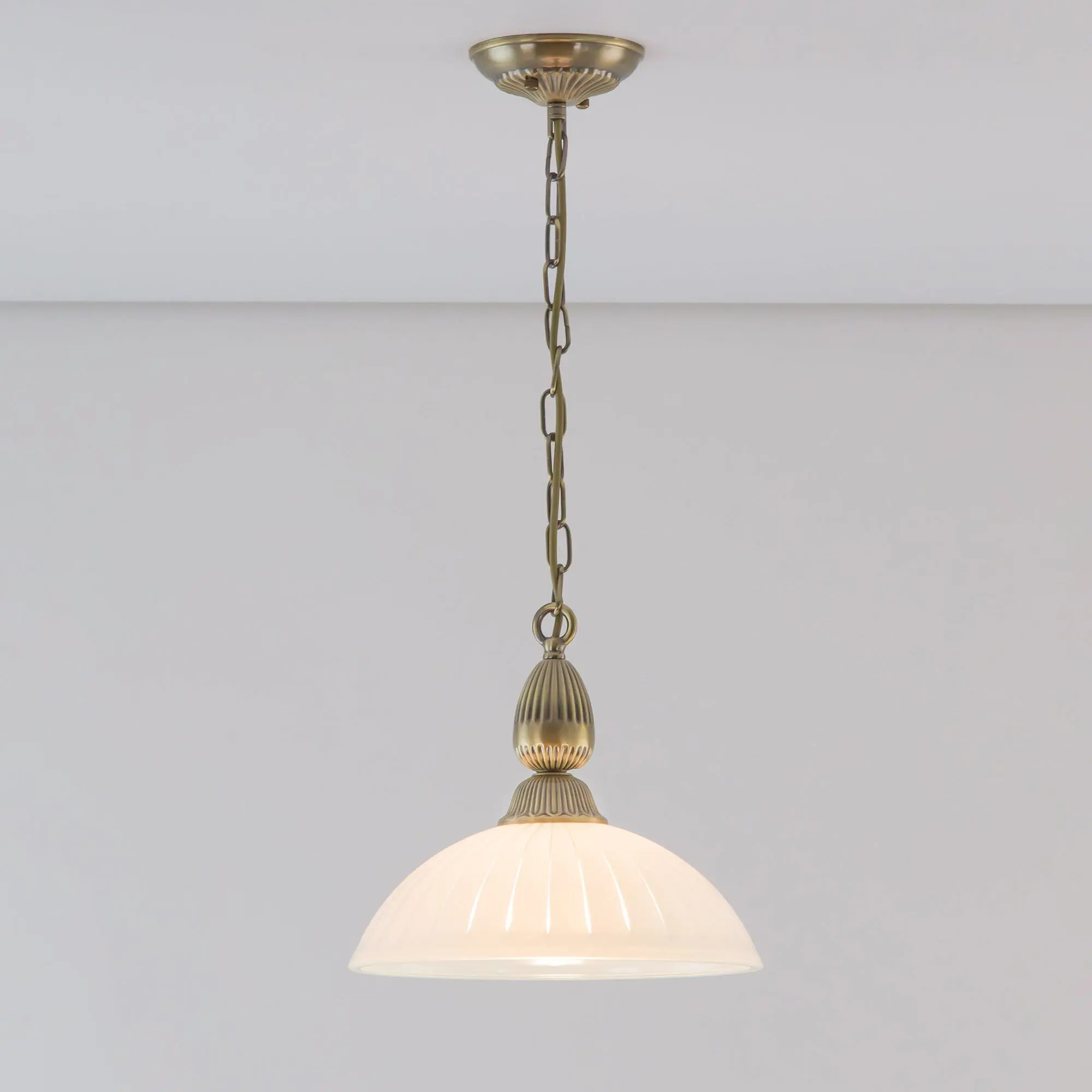 Светильник Citilux Латур CL413212 выполнен в классическом стиле. Корпус модели металлический, цвет бронза. Плафон стеклянный, белый глянцевый с прозрачной гравировкой. Высоту подвеса можно отрегулировать при установке. В модели используются 1 лампа с цоколем Е27 и максимальной мощностью для ламп накаливания 75Вт. Светодиодную лампу можно использовать более яркую.