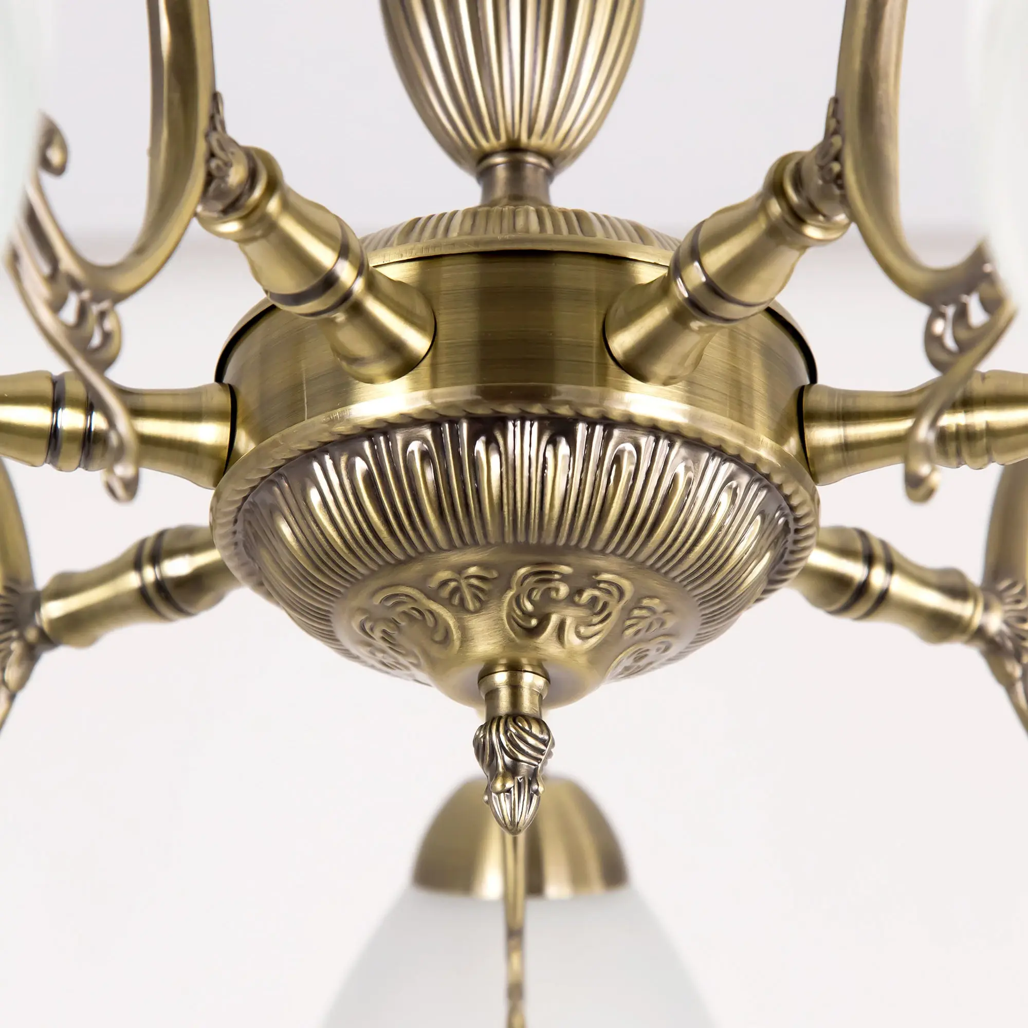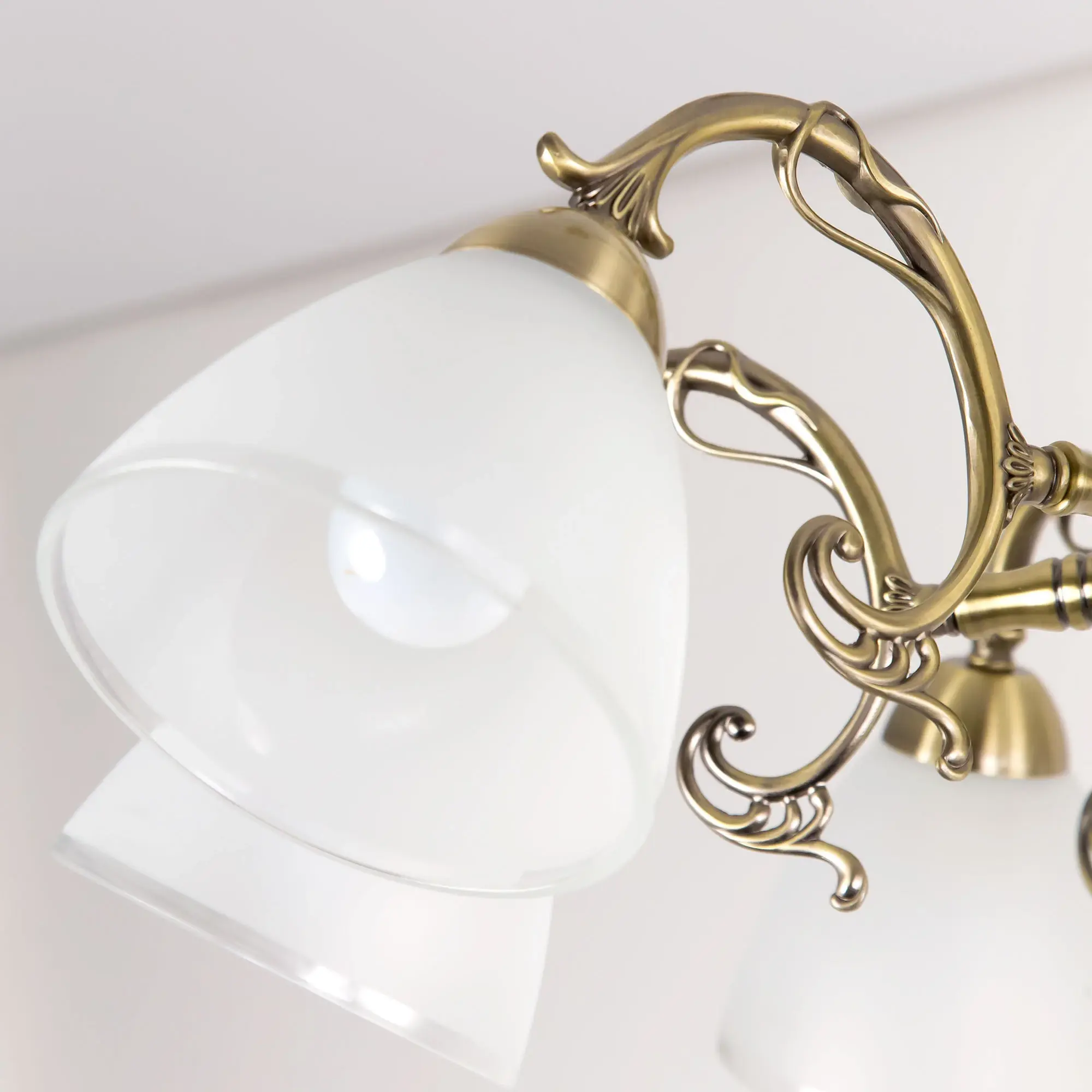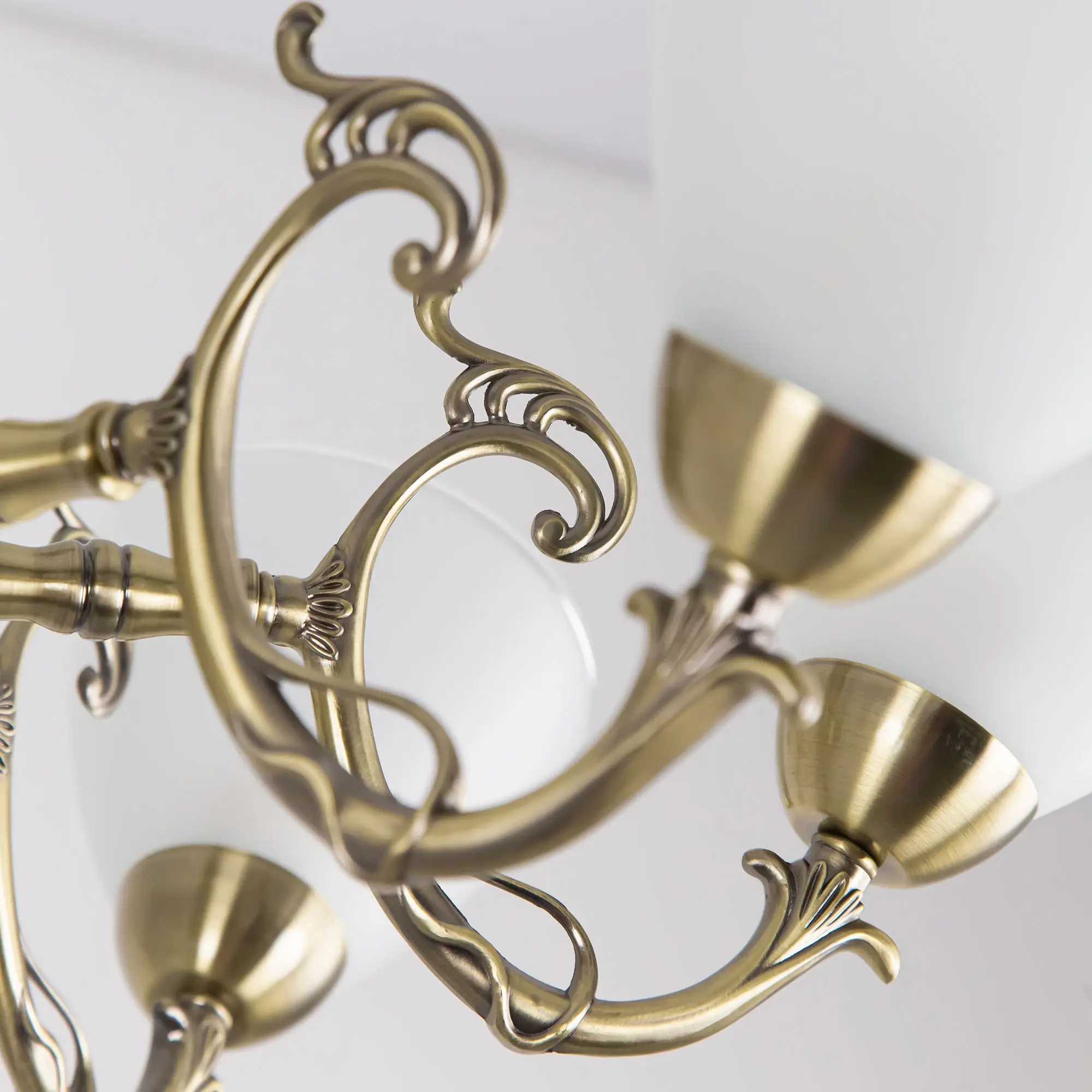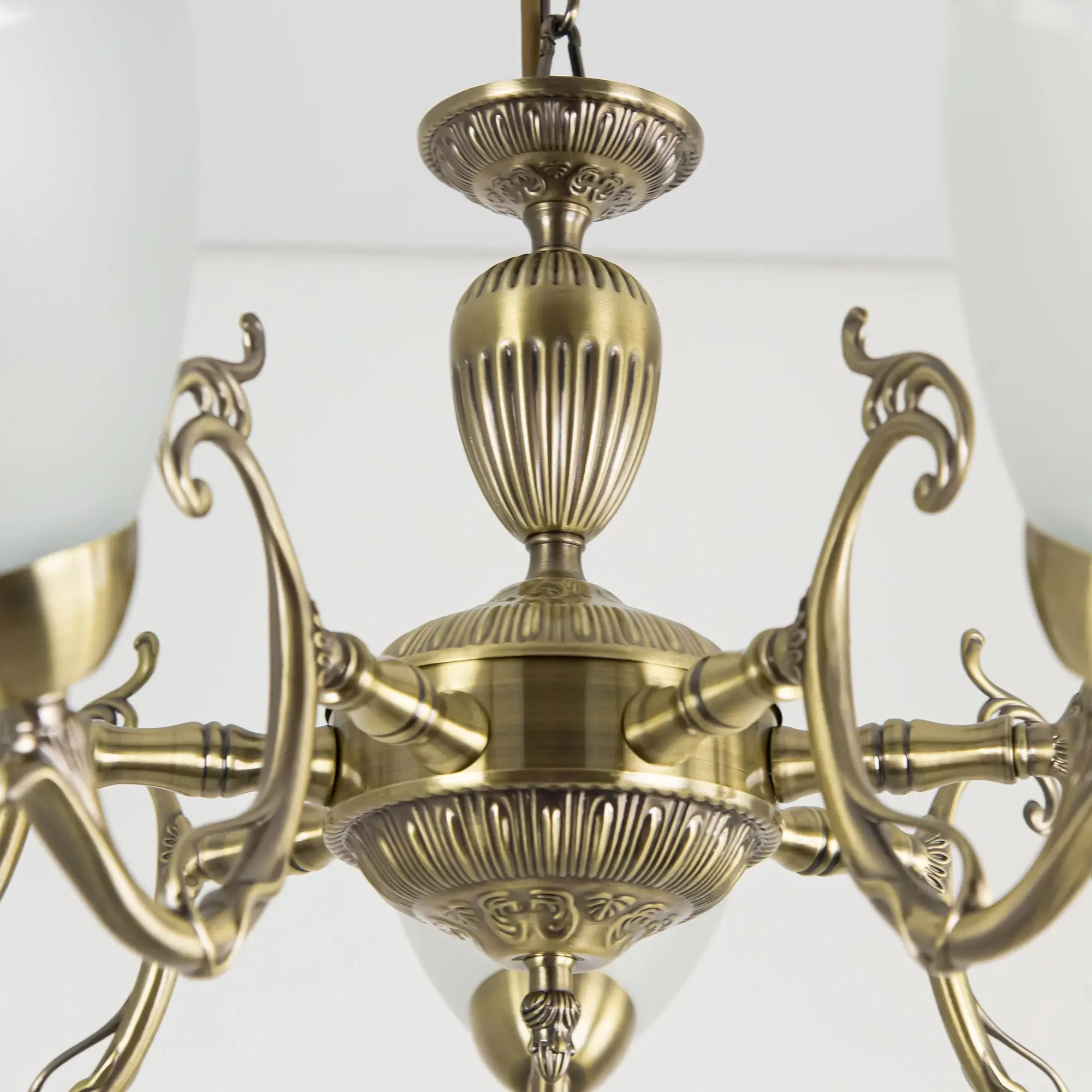 Люстра Citilux Латур CL413271 выполнена в классическом стиле. Корпус светильника металлический, с литыми рожками, цвет бронза. Плафоны стеклянные, полуматовые с утончённой прозрачной окантовкой. Люстра поставляется в виде комплекта для самостоятельной сборки, с подробной инструкцией. Из данного набора, можно собрать подвесную модель с плафонами, направленными вверх, дающую мягкий отраженный свет или более яркий вариант с плафонами вниз. Высота люстры на цепи 90 см, прекрасный выбор для комнат с высокими потолками. Если в помещении низкие потолки, люстру можно собрать вообще без цепи, как потолочную, высотой всего 27 см. Тип крепления к потолку – планка. Более того, на стадии сборки, вы можете подключить люстру для работы, как с одноклавишным, так и с двухклавишным выключателем. В модели используются 7 ламп с цоколем Е27 максимальной мощностью для ламп накаливания 75Вт. Суммарная мощность 525 Вт. Светодиодные лампы можно использовать большей яркости.