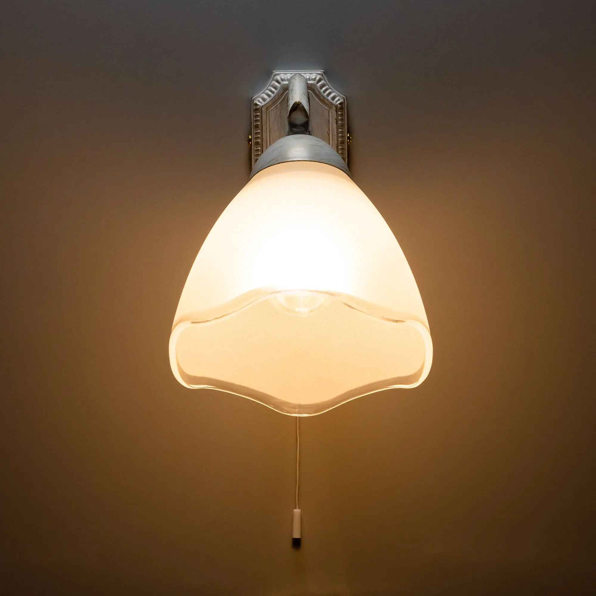 Бра настенное Citilux Латур CL413410 в классическом стиле. Корпус светильника металлический, с литым рожком и удобным выключателем. Цвет белый с золотистой патиной. Плафон стеклянный, полуматовый, с прозрачным волнистым краем. Изделие можно установить плафоном вверх или вниз. Тип крепления к стене – планка. В модели используются лампы с цоколем Е27 максимальной мощностью для ламп накаливания 75Вт. Светодиодные лампы можно устанавливать более яркие,
