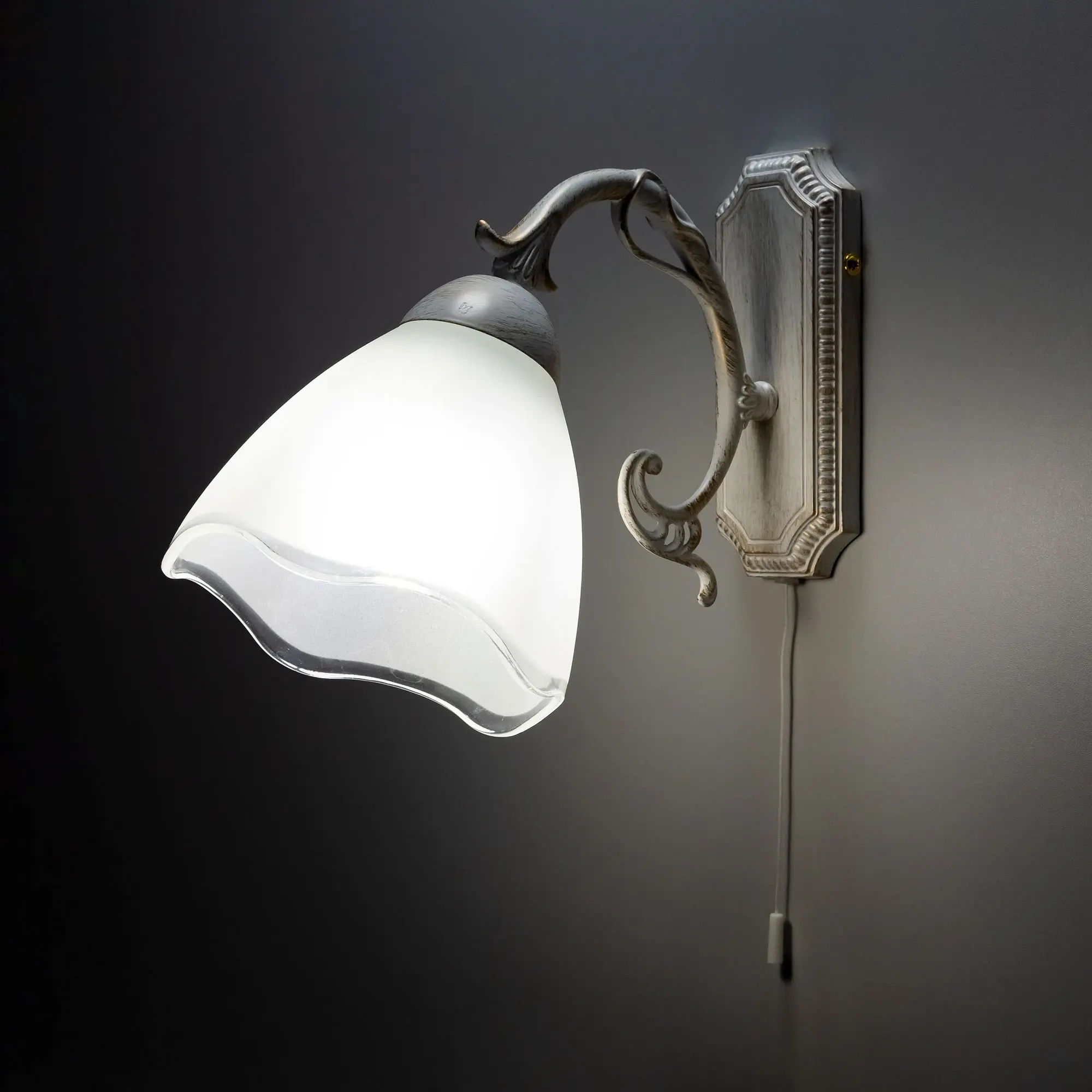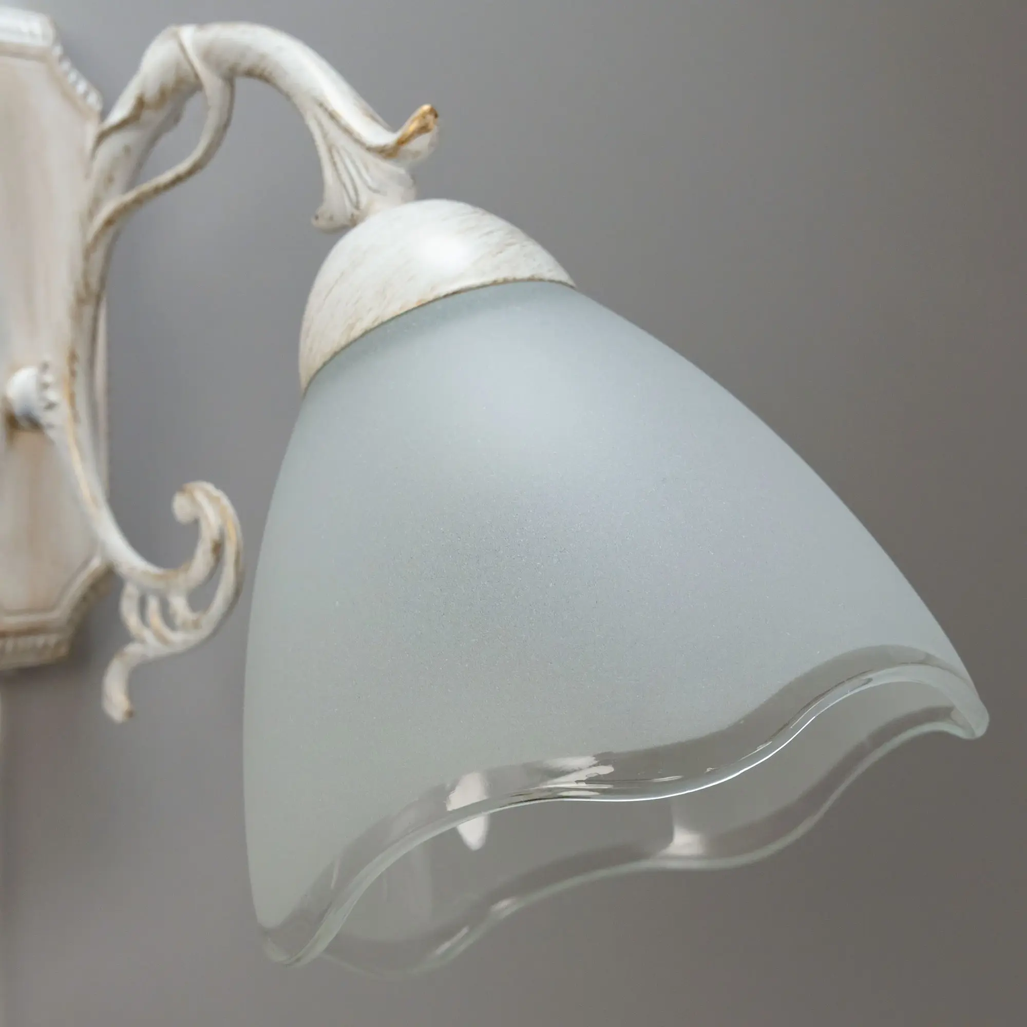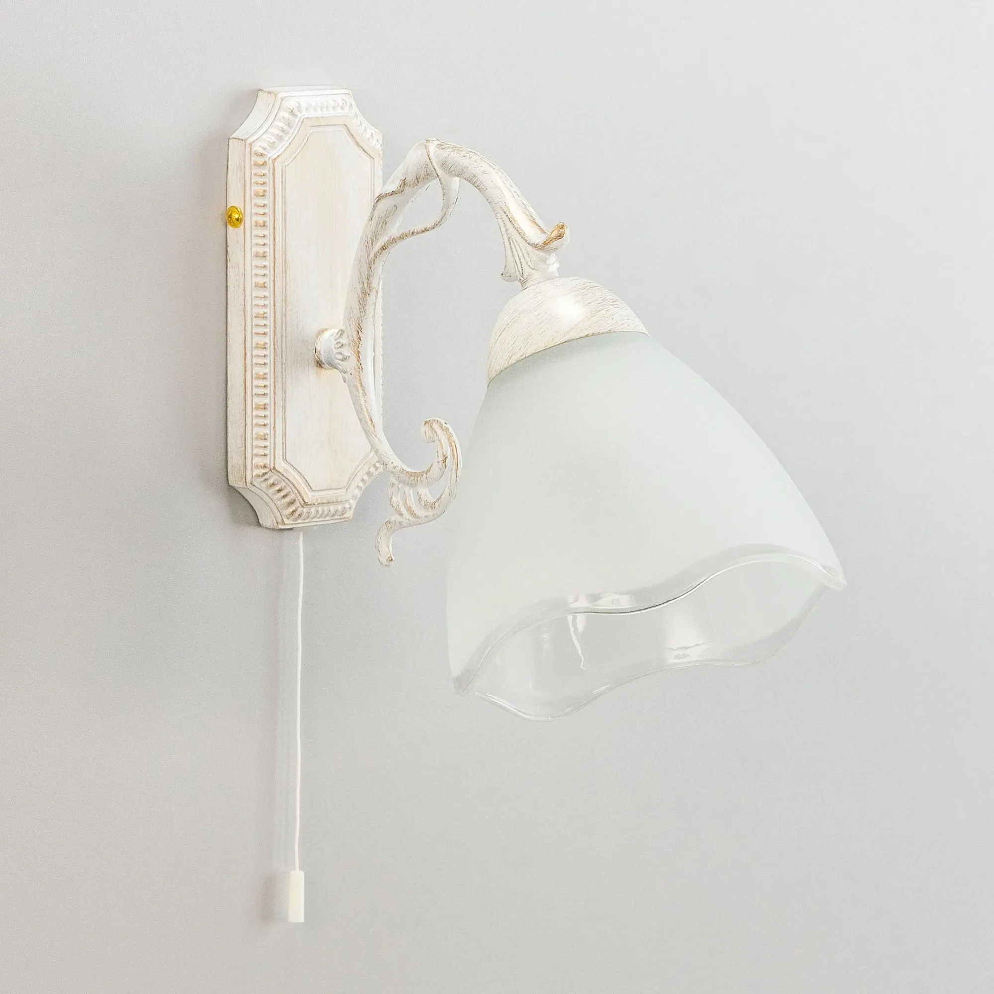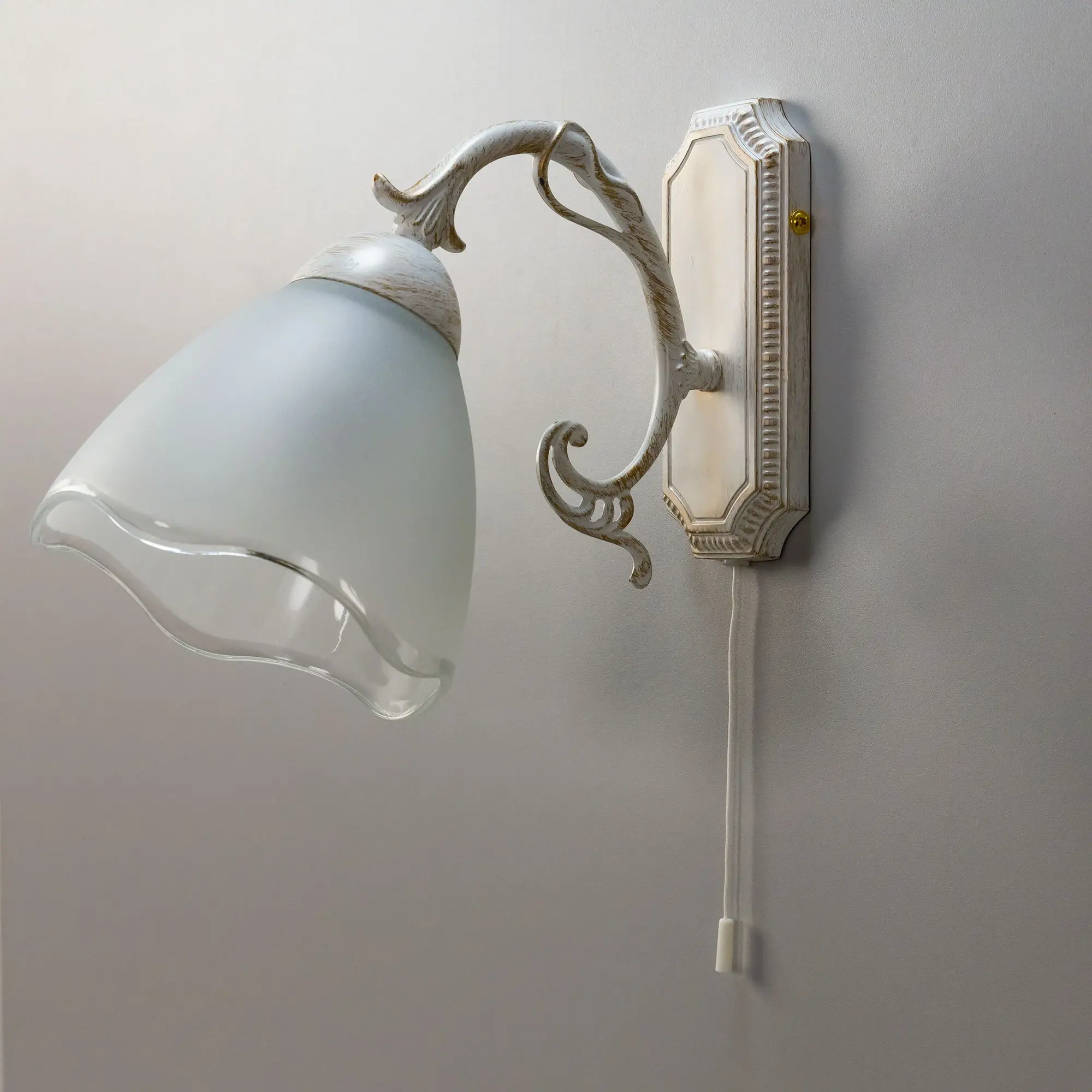 Бра настенное Citilux Латур CL413410 в классическом стиле. Корпус светильника металлический, с литым рожком и удобным выключателем. Цвет белый с золотистой патиной. Плафон стеклянный, полуматовый, с прозрачным волнистым краем. Изделие можно установить плафоном вверх или вниз. Тип крепления к стене – планка. В модели используются лампы с цоколем Е27 максимальной мощностью для ламп накаливания 75Вт. Светодиодные лампы можно устанавливать более яркие.,