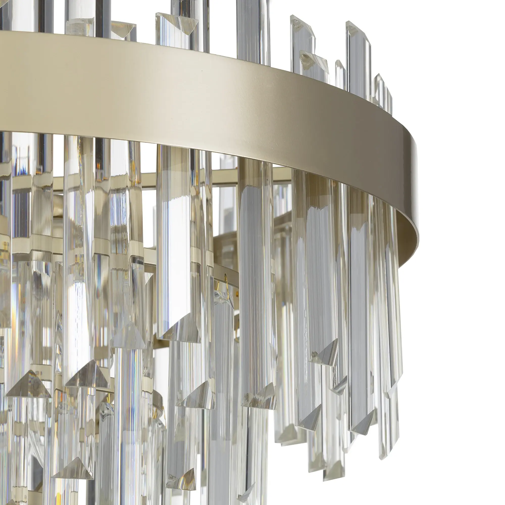 Хрустальная люстра Citilux Лаура CL301262 выполнена в стиле современной классики. Корпус светильника металлический, цвет шампань. Хрустальные подвески кристально прозрачные с модной огранкой, расположены в несколько рядов ниспадающим каскадом.