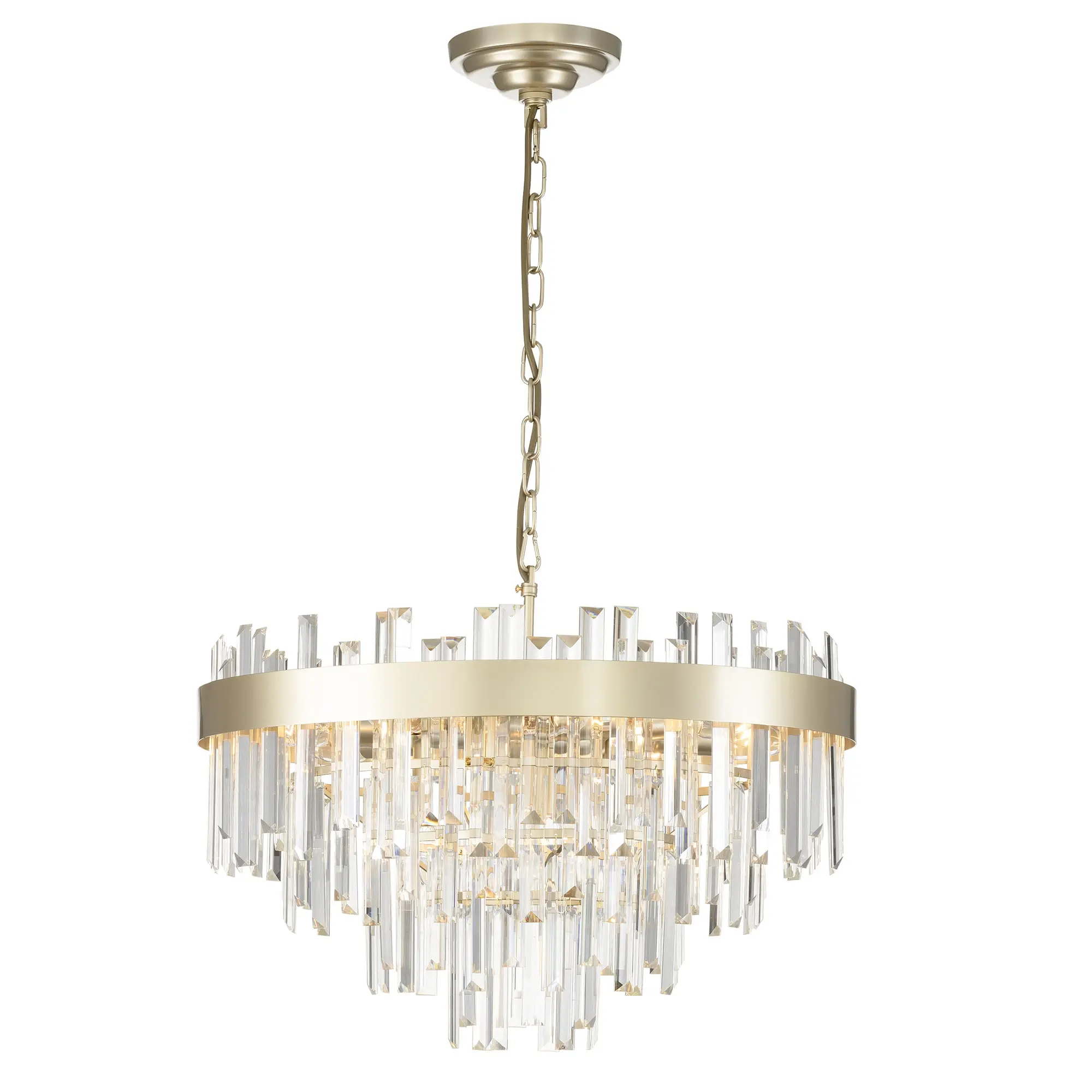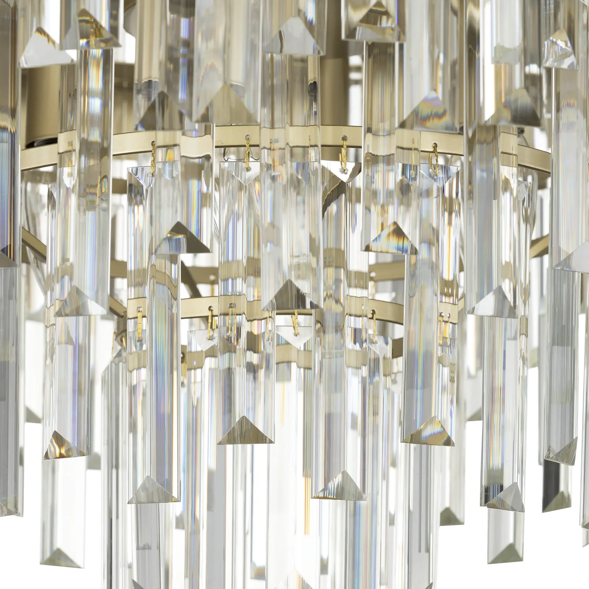 Хрустальная люстра Citilux Лаура CL301292 выполнена в стиле современной классики. Корпус светильника металлический, цвет шампань. Хрустальные подвески кристально прозрачные с модной огранкой, расположены в несколько рядов ниспадающим каскадом.