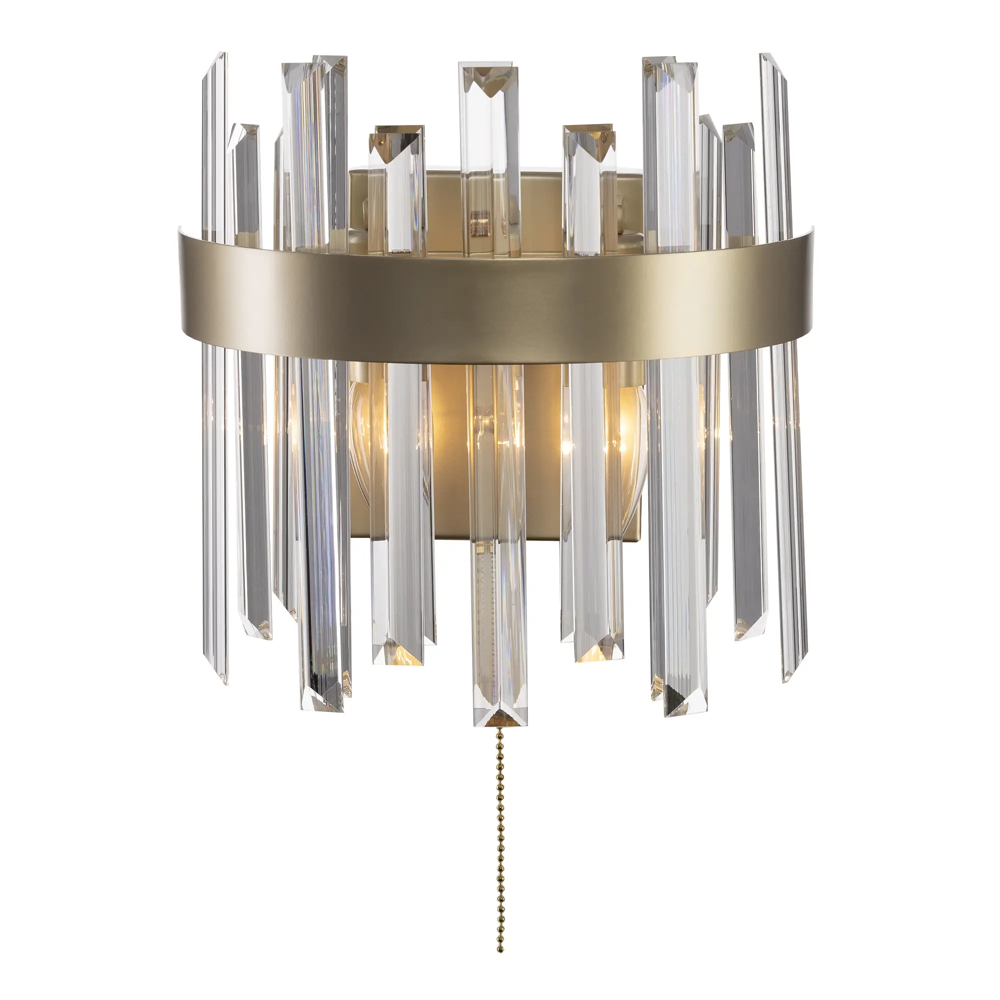 Хрустальный настенный светильник Citilux Лаура CL301422 выполнен в стиле современной классики. Основание светильника металлическое полукруглой формы цвет шампань. Хрустальные подвески кристально прозрачные с модной огранкой.