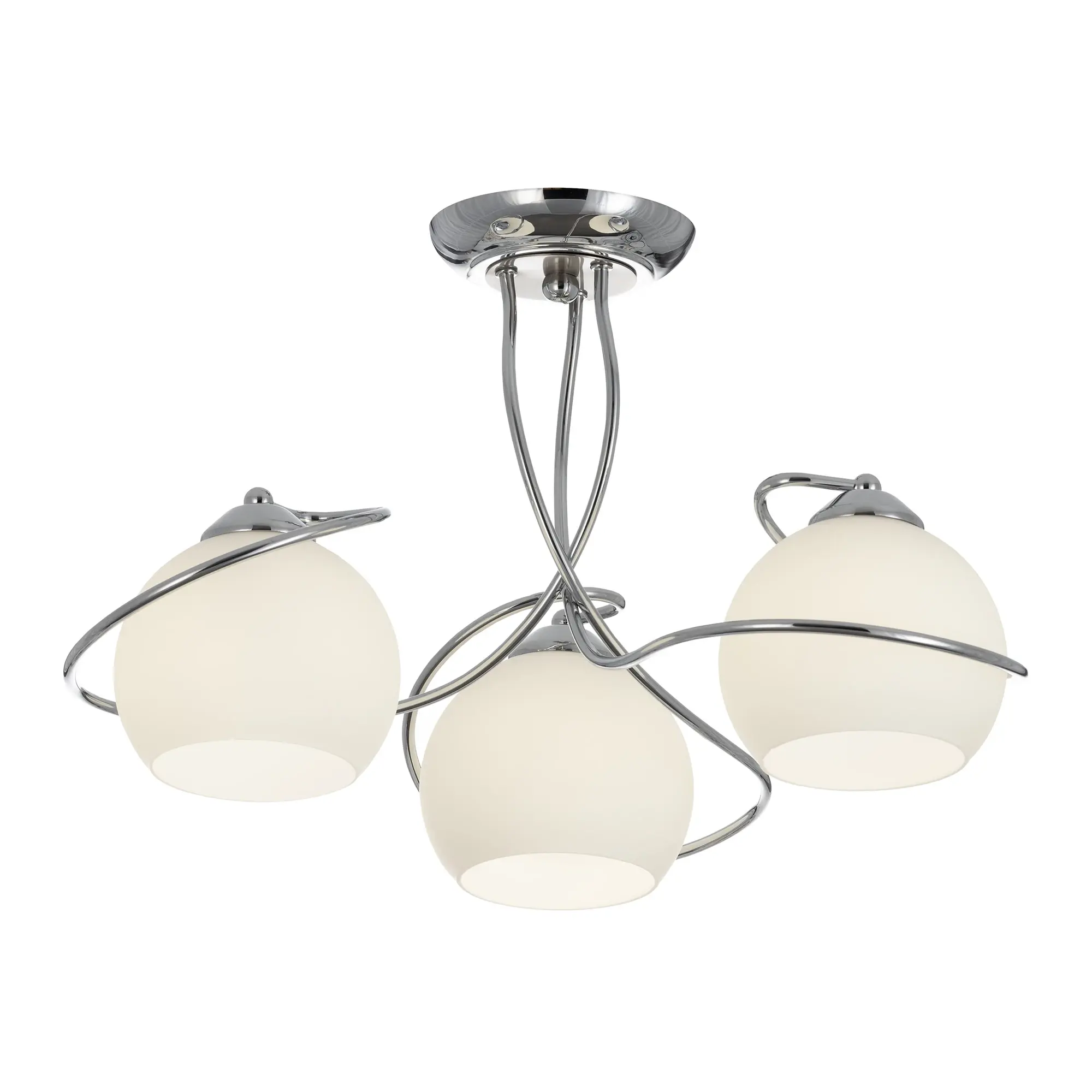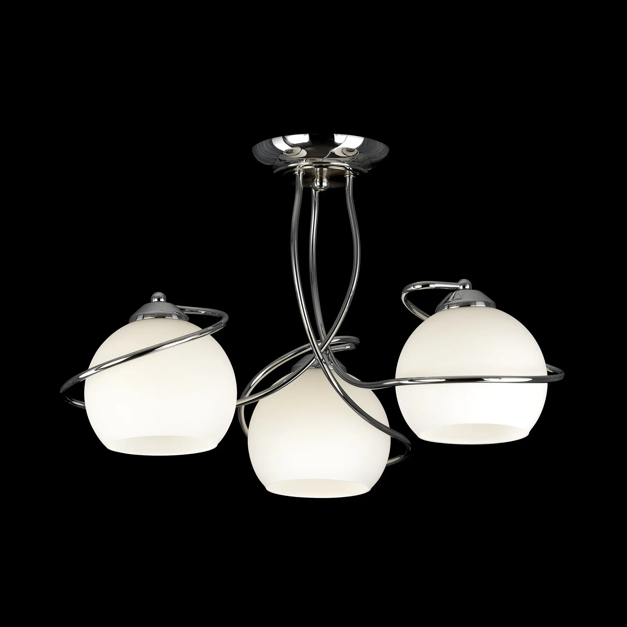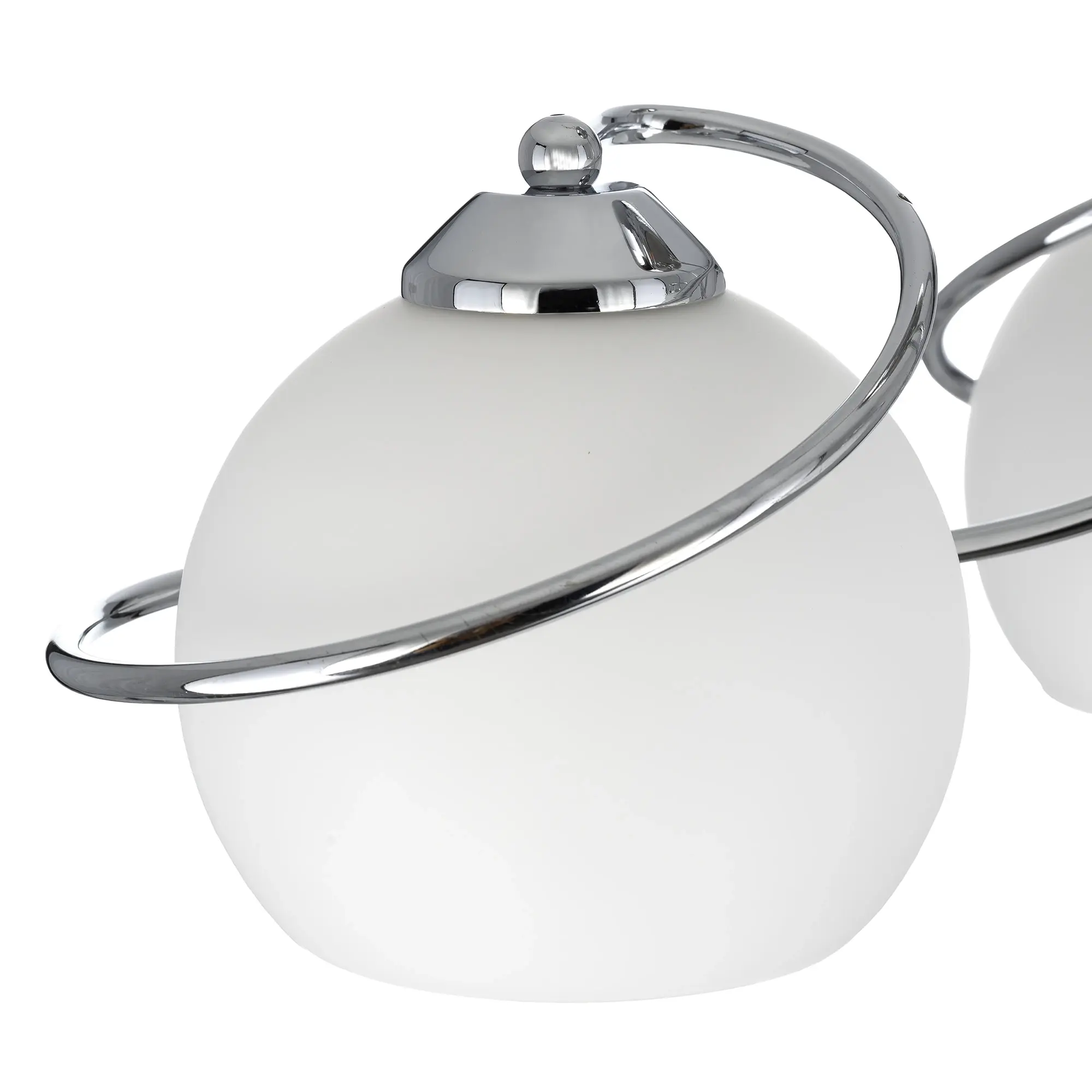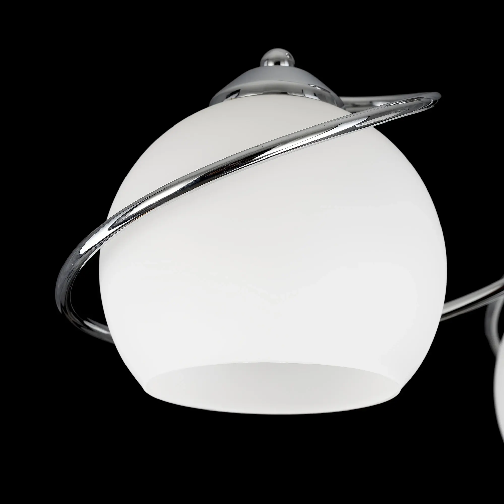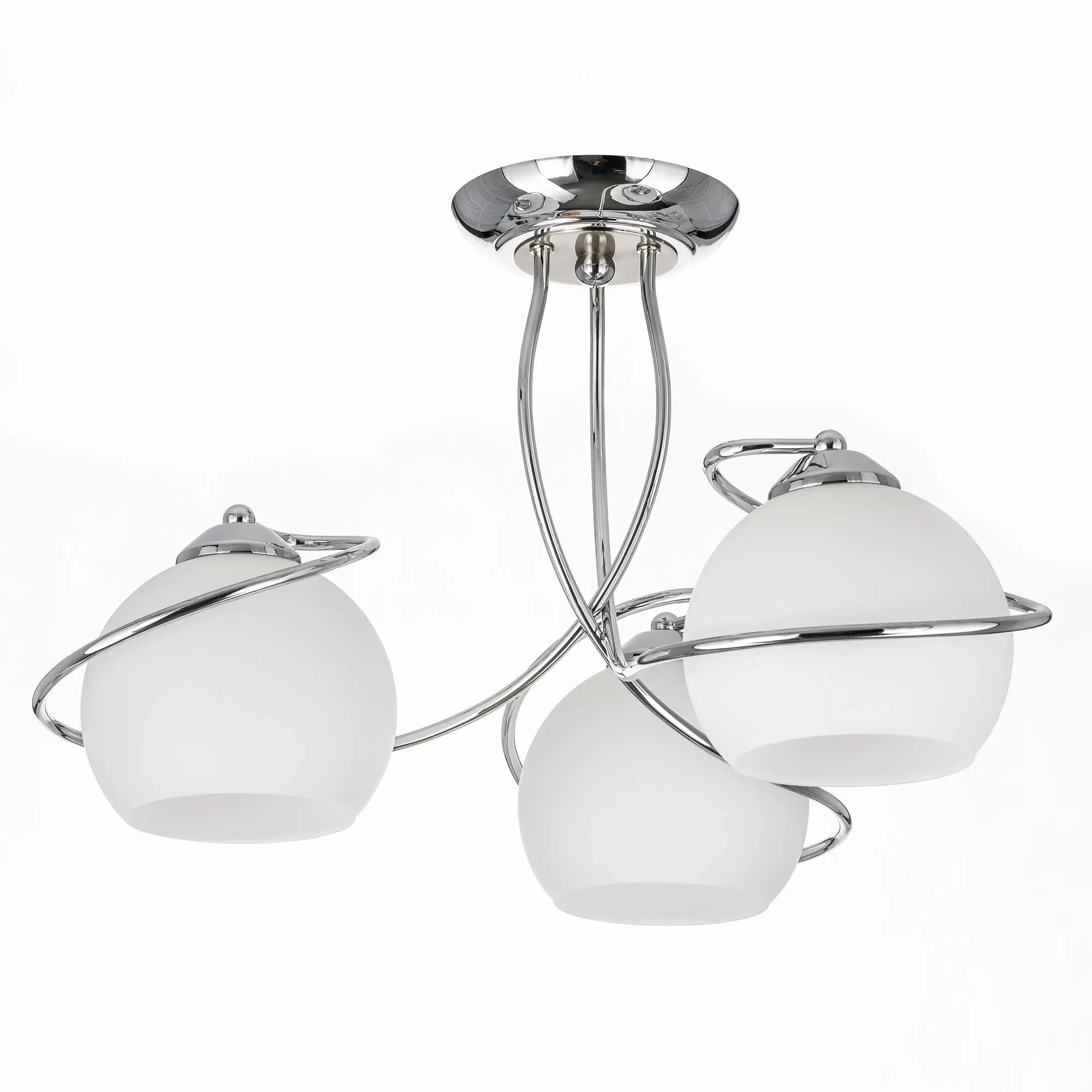 Люстра потолочная Citilux Layma CL155131 в современном стиле. Корпус люстры металлический, оттенка хром, витые, причудливо изгибающиеся рожки. Плафоны — из белоснежного выдувного стекла, в форме усеченной сферы.