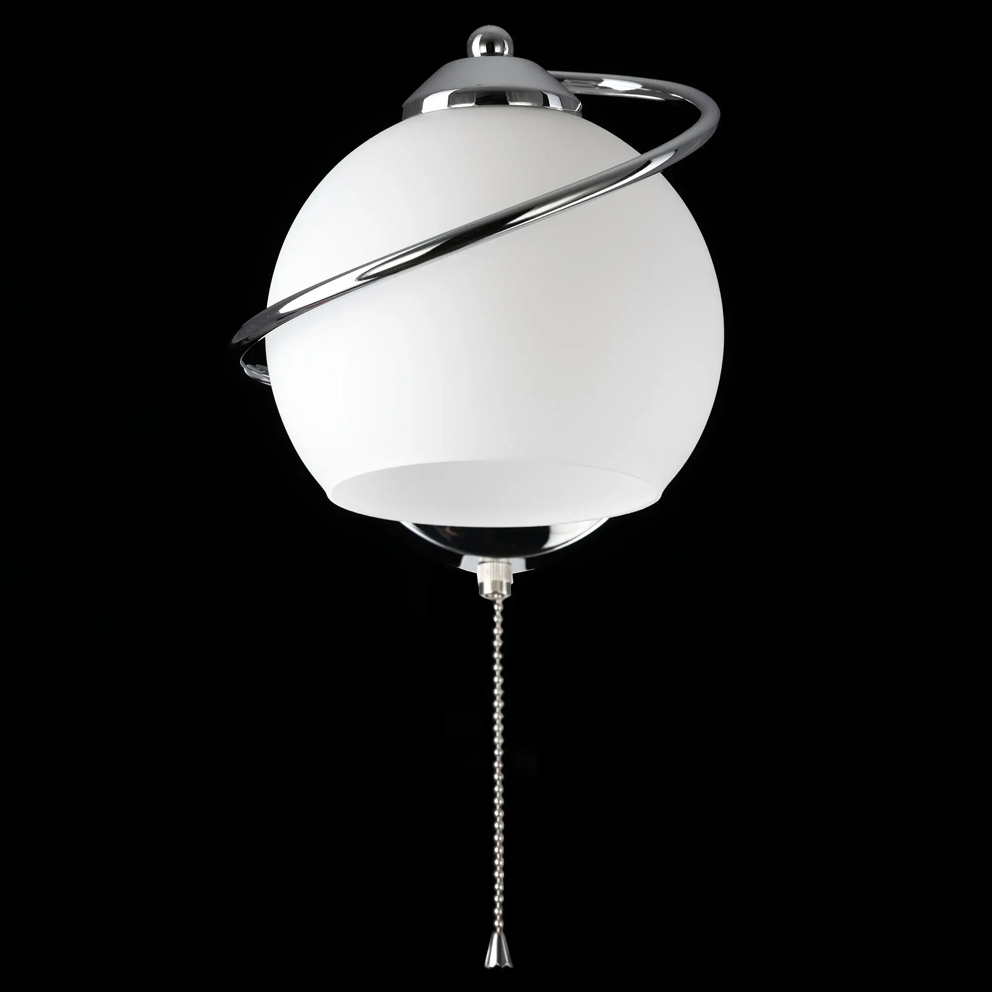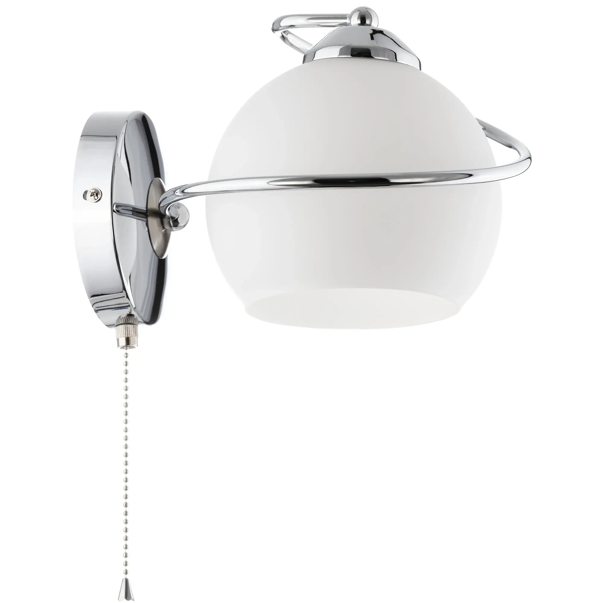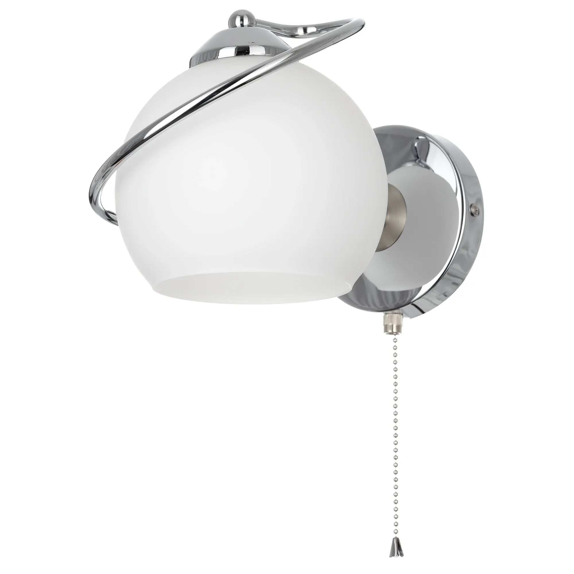 Бра с выключателем Citilux Layma CL155311 в современном стиле. Корпус светильника металлический, оттенка хром, витая, причудливо изгибающаяся арматура. Плафон — из белоснежного выдувного стекла, в форме усеченной сферы.