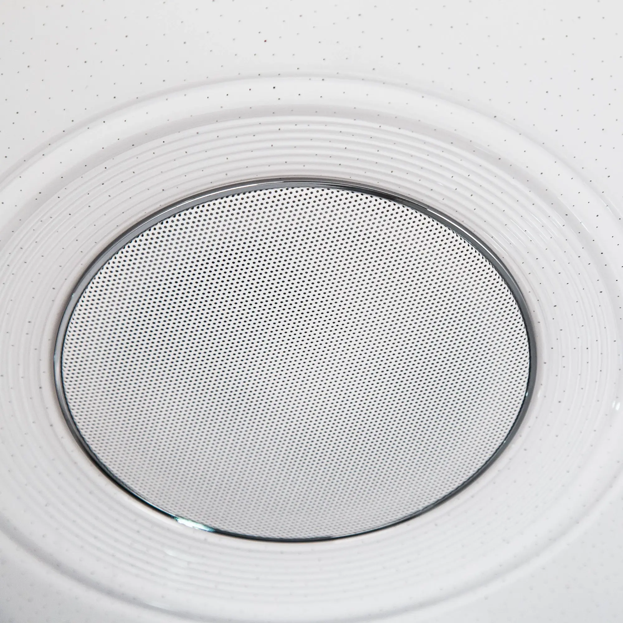 Музыкальный светильник коллекции Citilux Light & Music на 100 ватт разработан и произведён нами по вашим просьбам специально для помещений площадью более 18 квадратных метров. Площадь освещения на максимальной яркости до 25 квадратных метров. Помимо увеличенной яркости и большего размера относительно предыдущей версии светильника, громче звук, ярче RGB-подсветка. В качестве эксперимента добавлена элегантная тонкая хромовая полоска на краю плафона, которая идеально сочетается с центральным таким же изящным кольцом. Плафон с эффектом хрустально блеска будет эффектно смотреться в Вашем дизайне, привлекая взгляд. Данный светильник многофункциональная система, которой можно управлять тремя основными способами – обычным настенным выключателем, пультом управления и приложением со смартфона. С настенного выключателя доступны три режима, два из которых Вы можете перепрограммировать так, как это нужно. Первые два режима включения с выключателя можно запомнить на кнопки памяти на пульте управления M1 и M2. Третье включение по умолчанию выставлено в ночник. При управлении с пульта легко управлять настройками света, или переключить управление на музыку. С пульта можно включить следующую/предыдущую мелодию, уменьшить или увеличить звук, поставить проигрывание на паузу. Мобильное приложение доступно для скачивания в Play Market и AppStore. Приложение разрабатывалось нашей компанией полностью с ноля, все детали продуманы, управление интуитивно понятно. Стоит упомянуть несколько функций, доступных только тут: это эквалайзер с очень тонкими настройками звука, будильник, и режим «диско». Будильник шикарно продуман с точки зрения функционала, может разбудить Вас любимой мелодией, мелодией с включением света на определённую яркость, либо только включением света. А с помощью режима «Диско» вы с лёгкостью организуете дома весёлую дискотеку. Для воспроизведения доступна не только музыка, абсолютно всё, что у вас включается на телефоне, можно включить и для проигрывания со светильника, то есть, это могут быть и аудио уроки английского, сказка на ночь, просто аудио книга. Учитывая широчайший спектр функциональных возможностей, музыкальная люстра Citilux подойдёт для всех возвратных категории и с лёгкостью впишется в любое по типу помещение. Особенности установки сопряжения: Обязательно (!) сначала установите сопряжение Bluetooth в системных настройках смартфона, а только потом открывайте приложение. В противном случае полностью выгрузите приложение (закройте и удалите из недавних), удалите светильник из списка сопряженных в настройках Bluetooth и повторно выполните установку сопряжения. После этих действий можно снова запускать приложение. Для правильной установки сопряжения руководствуйтесь пунктом 6.2 прилагаемой инструкции.