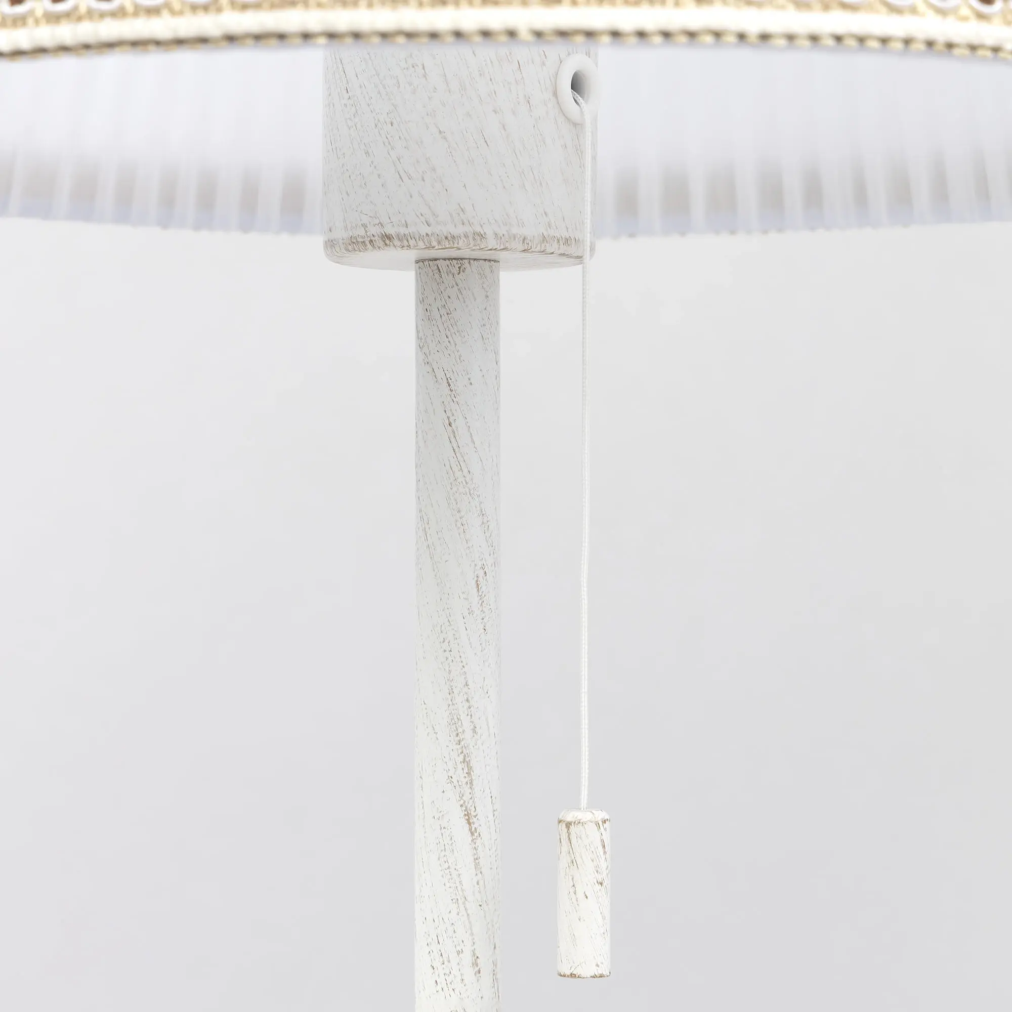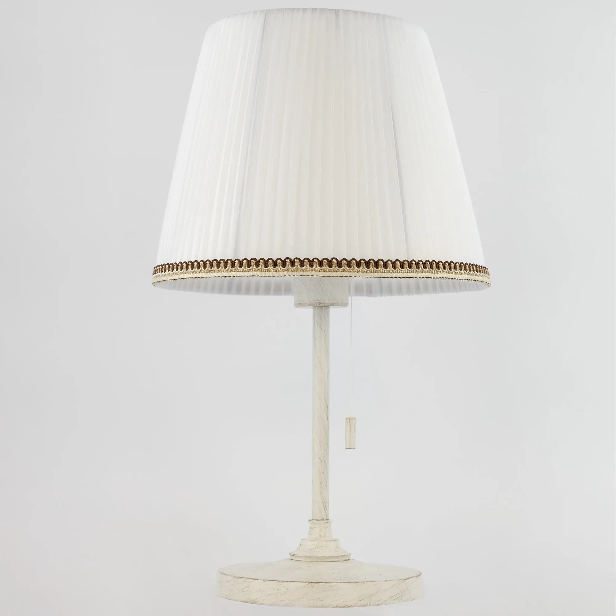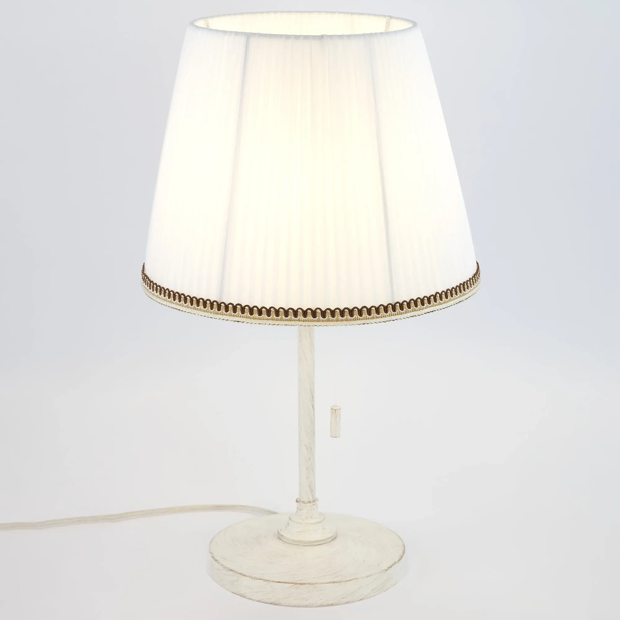 Настольный светильник Ситилюкс Линц CL402720 с тканевым абажуром и удобным выключателем. Основание металлическое, молочного цвета с золотистой патиной. Плиссированный абажур из полупрозрачной органзы белого цвета декорирован изящной тесьмой. В изделии 1 лампа с цоколем Е27 максимальной мощностью для ламп накаливания 40Вт (в комплект не входит, приобретается отдельно). Светодиодные лампы можно устанавливать более яркие. Выключатель типа сонетка («дёргалка») находится на основании. Высота светильника 45см, диаметр 28,5см, длина сетевого провод 1,8м.