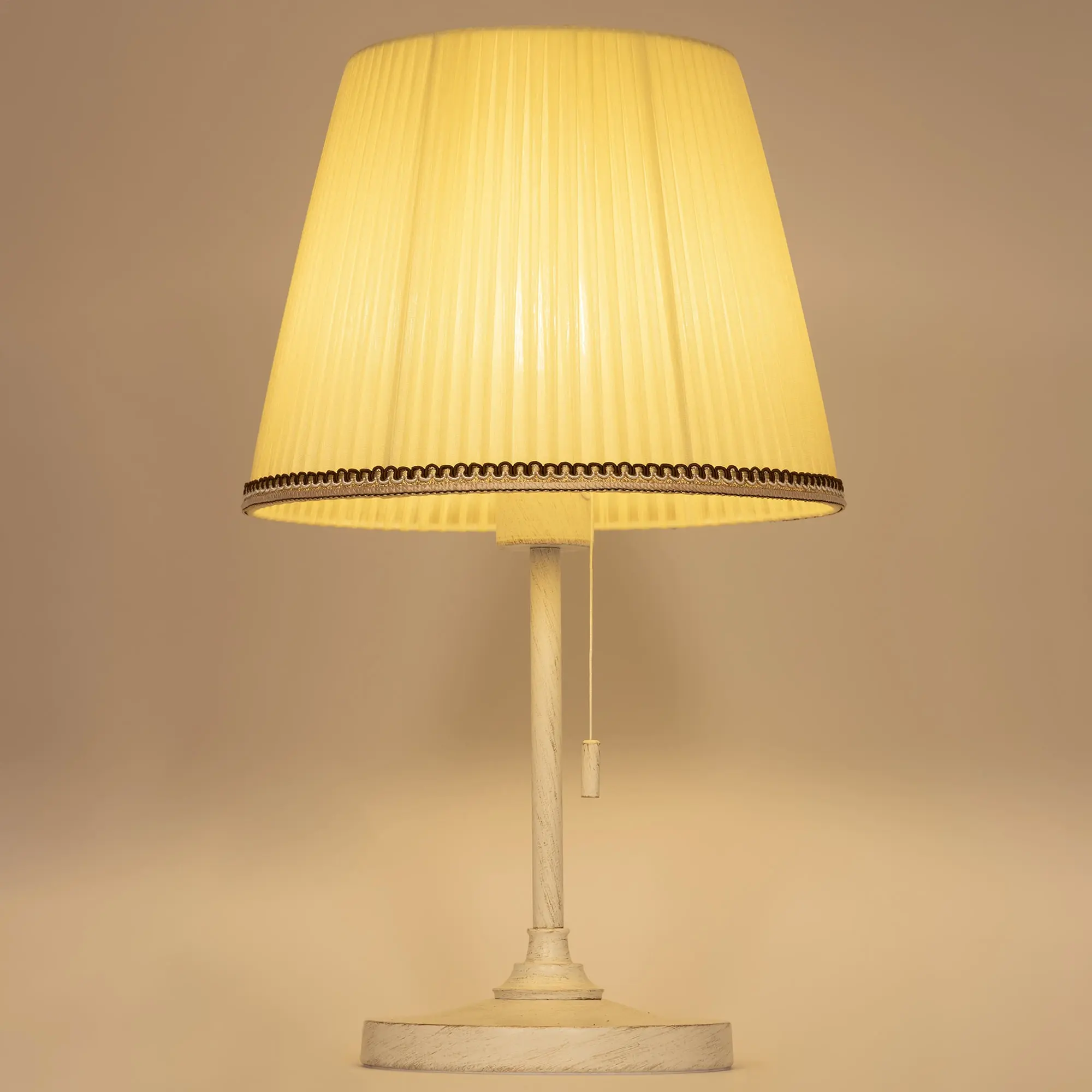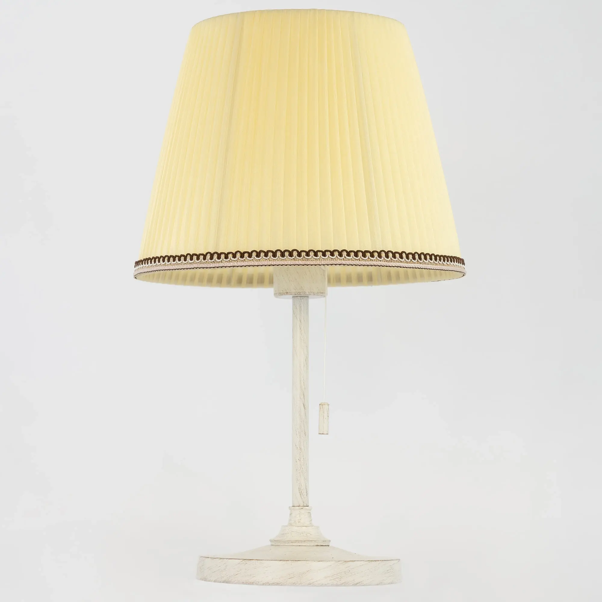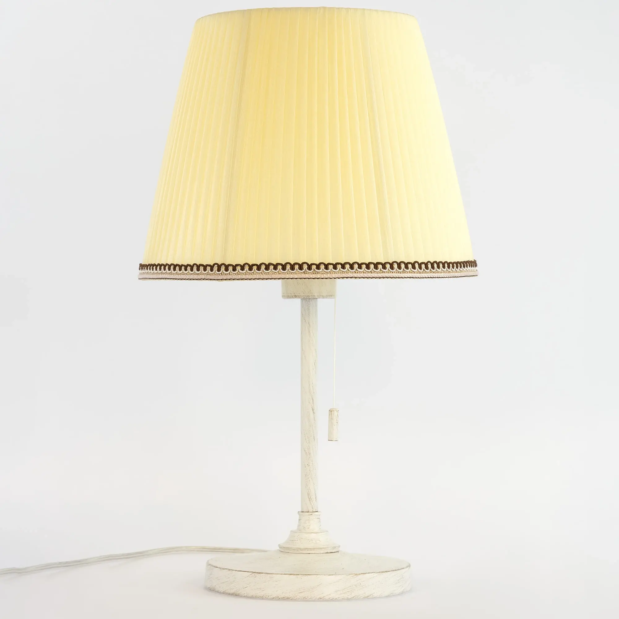 Настольный светильник Ситилюкс Линц CL402723 с тканевым абажуром и удобным выключателем. Основание металлическое, молочного цвета с золотистой патиной. Плиссированный абажур из полупрозрачной органзы кремового цвета декорирован изящной тесьмой. В изделии 1 лампа с цоколем Е27 максимальной мощностью для ламп накаливания 40Вт (в комплект не входит, приобретается отдельно). Светодиодные лампы можно устанавливать более яркие. Выключатель типа сонетка («дёргалка») находится на основании. Высота светильника 45см, диаметр 28,5см, длина сетевого провод 1,8м.