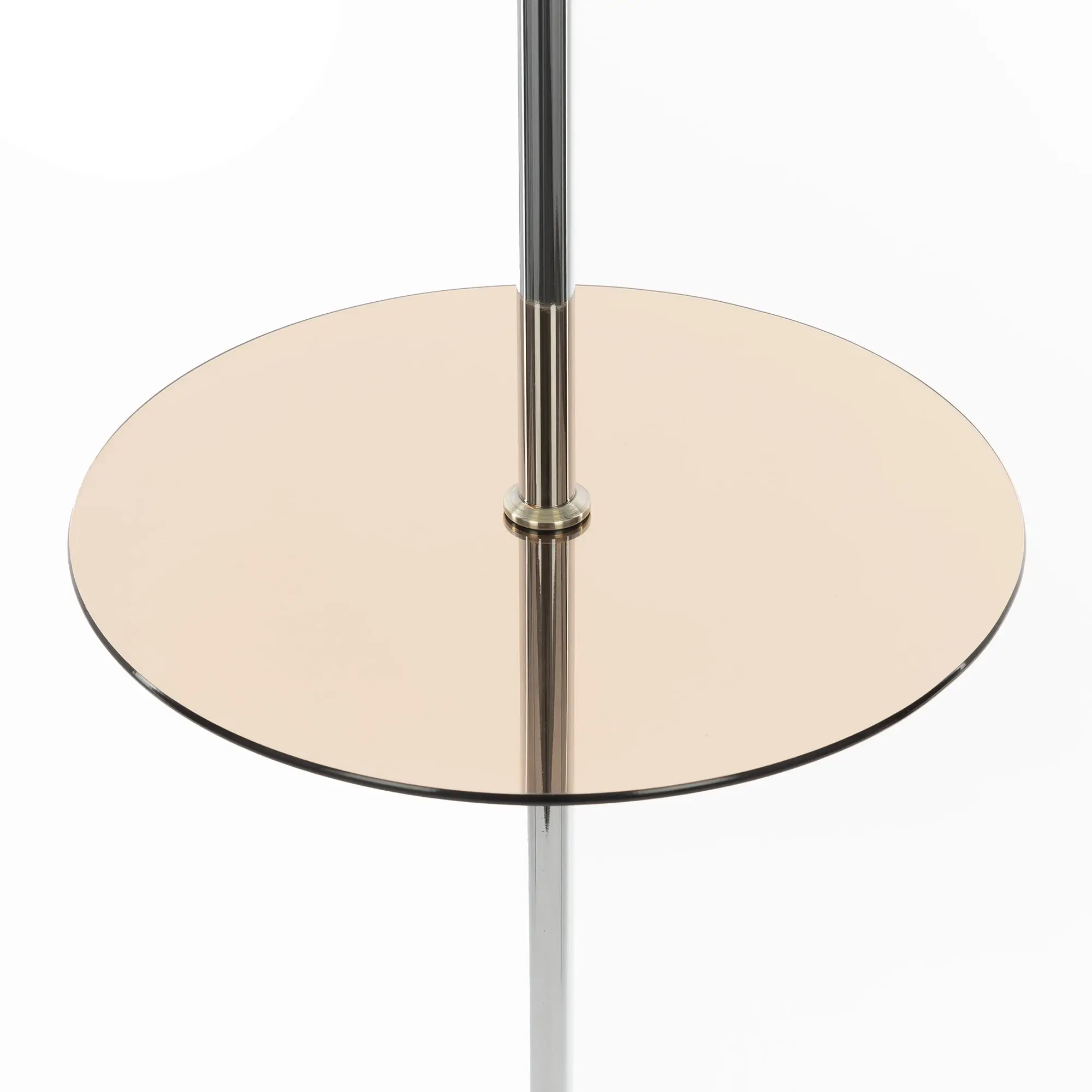 Стройный торшер со столиком Citilux Линц CL402973T выполнен в стиле современной классики. Основание металлическое с глянцевым хромированным покрытием. Тканевый абажур из плиссированной полупрозрачной органзы кремового цвета декорирован изящной тесьмой. Удобный круглый столик изготовлен из закалённого тонированного стекла.