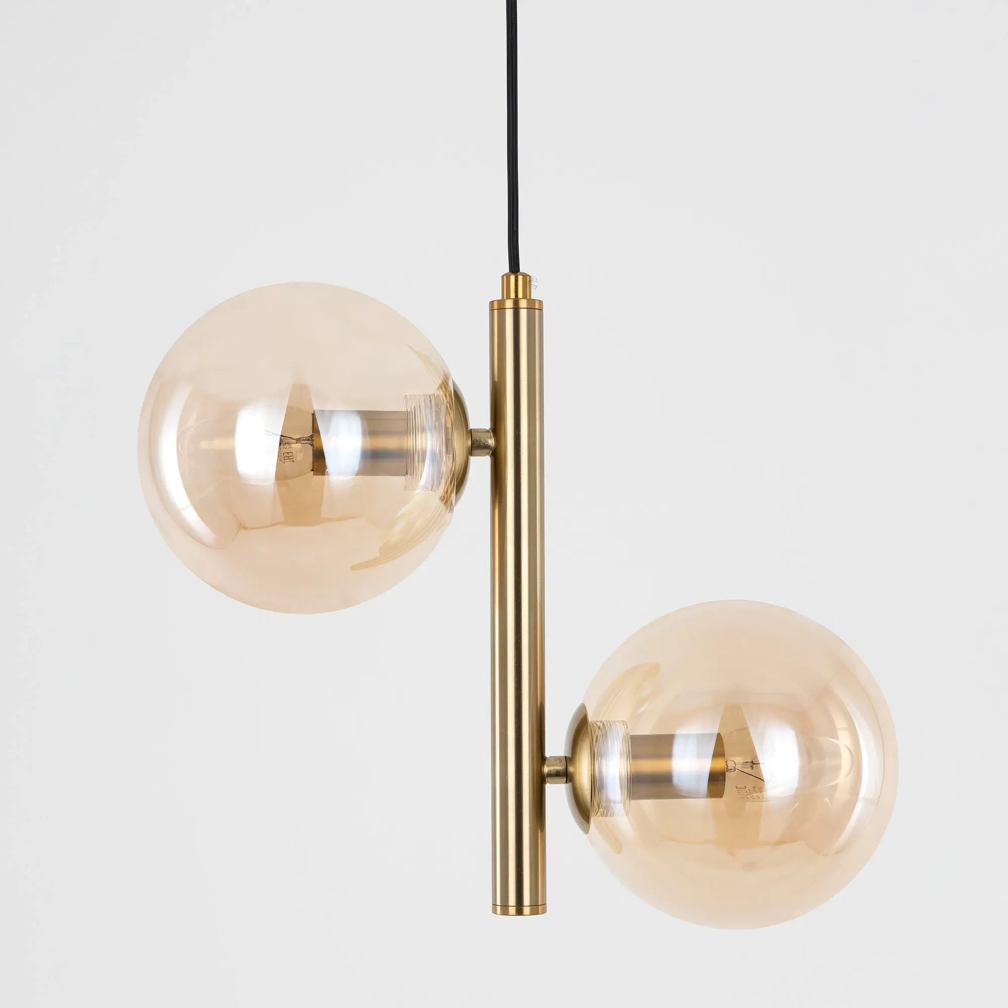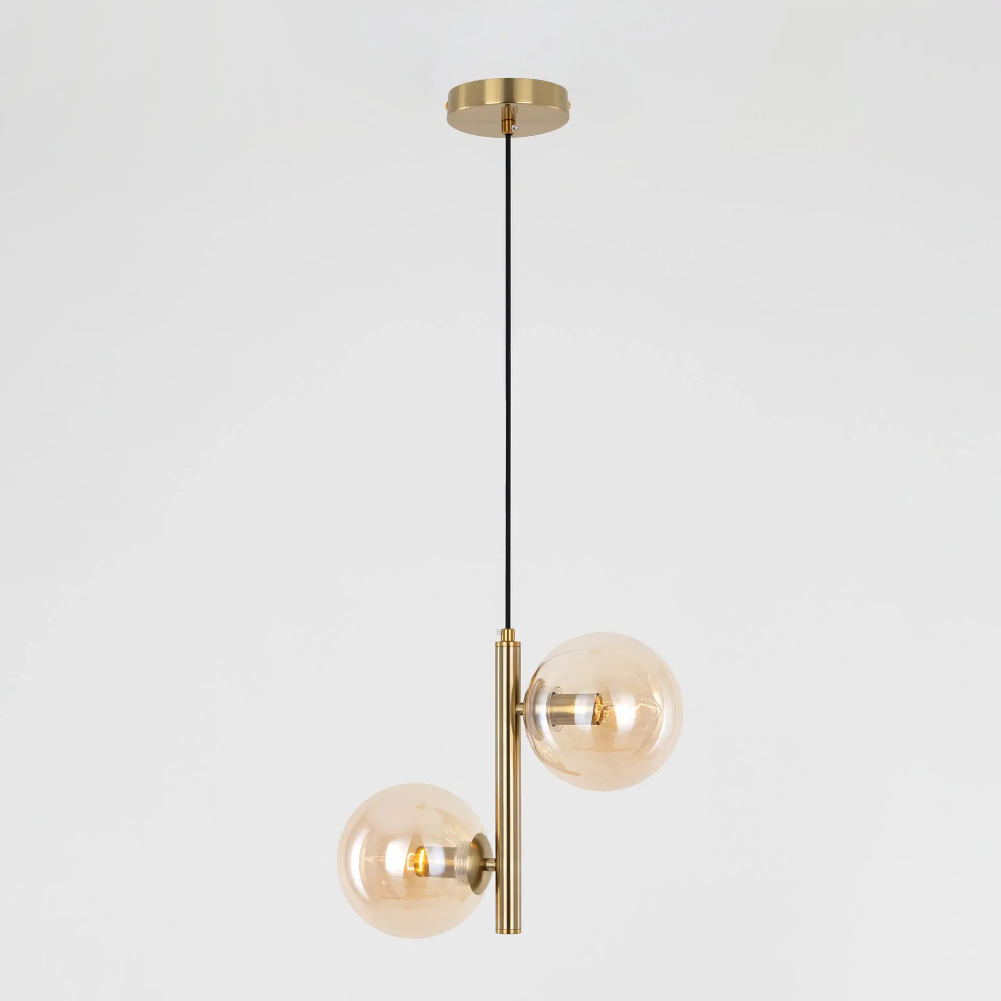 Стильный подвесной светильник Citilux Лорен CL146023 для модных интерьеров, оформленных в стиле модерн или лофт. Корпус металлический, цвет бронза. Плафоны в форме шара, изготовлены из прозрачного стекла, светло-янтарного оттенка. В изделии используются лампы с цоколем Е14, форма колбы свеча, максимальной мощностью для ламп накаливания 40 Вт. Высота легко регулируется при установке, в диапазоне от 37см до 1,5м. Подходит для всех типов потолков, в том числе натяжных, тип крепления – планка. Подвесной светильник Citilux Лорен CL146023 с двумя асимметрично расположенными плафонами, прекрасный вариант освещения современных квартир и уютных загородных домов.,