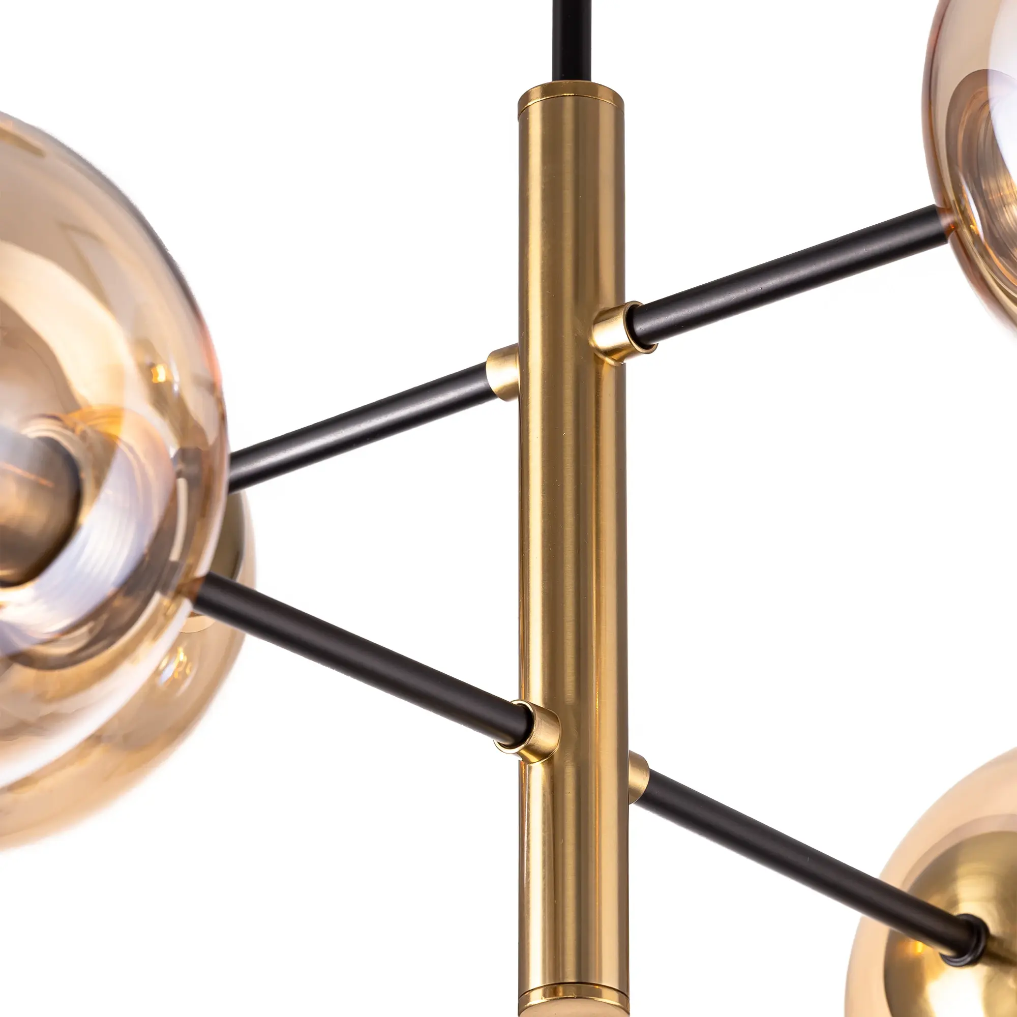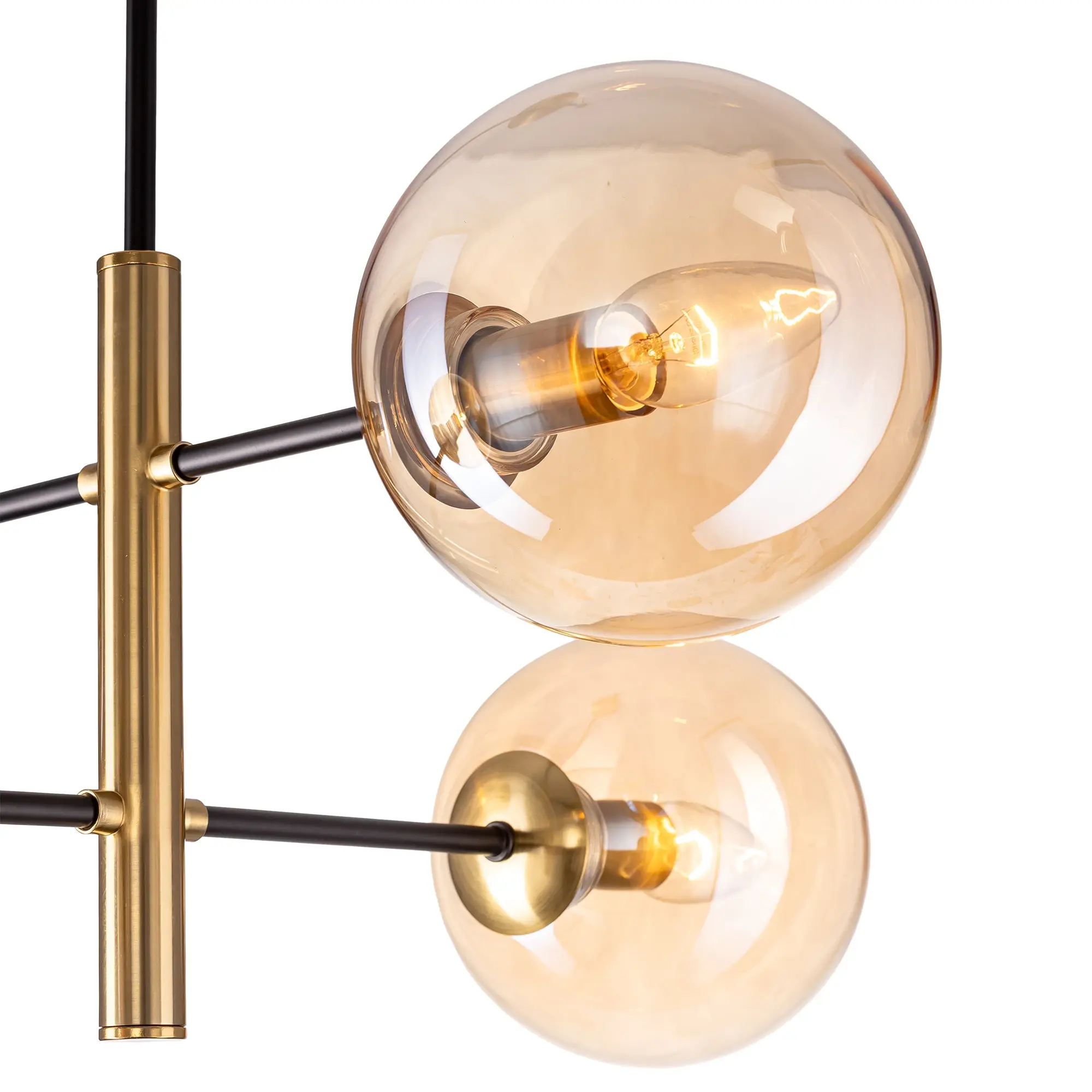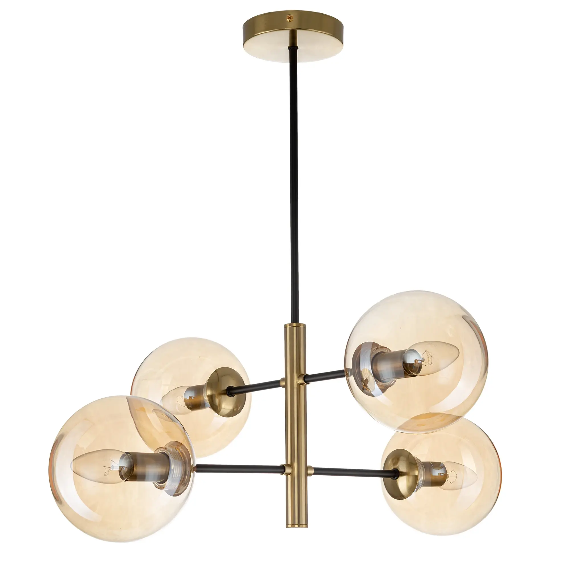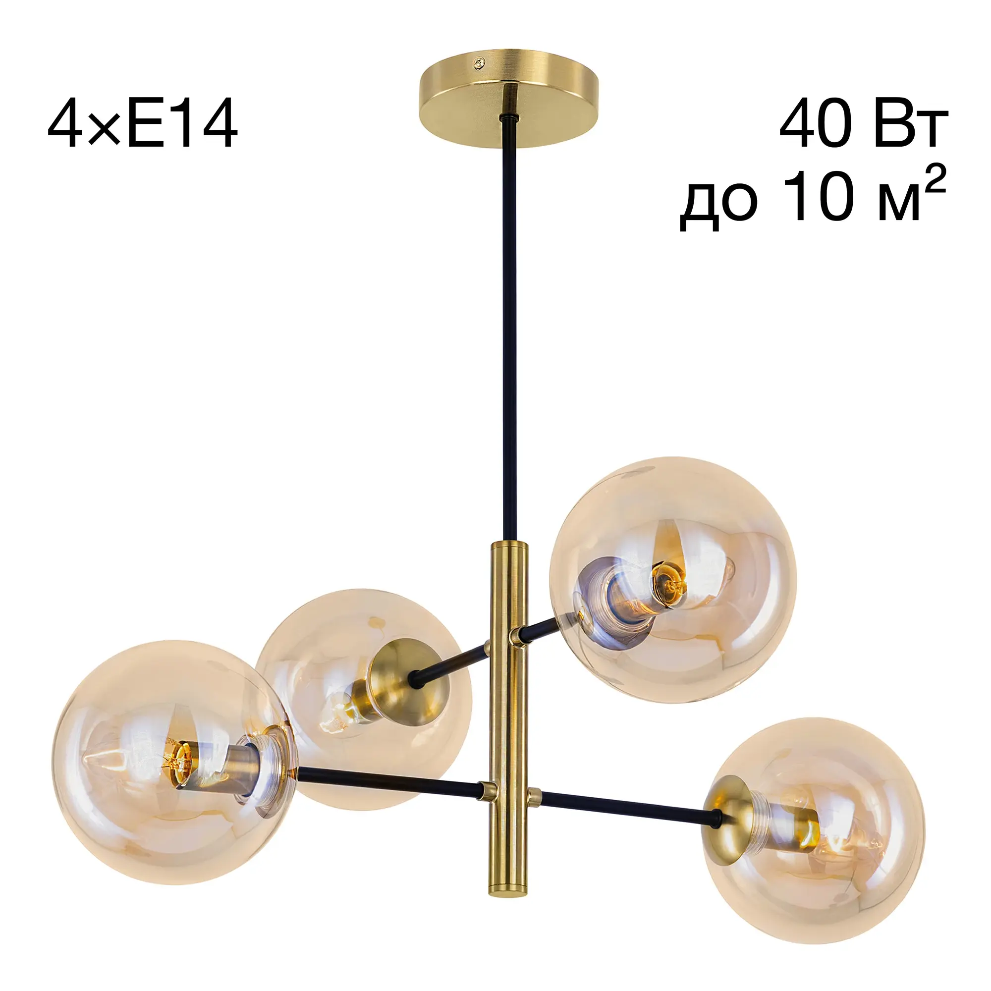 Стильная люстра Citilux Лорен CL146243 для модных интерьеров, оформленных в стиле модерн или лофт. Корпус светильника металлический, цвет бронза с декоративными чёрными элементами. Основание круглое, рожки-штанги расположены параллельно потолку. Плафоны в форме шара, изготовлены из прозрачного стекла светло-янтарного оттенка. В изделии используются лампы с цоколем Е14, форма колбы свеча, максимальной мощностью для ламп накаливания 40 Вт. Диаметр светильника 62см. Подходит для всех типов потолков, в том числе натяжных, тип крепления – планка. Четырёхрожковая люстра на штанге Citilux Лорен CL146243 прекрасный вариант атмосферного освещения современных квартир и уютных загородных домов