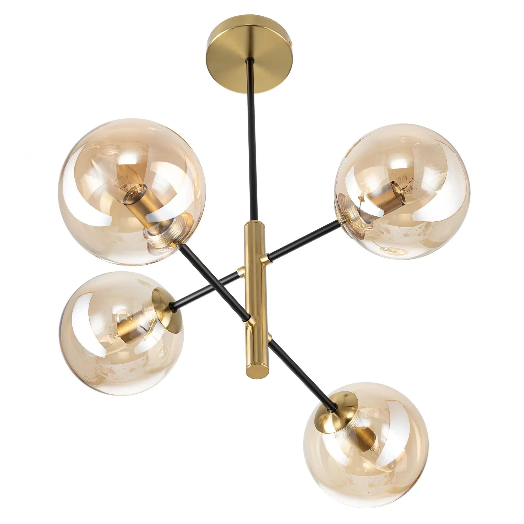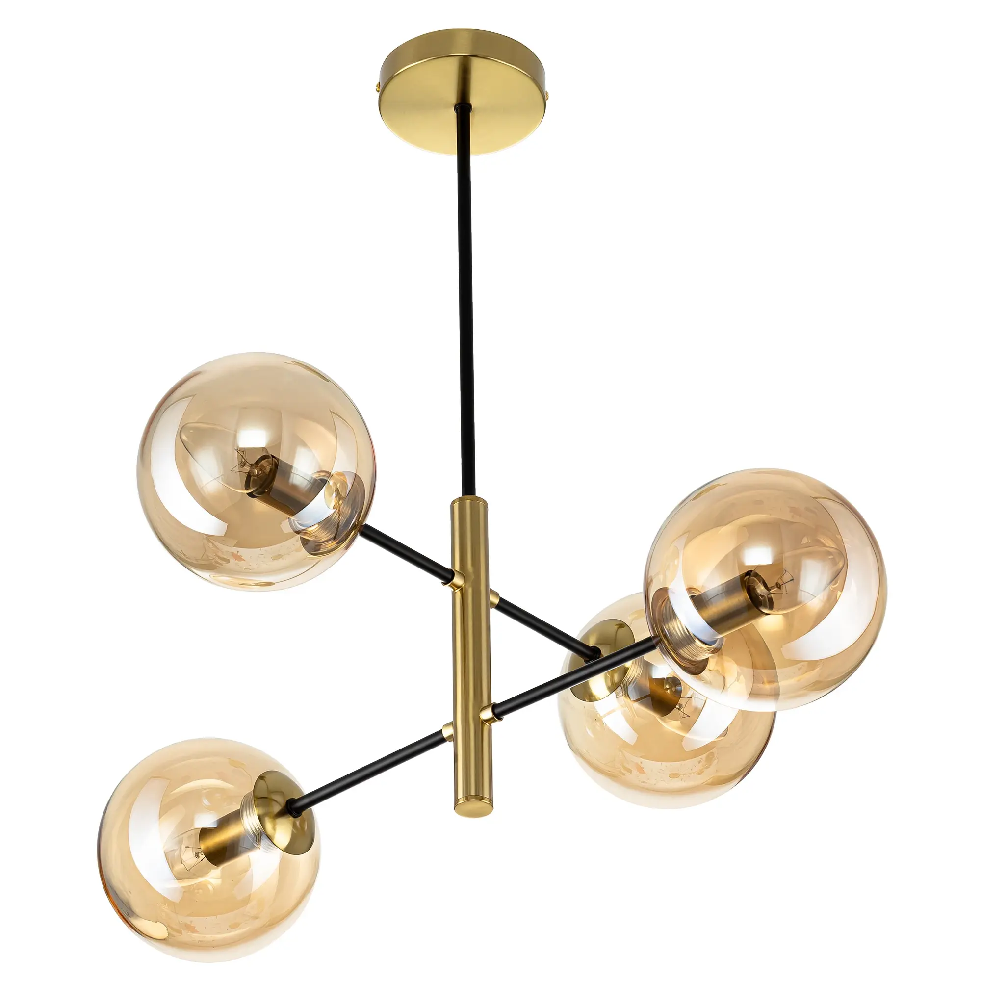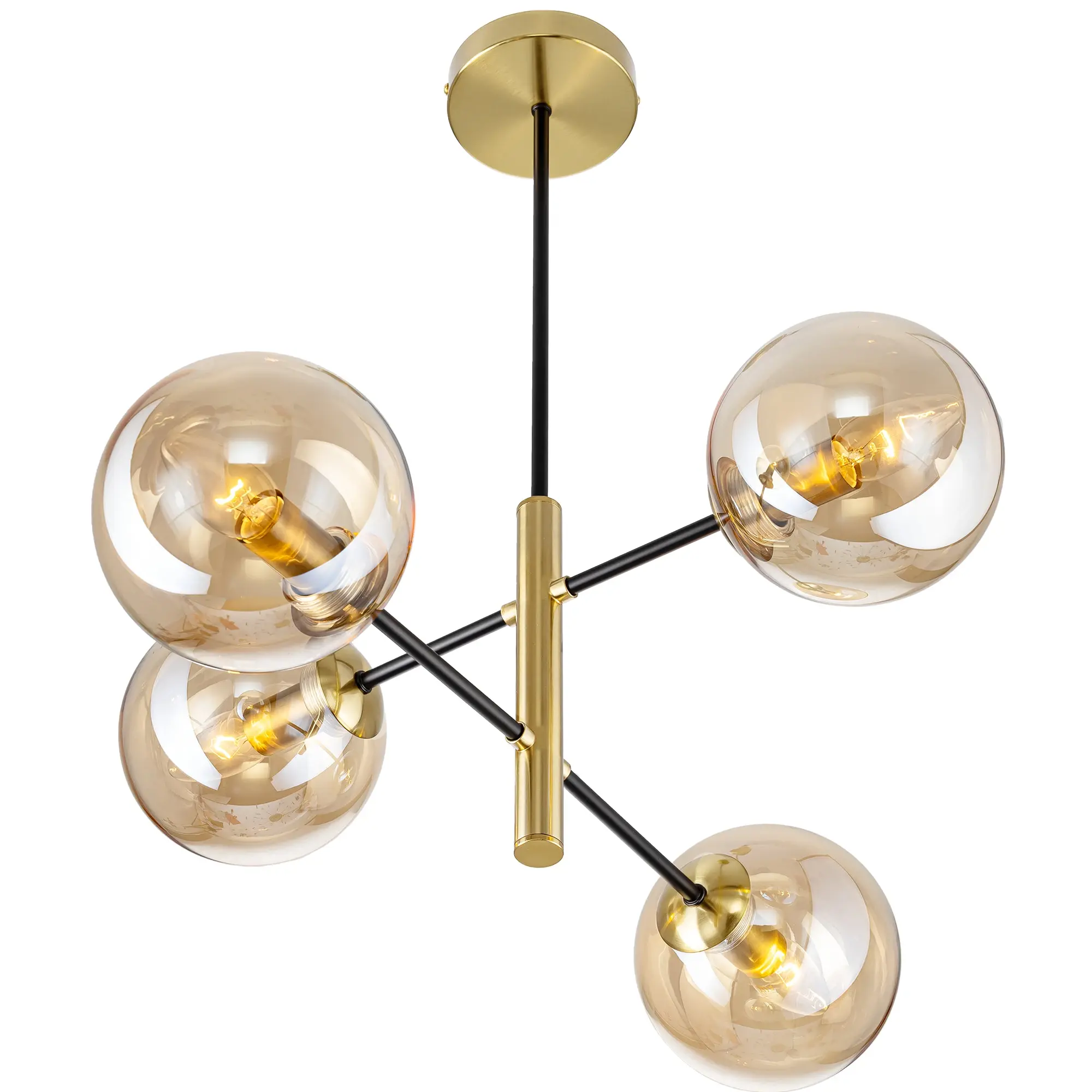 Стильная люстра Citilux Лорен CL146243 для модных интерьеров, оформленных в стиле модерн или лофт. Корпус светильника металлический, цвет бронза с декоративными чёрными элементами. Основание круглое, рожки-штанги расположены параллельно потолку. Плафоны в форме шара, изготовлены из прозрачного стекла светло-янтарного оттенка. В изделии используются лампы с цоколем Е14, форма колбы свеча, максимальной мощностью для ламп накаливания 40 Вт. Диаметр светильника 62см, высота устанавливается перед монтажом, два варианта - 42см или 60см. Подходит для всех типов потолков, в том числе натяжных, тип крепления – планка. Четырёхрожковая люстра на штанге Citilux Лорен CL146243 прекрасный вариант атмосферного освещения современных квартир и уютных загородных домов