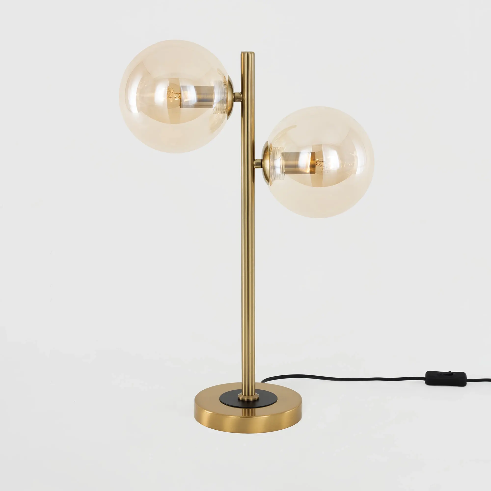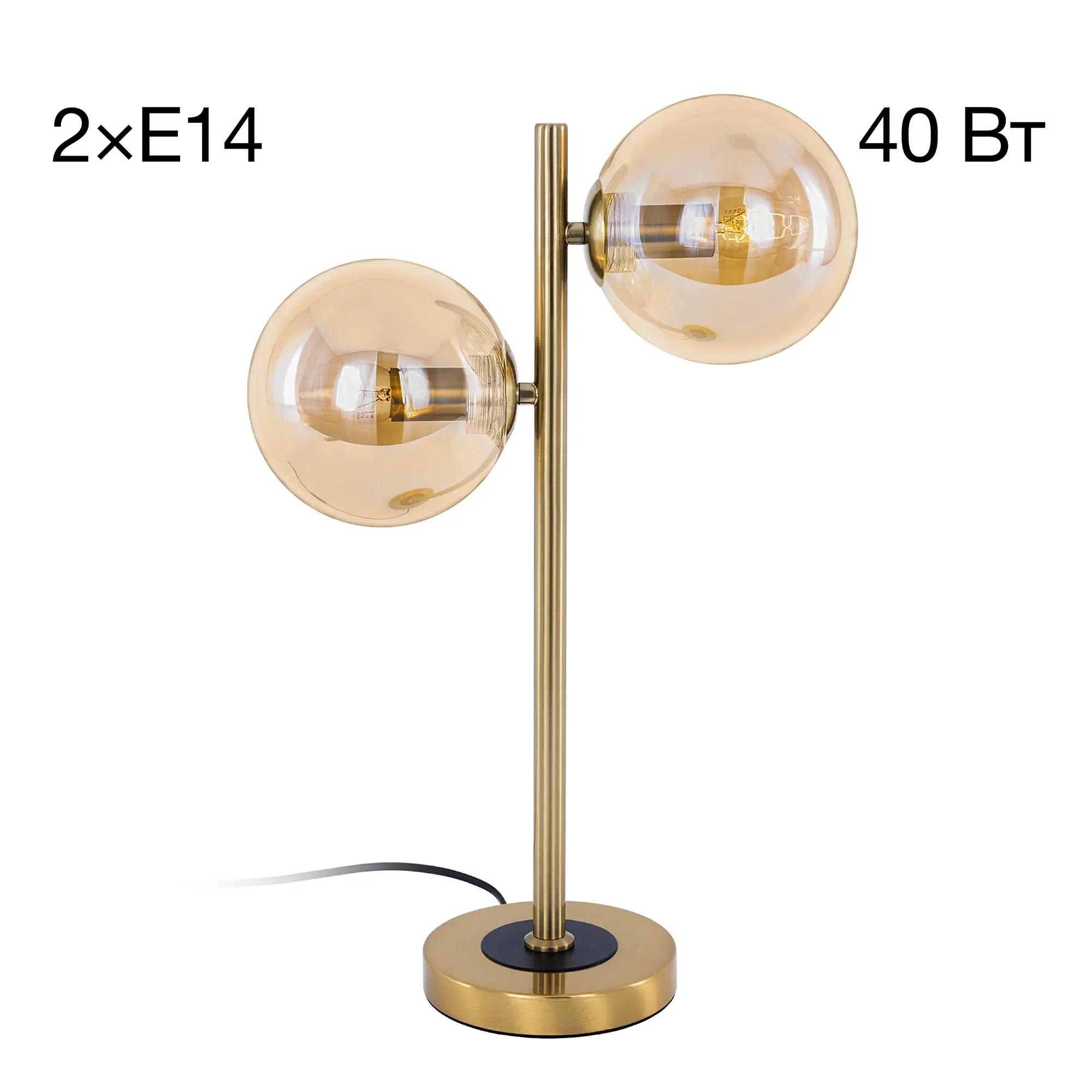 Настольный светильник Citilux Лорен CL146823 выполнен в современном стиле. Корпус металлический, цвет бронза. Плафоны в форме шара, изготовлены из прозрачного стекла светло-янтарного оттенка. В изделии используются лампы с цоколем Е14, форма колбы свеча, максимальной мощностью для ламп накаливания 40 Вт (в комплект не входят, приобретаются отдельно). Высота светильника 52см, длина сетевого шнура 2м, выключатель расположен на проводе, на расстоянии 20см от основания. Настольная лампа Citilux Лорен CL146823 прекрасный вариант атмосферного освещения интерьеров, оформленных в теплых тонах.,