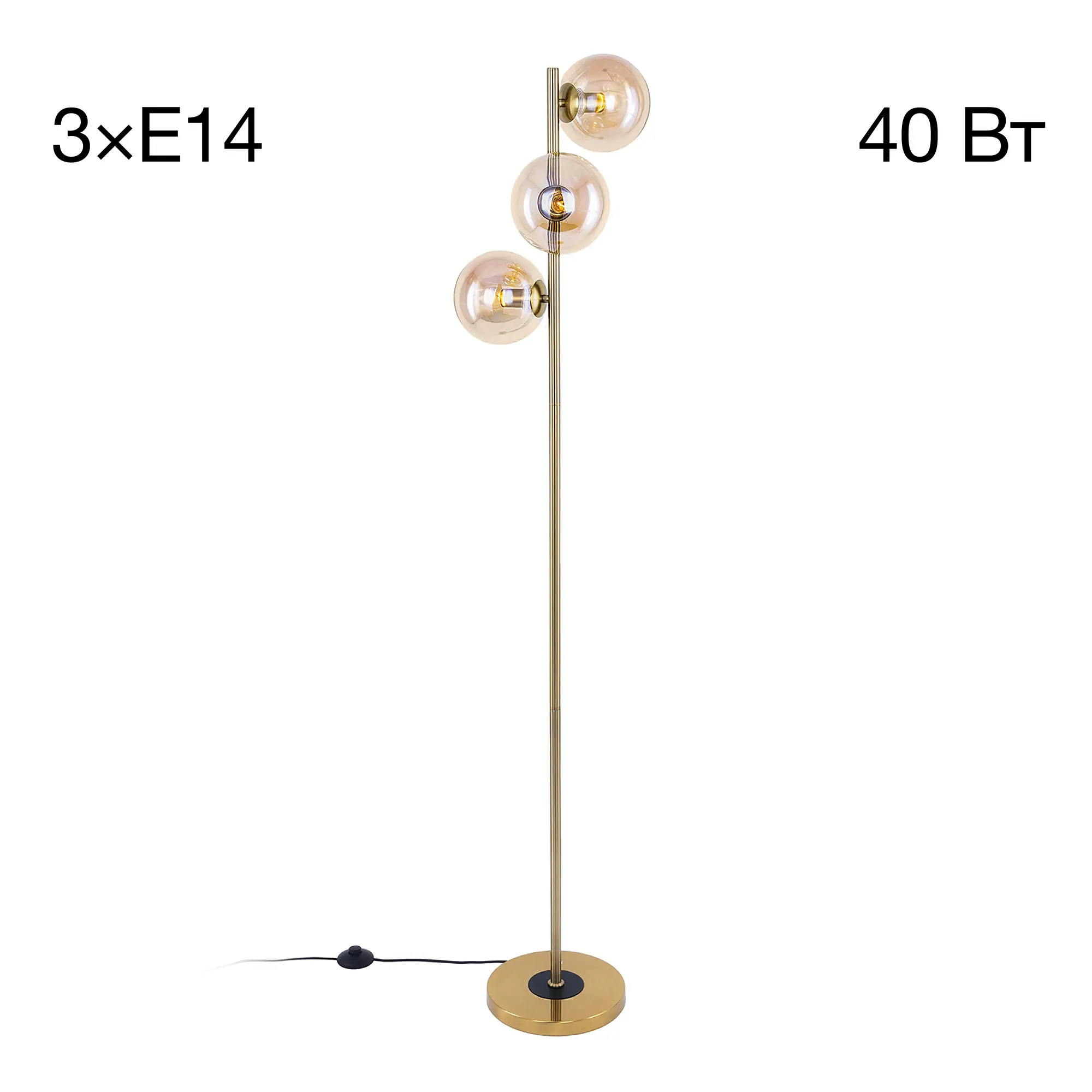 Напольный светильник Citilux Лорен CL146933 выполнен в современном стиле. Корпус металлический, цвет бронза. Плафоны в форме шара, изготовлены из прозрачного стекла светло-янтарного оттенка. В изделии используются лампы с цоколем Е14, форма колбы свеча, максимальной мощностью для ламп накаливания 40 Вт (в комплект не входят, приобретаются отдельно). Высота светильника 1,62м, диаметр 34см, длина сетевого шнура 2м, выключатель напольный. Торшер Citilux Лорен CL146933 прекрасный вариант атмосферного освещения интерьеров, оформленных в теплых тонах.,