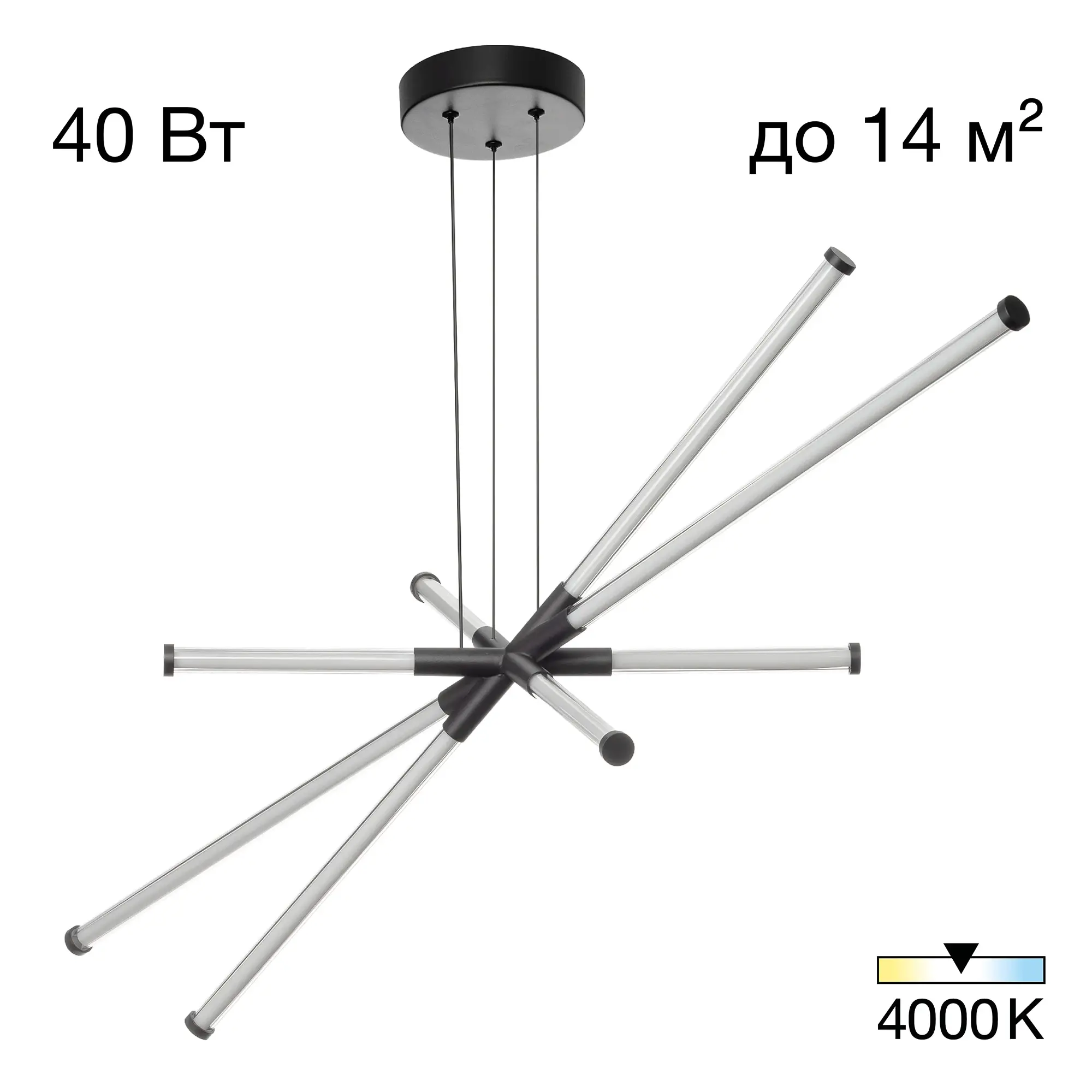 Утончённая подвесная люстра Citilux LUCIA CL217181 выполнена в современном стиле. Корпус металлический, цвет чёрный матовый. Светодиодные модули-штанги изготовлены из глянцевых прозрачных акриловых трубок с белым силиконовым сердечником. Модель выделяется оригинальным дизайном и мягким рассеянным светом.