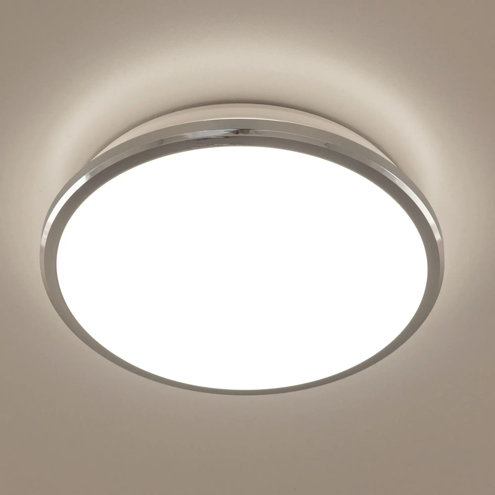 Диаметр 28 см, Высота 6.5 см, Светодиодный светильник, Уровень мощности 100-50-10% управляется выключателем, Влагозащита IP54
