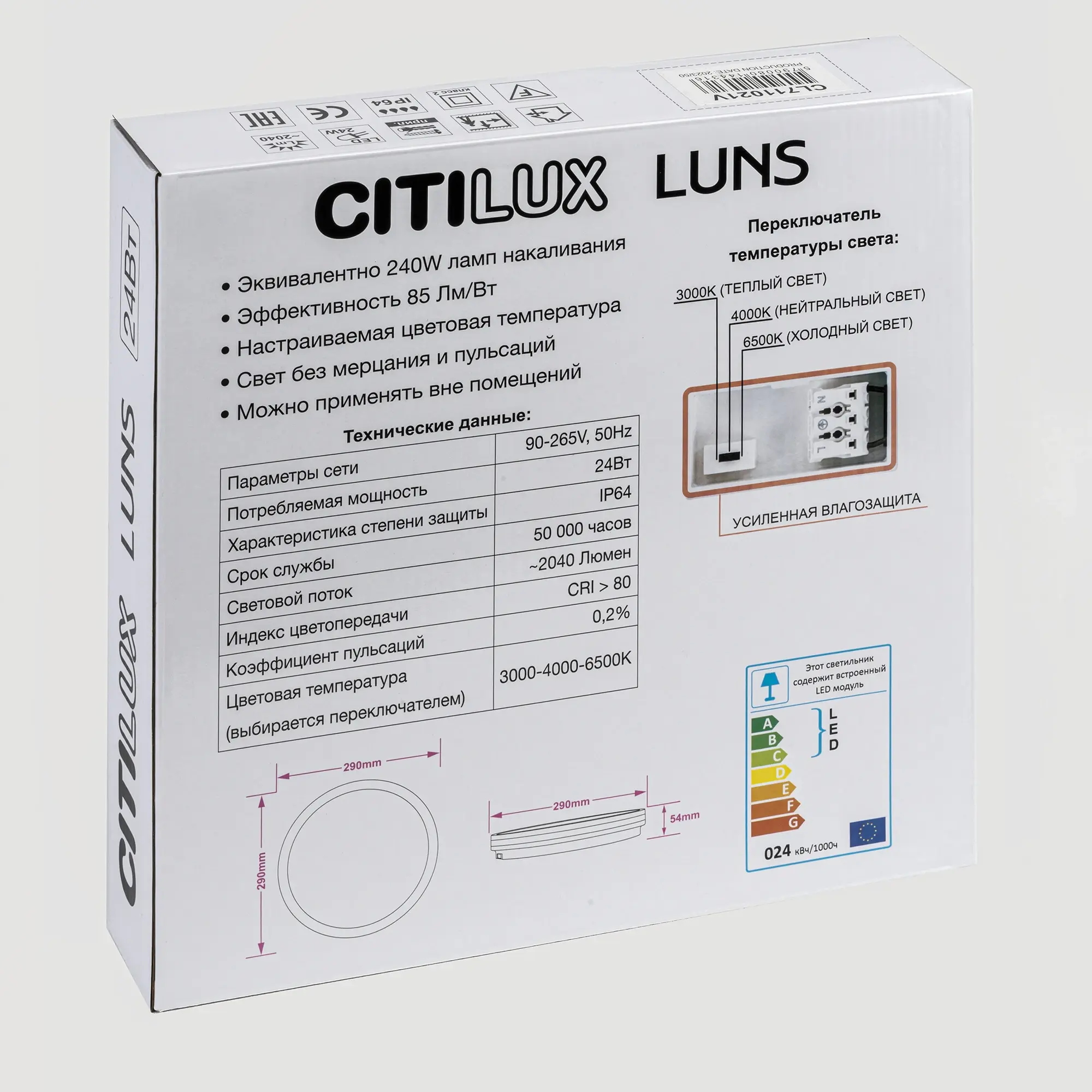 Светильник-таблетка Ситилюкс LUNS CL711020V ярко осветит ванную комнату, туалет, совмещённый санузел и другие помещения с высокой влажностью. Отлично подойдёт для уличного освещения.