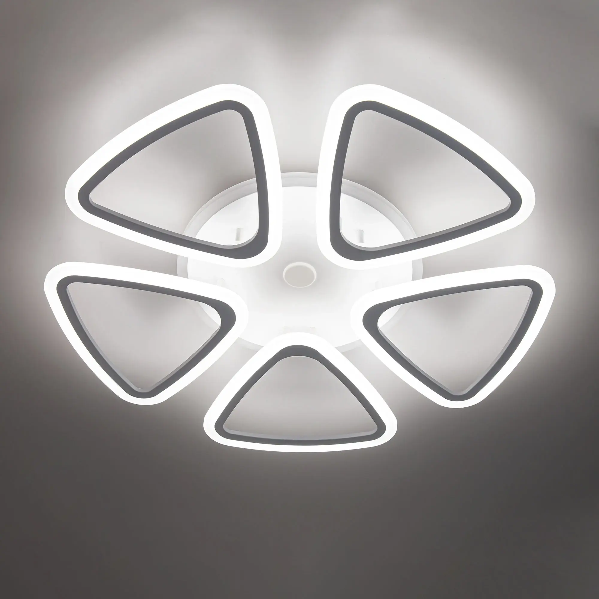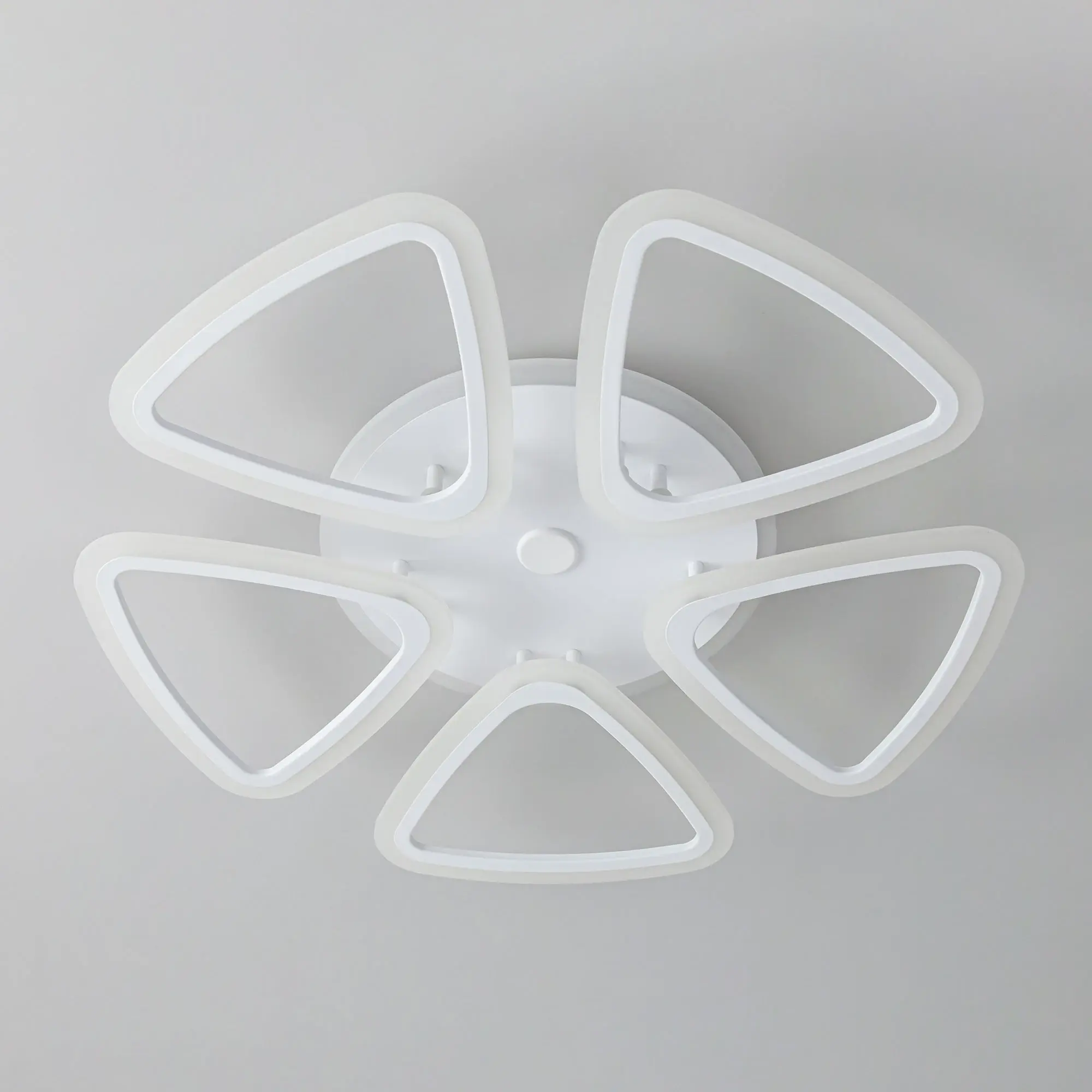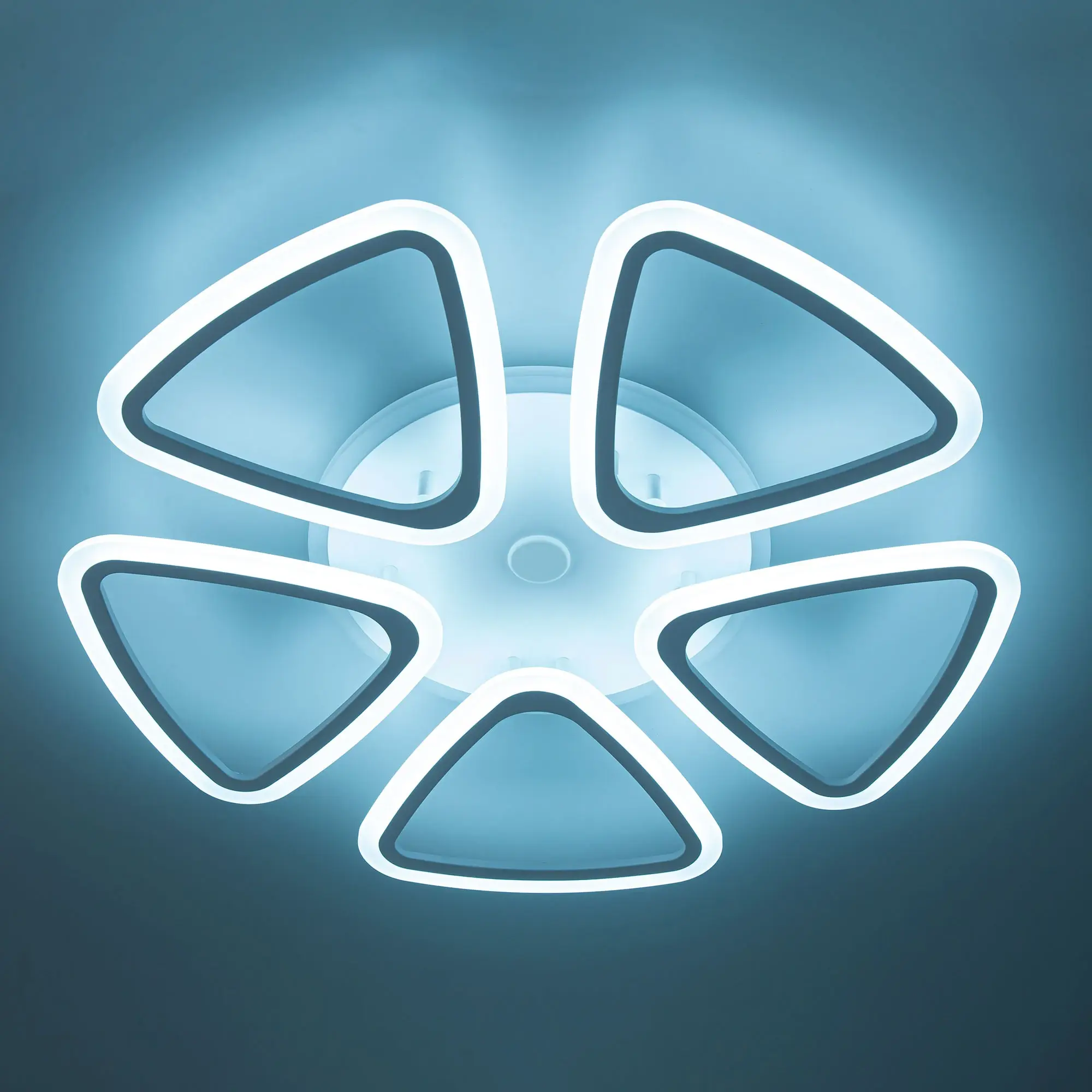 Светодиодная потолочная люстра Citilux Мальта Смарт CL234A250E RGB с голосовым управлением, яркая модель современных УМНЫХ светильников экосистемы Citilux SMART . Светильник белый матовый, с круглым основанием. Пять светодиодных модулей плафонов, формирующих внешний вид люстры, треугольной формы. Корпус плафонов белого цвета изготовлен из металла, рассеиватель белый матовый из оптического полимера. Изделие подходит для всех типов потолков, в том числе натяжных. Люстрой можно управлять: из приложения на смартфоне по Wi-Fi при наличии интернета, с помощью голосовых помощников Алиса и Маруся, есть возможность запуска настроенных сценариев с помощью Сири, а также пультом дистанционного управления и с настенного выключателя. Изделие оснащено мощными светодиодами, с возможностью плавной регулировки яркости от 100 до 10%. Цветовая температура регулируется в диапазоне от 3000К до 5500К, позволяя настроить любые оттенки теплого, нейтрального или холодного света. В основании светильника установлена независимая цветная RGB подсветка. Мощность люстры 60Вт, световой поток 5800Лм. Пульт ДУ в комплекте, тип батареек ААА (батарейками не комплектуется).