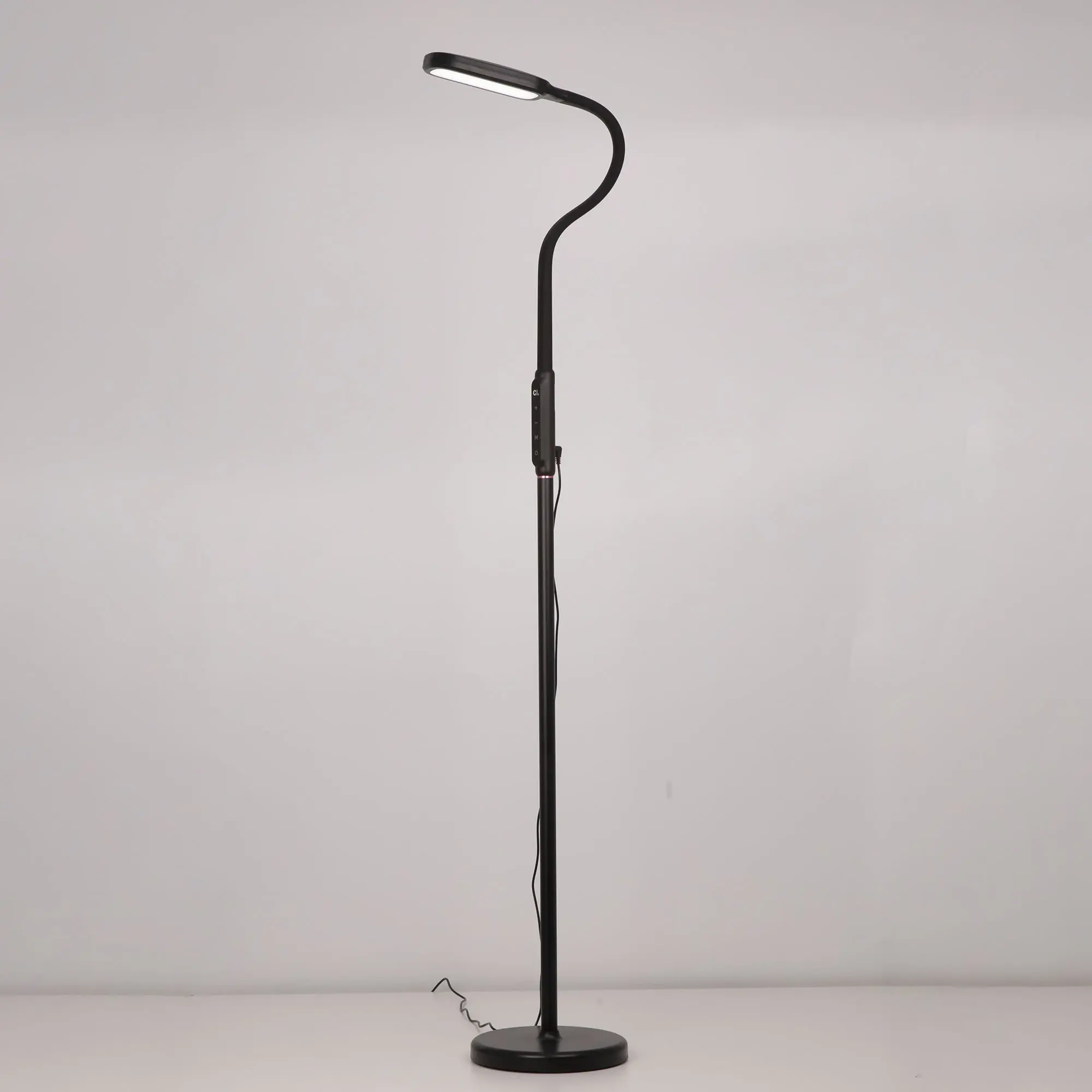 Светодиодный напольный торшер Citilux Марк CL804021 выполнен в современном стиле, цвет чёрный. Круглое основание светильника изготовлено из ударопрочного полимера. Стойка металлическая, состоит из трёх частей, которые соединяются между собой с помощью резьбового соединения. Две нижние части по 40 см. Верхняя часть с блоком управления, гибкой «шеей» и светодиодным модулем-плафоном. В текущей версии изготовления, торшер можно собрать в двух вариантах, «стандартный торшер» и «маленький торшер». Мощность 13Вт. Управление сенсорное, доступно: ступенчатая регулировка яркости (5 режимов), цветовой температуры – 2800 - 4000 – 5500 Кельвин (тёплый, нейтральный, холодный свет). Есть таймер выключения, с задержкой 60 минут. Торшер Citilux Марк CL804021 прекрасный вариант для освещения рабочего стола офисных работников, студентов и школьников. Подойдёт для освещения зоны отдыха, возле дивана или кресла.,