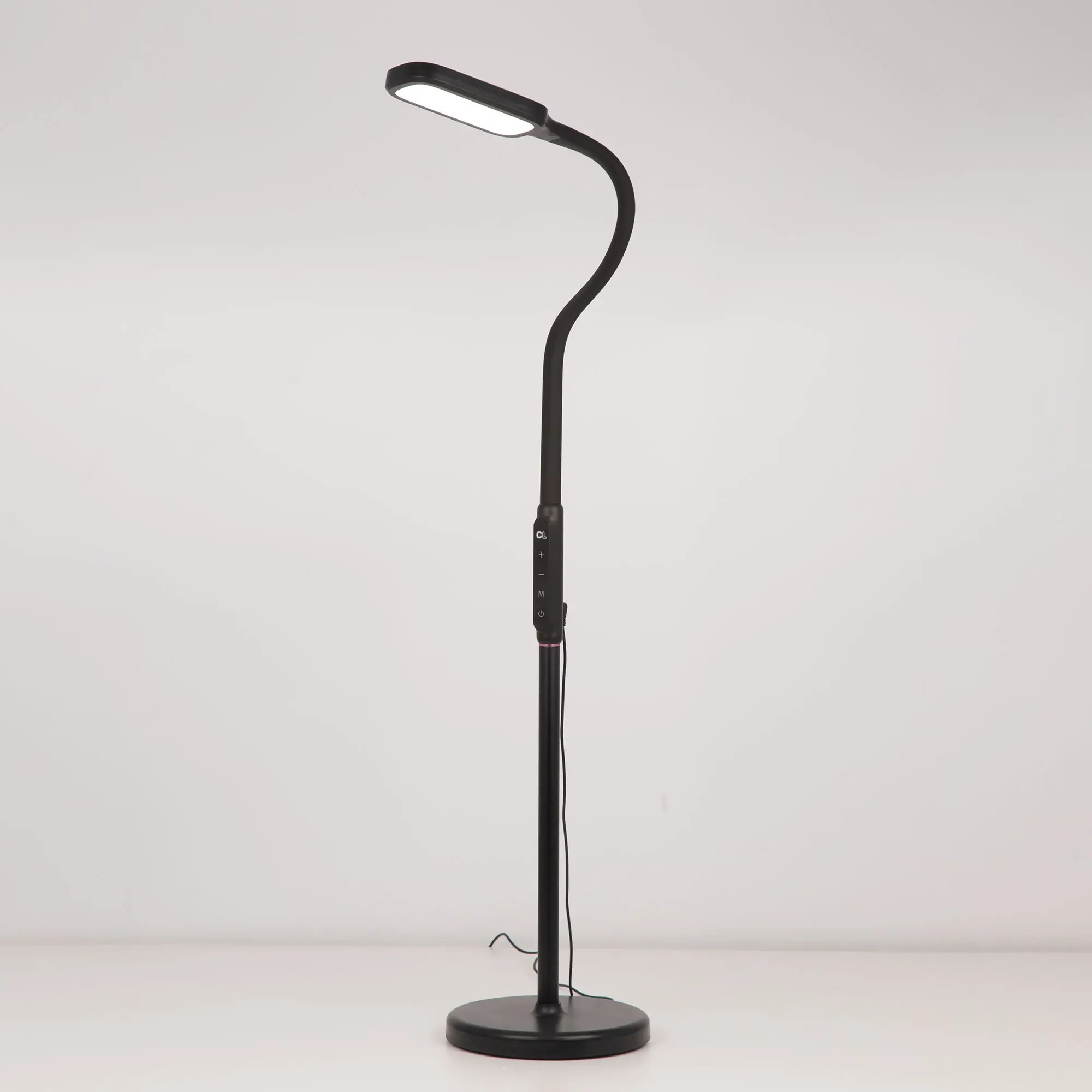 Светодиодный напольный торшер Citilux Марк CL804021 выполнен в современном стиле, цвет чёрный. Круглое основание светильника изготовлено из ударопрочного полимера. Стойка металлическая, состоит из трёх частей, которые соединяются между собой с помощью резьбового соединения. Две нижние части по 40 см. Верхняя часть с блоком управления, гибкой «шеей» и светодиодным модулем-плафоном. В текущей версии изготовления, торшер можно собрать в двух вариантах, «стандартный торшер» и «маленький торшер». Мощность 13Вт. Управление сенсорное, доступно: ступенчатая регулировка яркости (5 режимов), цветовой температуры – 2800 - 4000 – 5500 Кельвин (тёплый, нейтральный, холодный свет). Есть таймер выключения, с задержкой 60 минут. Торшер Citilux Марк CL804021 прекрасный вариант для освещения рабочего стола офисных работников, студентов и школьников. Подойдёт для освещения зоны отдыха, возле дивана или кресла.