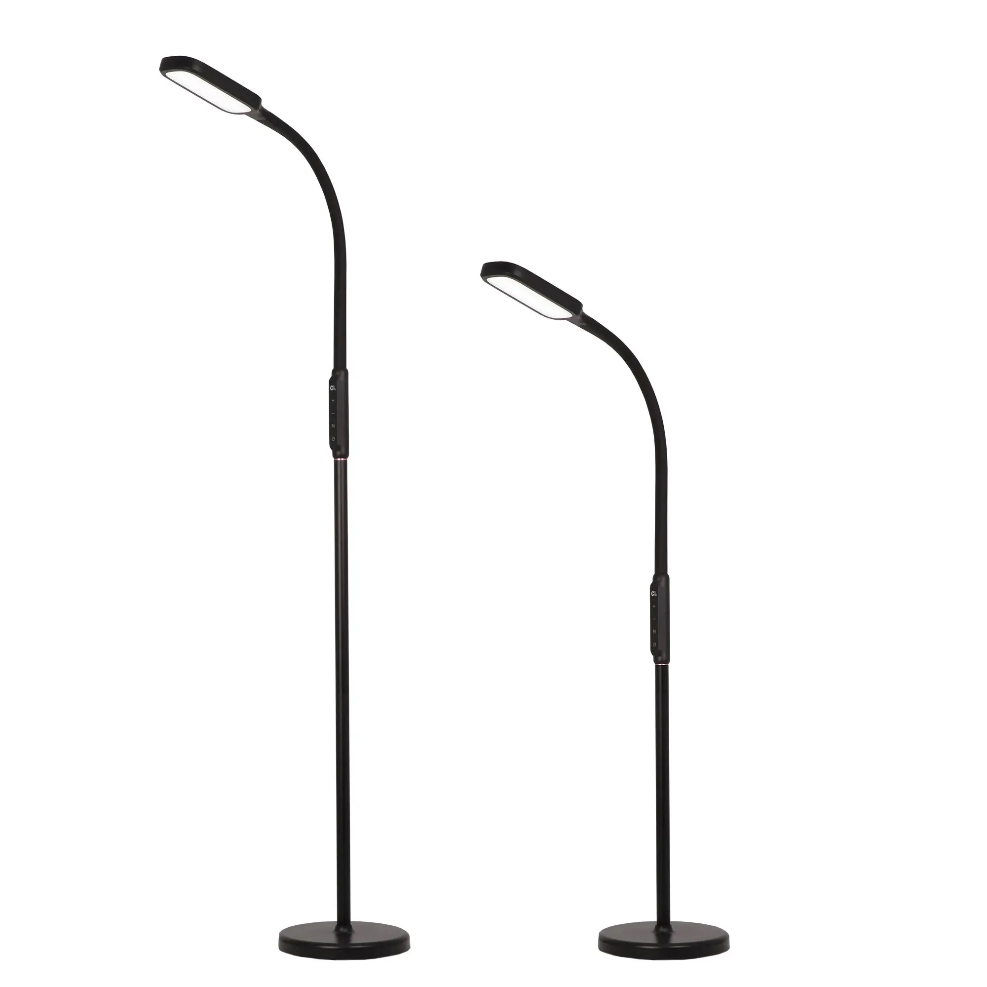 Светодиодный напольный торшер Citilux Марк CL804021 выполнен в современном стиле, цвет чёрный. Круглое основание светильника изготовлено из ударопрочного полимера. Стойка металлическая, состоит из трёх частей, которые соединяются между собой с помощью резьбового соединения. Две нижние части по 40 см. Верхняя часть с блоком управления, гибкой «шеей» и светодиодным модулем-плафоном. В текущей версии изготовления, торшер можно собрать в двух вариантах, «стандартный торшер» и «маленький торшер». Мощность 13Вт. Управление сенсорное, доступно: ступенчатая регулировка яркости (5 режимов), цветовой температуры – 2800 - 4000 – 5500 Кельвин (тёплый, нейтральный, холодный свет). Есть таймер выключения, с задержкой 60 минут. Торшер Citilux Марк CL804021 прекрасный вариант для освещения рабочего стола офисных работников, студентов и школьников. Подойдёт для освещения зоны отдыха, возле дивана или кресла,