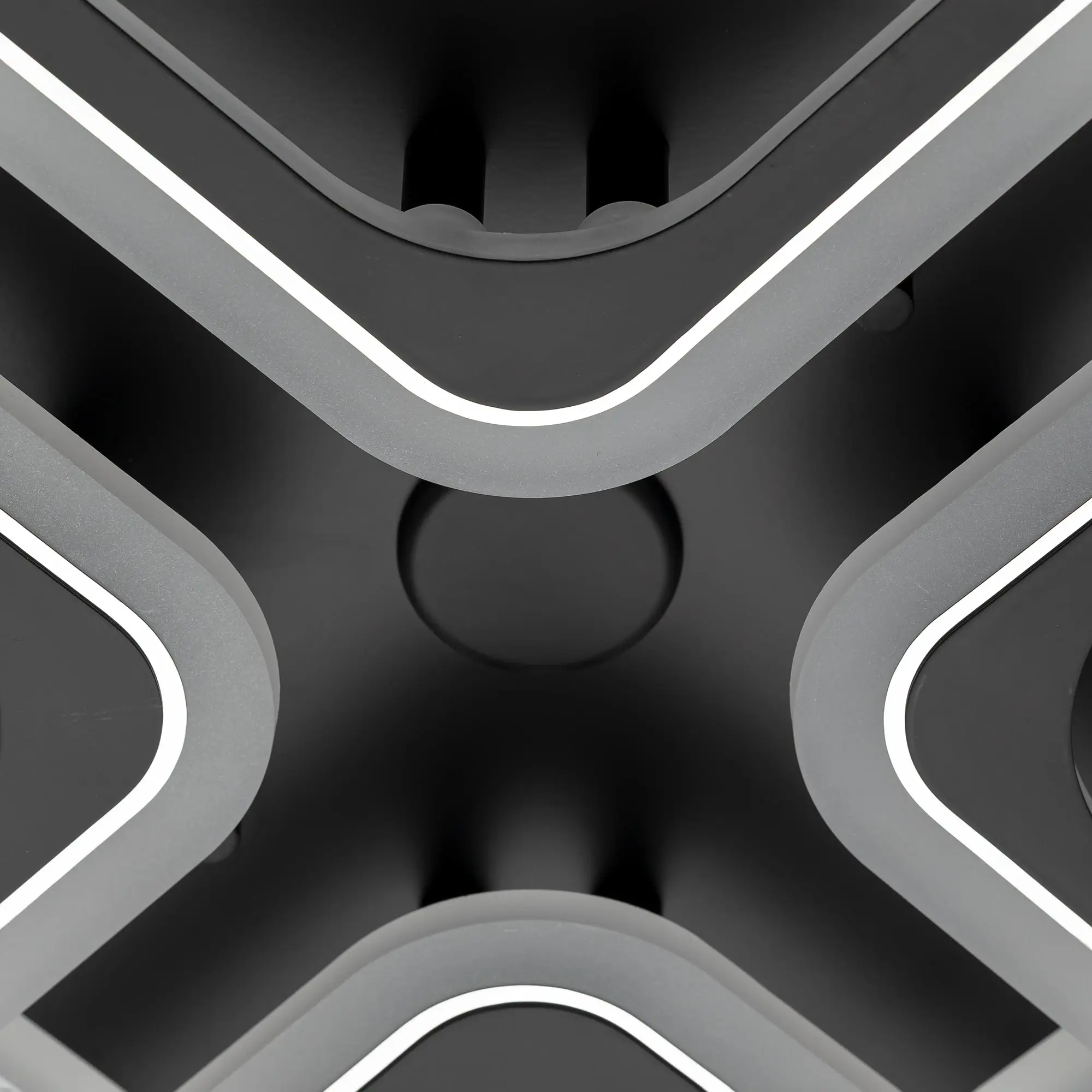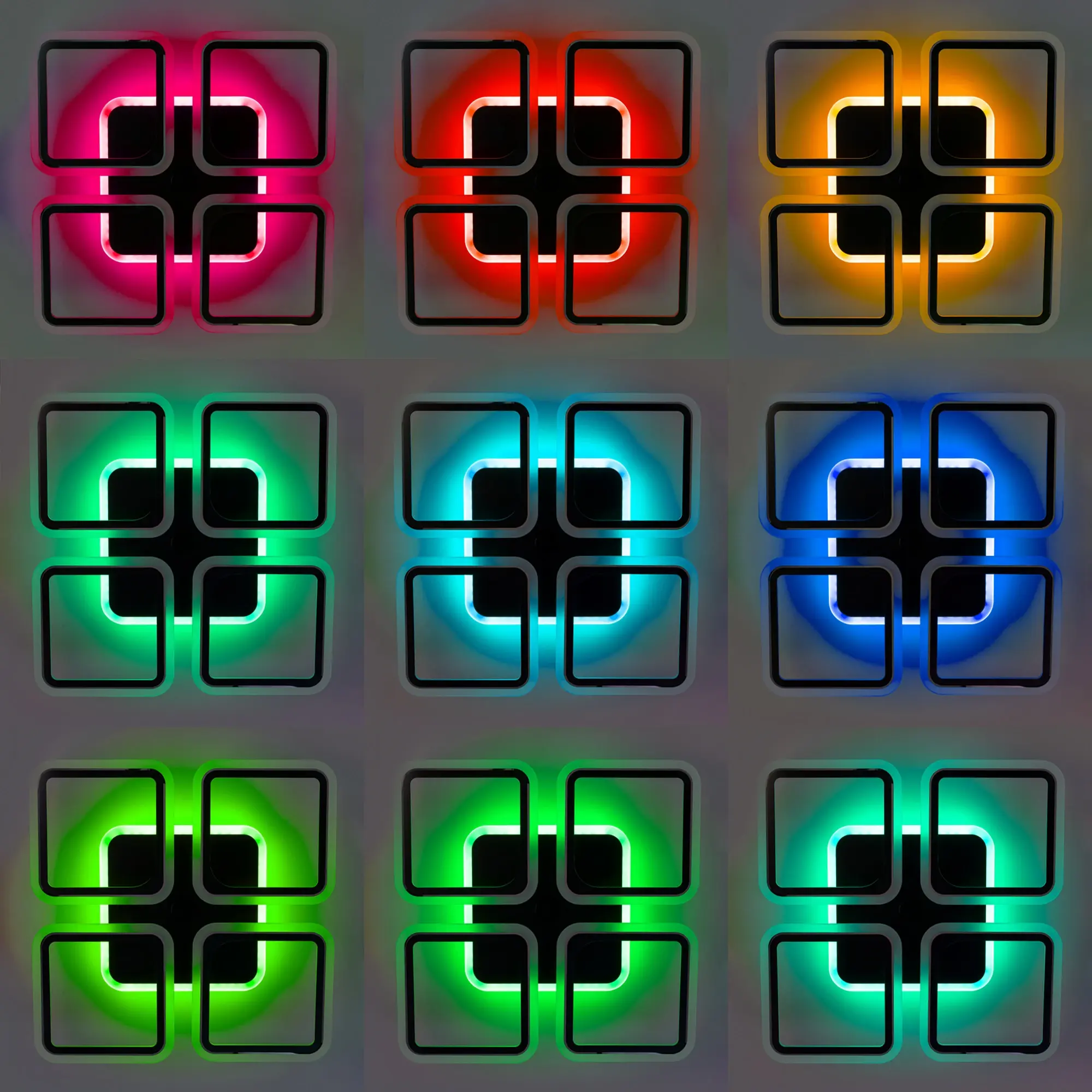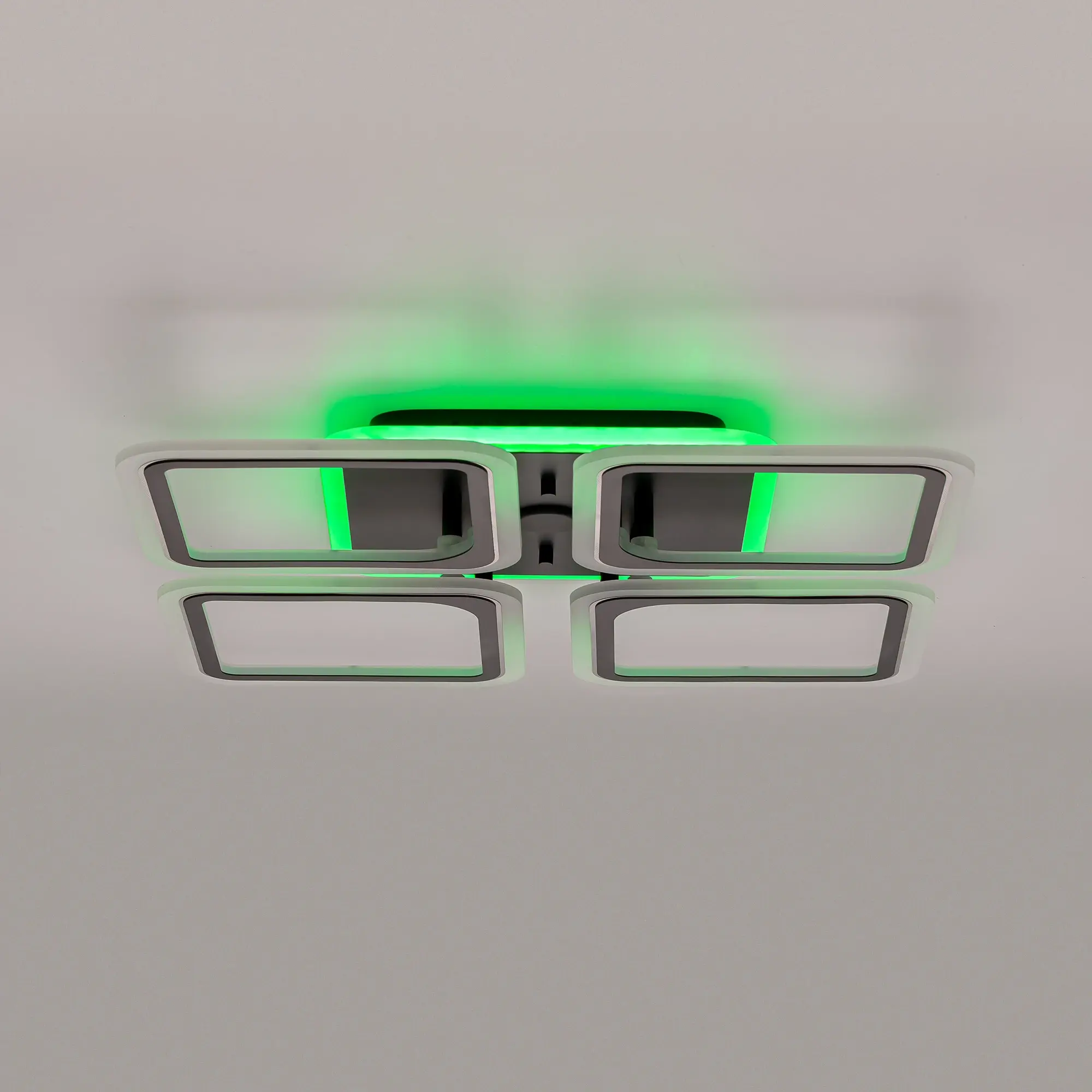 Изделие оснащено мощными светодиодами, с возможностью плавной регулировки яркости от 100% до 10%. Цветовая температура регулируется в диапазоне от 3000К до 5500К, позволяя настроить любые оттенки теплого, нейтрального или холодного света. В основании светильника установлена независимая цветная RGB подсветка. Мощность люстры 65Вт, 5900Лм. Пульт ДУ в комплекте, тип батареек ААА (батарейками не комплектуется).