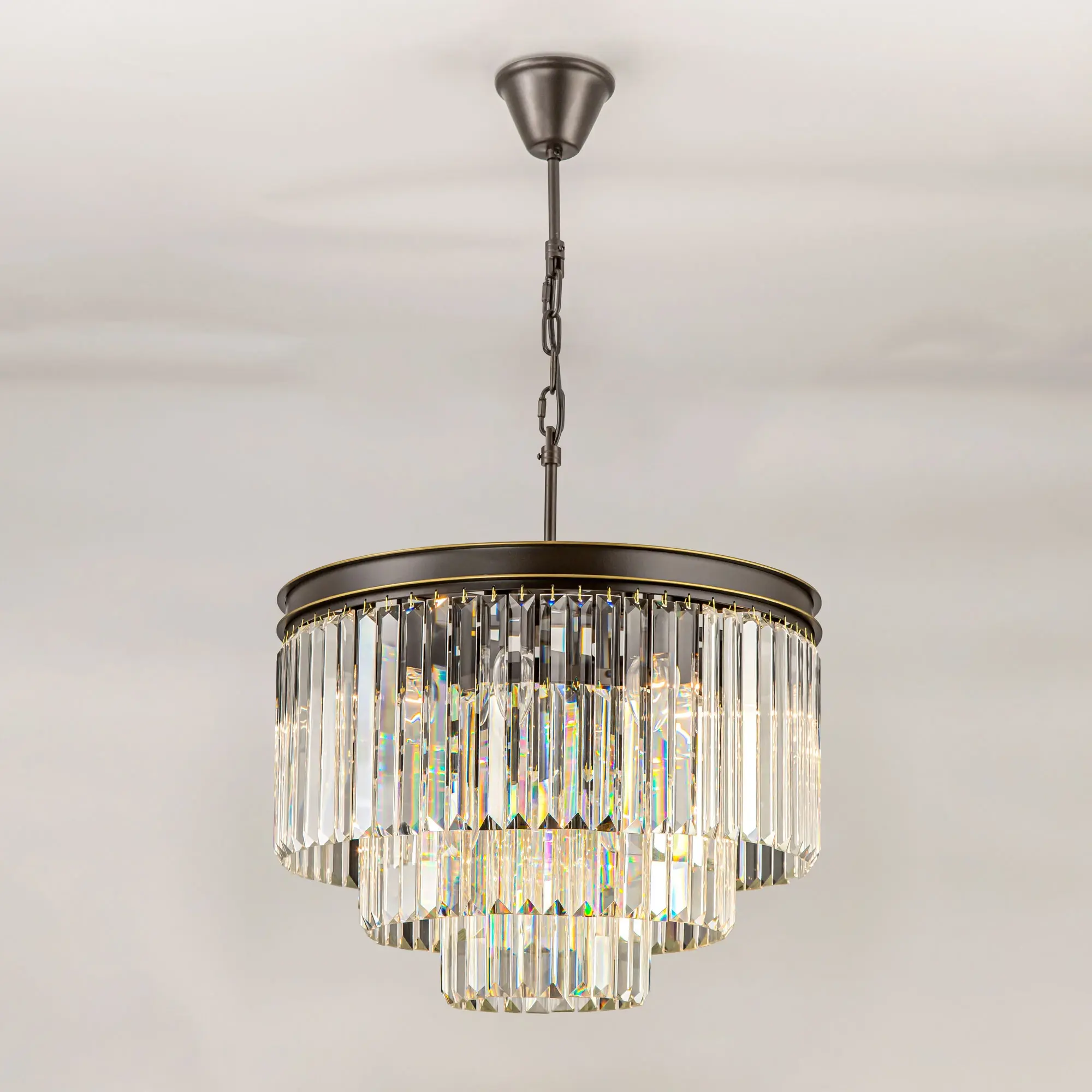 Стильная подвесная люстра Citilux Мартин CL332131 с шикарными хрустальными подвесками, расположенными каскадом в три яруса. Основание модели круглой формы выполнено из металла солидной толщины, окрашенного в темный коричневый цвет. Казалось бы, незначительная деталь - золотистая окантовка наружных колец, как последний штрих мастера, придает светильнику завершенный облик. Тип крепления – крючок. Высоту изделия можно отрегулировать в диапазоне от 1,39 метра до 55 см, для использования в помещениях как с высокими, так и с низкими потолками. В люстре 12 ламп с цоколем Е14 и максимальной мощностью для ламп накаливания 60Вт. Суммарная мощность 720Вт, площадь освещения до 31 кв. метра. Светодиодные лампы можно использовать более яркие. Светильник отлично подойдет гостиную, столовую и спальню, оформленную в классическом или современном стиле, в том числе в стиле лофт.,