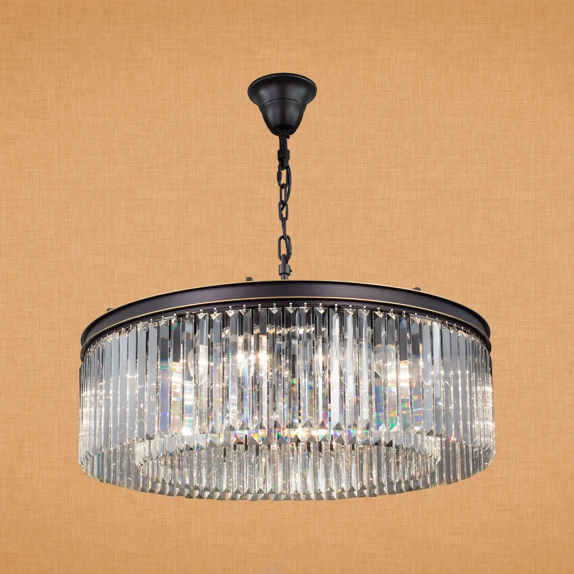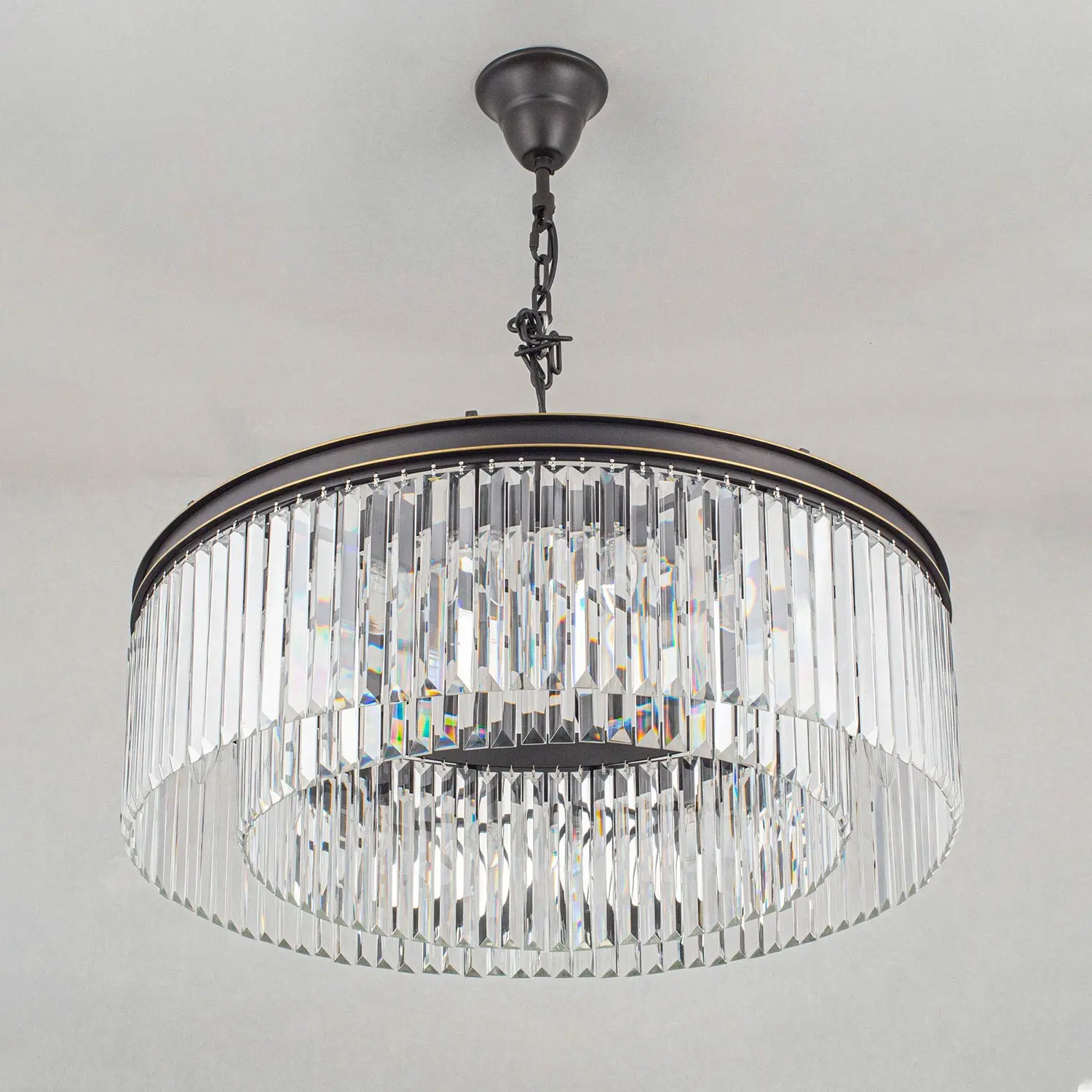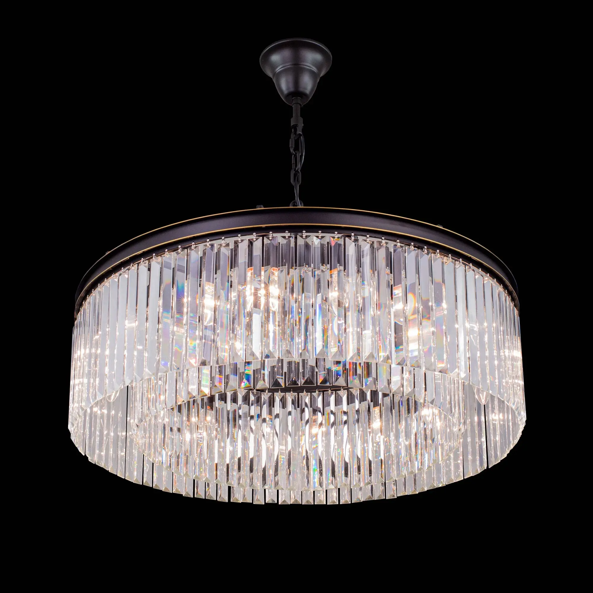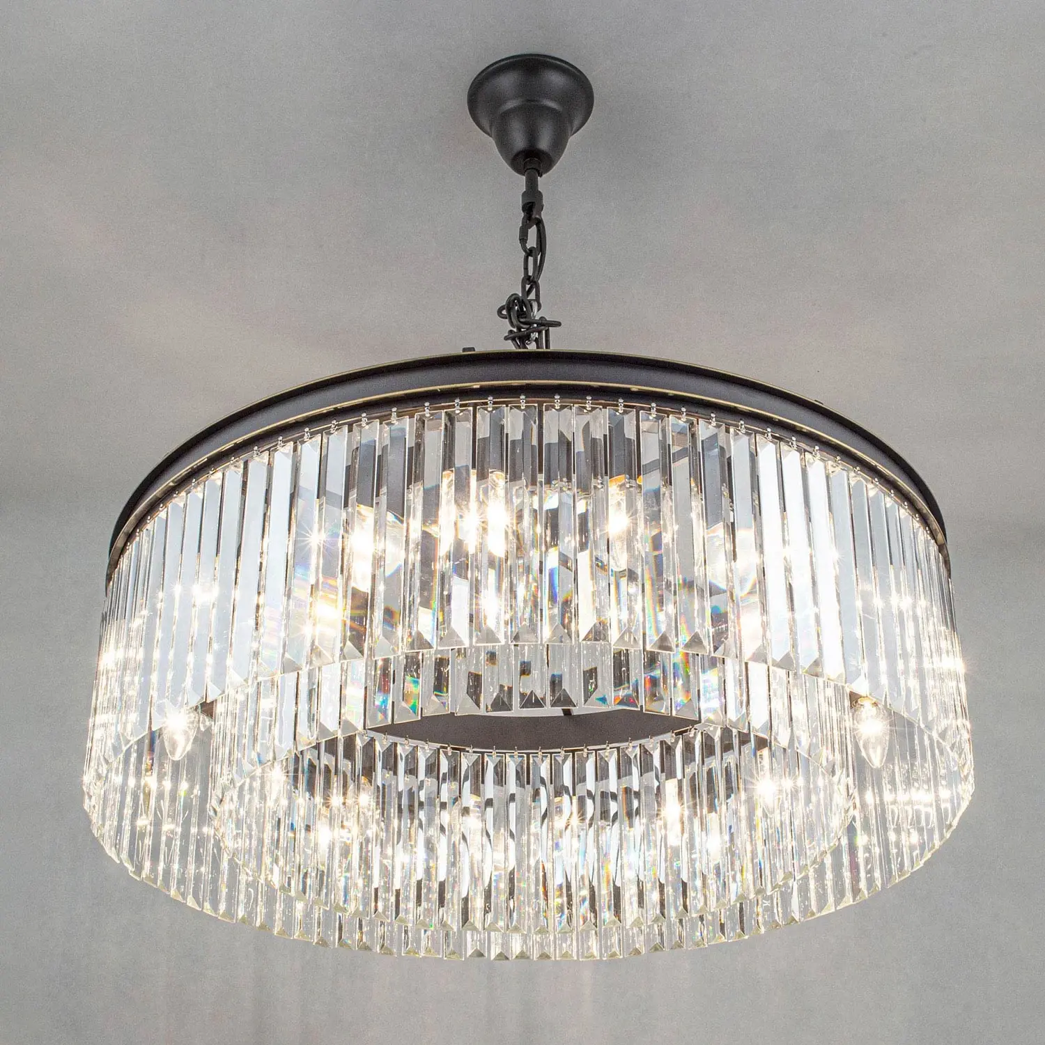 Многие наши покупатели называют люстры из коллекции Мартин брутальными, и с этим сложно не согласиться. При взгляде на массивную металлическую арматуру и огромное количество хрустальных камней вспоминается именно этот эпитет. Словосочетание «хрустальная люстра» априори веет признаком благополучия и достатка в доме. Современные модели хрустальных светильников коллекции Мартин принесут в жилище именно эти ощущения, а ослепительная игра света на хрустальных подвесках всегда будет радовать вас и ваших гостей. Новая модель Мартин создана из хрустальных элементов с минимальным количеством граней, такую огранку хрусталя принято называть – призма. Это решение позволят защитить глаза от свечения открытых ламп, но ни в коем случае не умаляет способностей преломления света хрустальными подвесками светильника. Отражённый свет в помещении заставит сверкать ваш светильник всеми возможными цветами, и удивит неповторимым узором на поверхностях вашего интерьера. Люстра диаметром 80 сантиметров на 16 рожков, с регулируемой высотой и возможностью потолочного крепления, осветит от 29-ти до 45-ти квадратных метров.