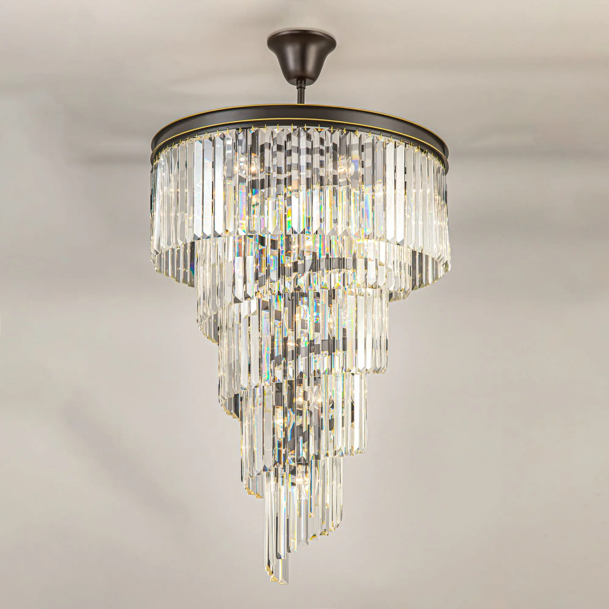 Стильная каскадная подвесная люстра Citilux Мартин CL332171 с шикарными хрустальными подвесками, ниспадающими по спирали. Основание модели круглой формы выполнено из металла солидной толщины, окрашенного в темный коричневый цвет. Казалось бы, незначительная деталь - золотистая окантовка наружных колец, как последний штрих мастера, придает светильнику завершенный облик. Тип крепления – крючок. Высоту изделия можно отрегулировать в диапазоне от 2,5 метров до 1,06 метра. В люстре 21 ламп с цоколем Е14 и максимальной мощностью для ламп накаливания 60Вт. Суммарная мощность 1260 Вт, площадь освещения до 38 кв. метров. Светодиодные лампы можно использовать более яркие. Светильник отлично подойдет в большой зал или гостиную, оформленную в классическом или современном стиле, в том числе стиле лофт. Более того, это прекрасный вариант для освещения лестничных пролетов в загородном доме и помещений со вторым светом.