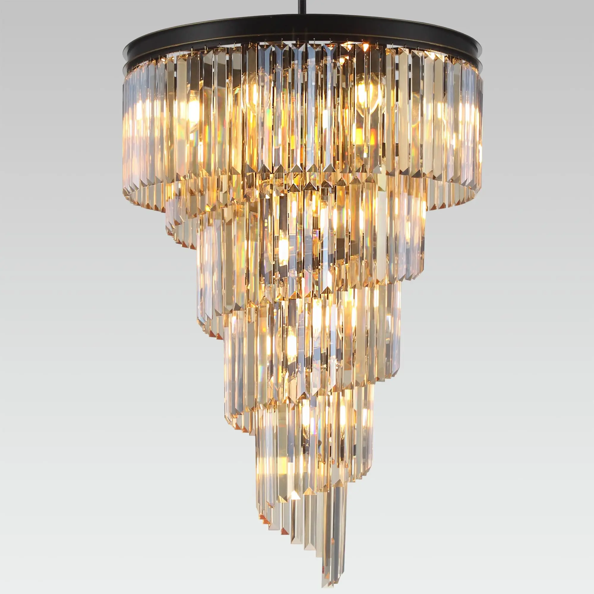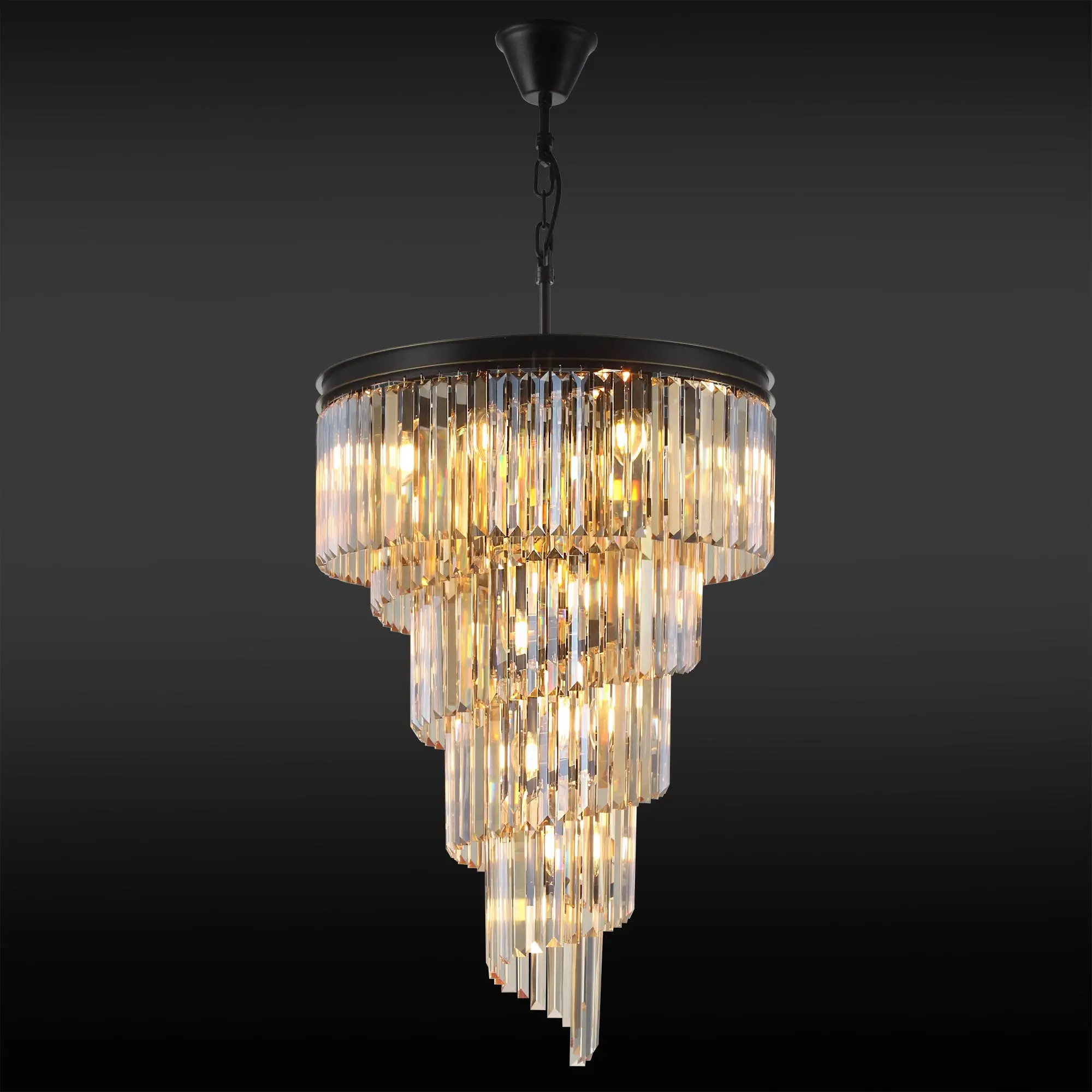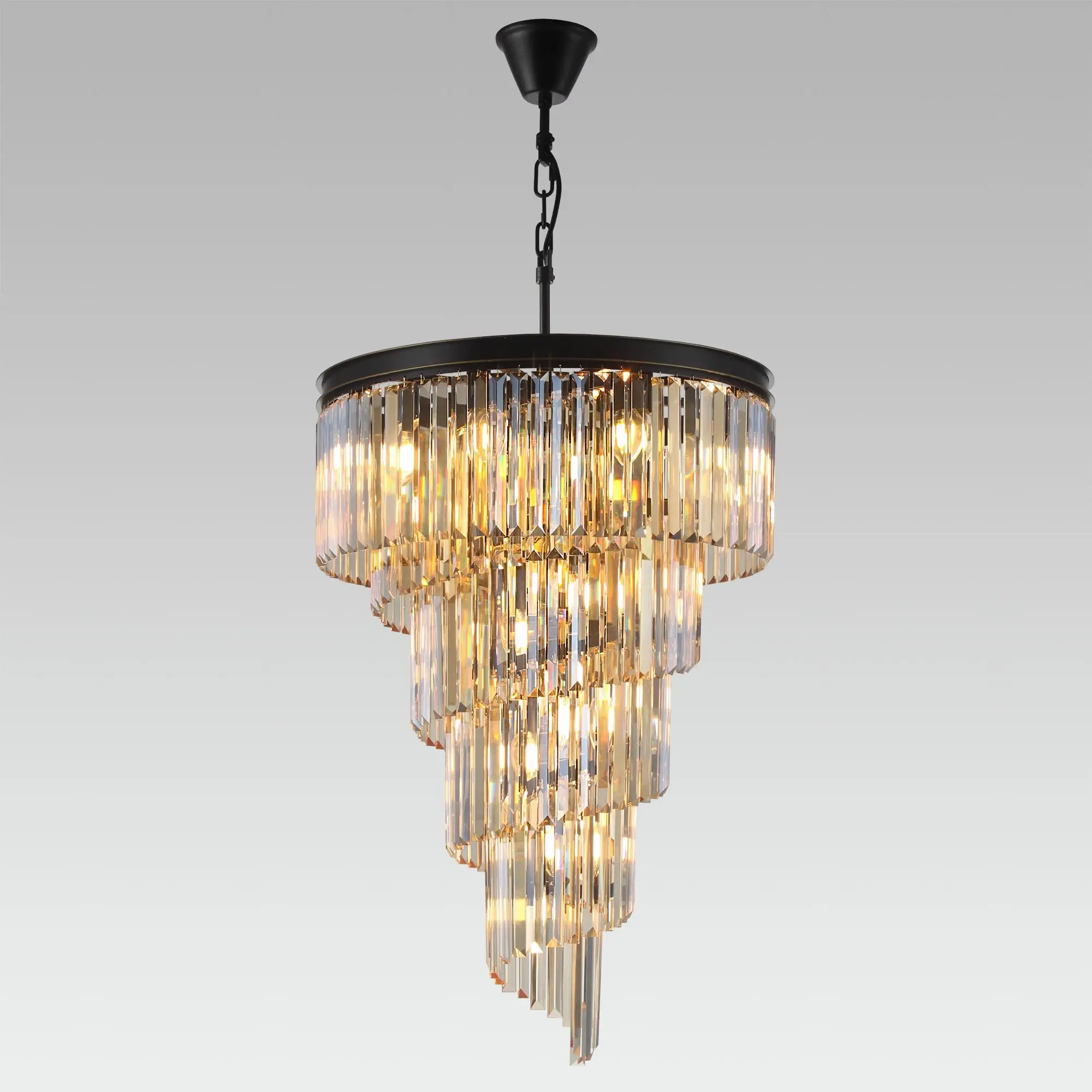 Стильная каскадная подвесная люстра Citilux Мартин CL332172 с хрустальными подвесками модного оттенка шампань, ниспадающими по спирали. Основание модели круглой формы выполнено из металла солидной толщины, окрашенного в темный коричневый цвет. Казалось бы, незначительная деталь - золотистая окантовка наружных колец, как последний штрих мастера, придает светильнику завершенный облик. Тип крепления – крючок. Высоту изделия можно отрегулировать в диапазоне от 2,5 метров до 1,06 метра. В люстре 21 ламп с цоколем Е14 и максимальной мощностью для ламп накаливания 60Вт. Суммарная мощность 1260 Вт, площадь освещения до 38 кв. метров. Светодиодные лампы можно использовать более яркие. Светильник отлично подойдет в большой зал или гостиную, оформленную в классическом или современном стиле, в том числе стиле лофт. Более того, это прекрасный вариант для освещения лестничных пролетов в загородном доме и помещений со вторым светом,