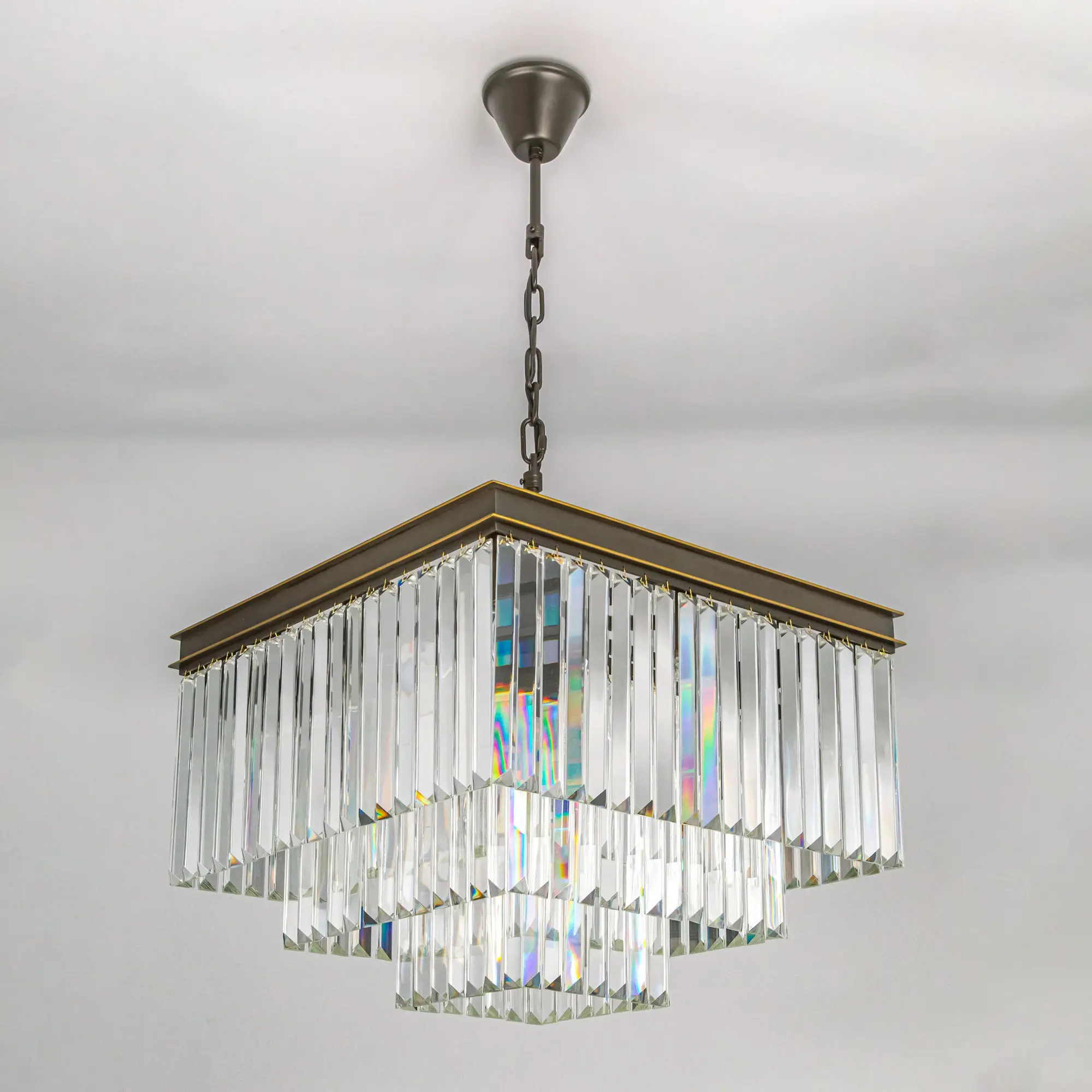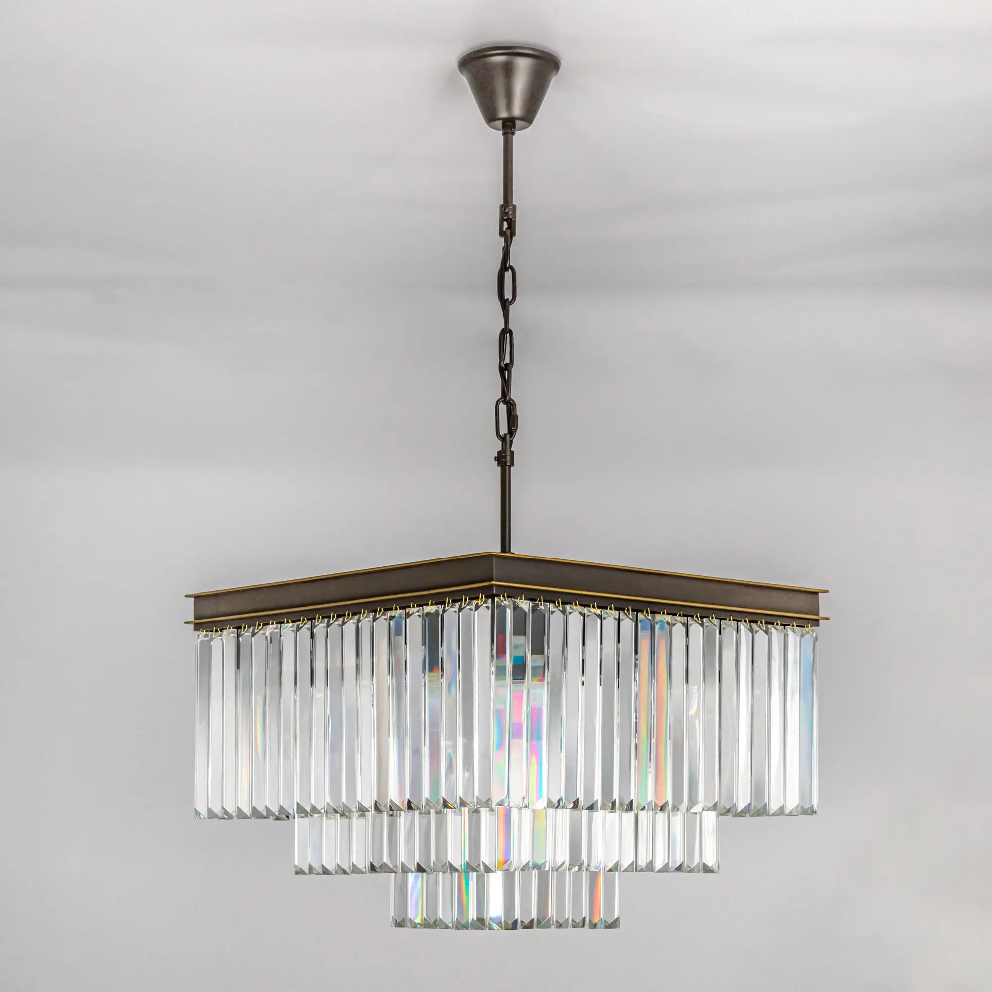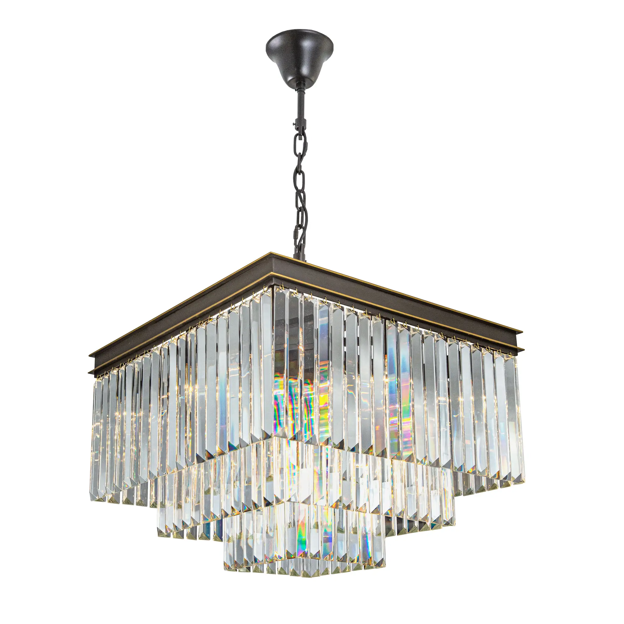 Стильная подвесная люстра Citilux Мартин CL332231 с шикарными хрустальными подвесками, расположенными каскадом в три яруса. Основание модели квадратной формы выполнено из металла солидной толщины, окрашенного в темный коричневый цвет. Казалось бы, незначительная деталь - золотистая окантовка, как последний штрих мастера, придает светильнику завершенный облик. Тип крепления – крючок. Высоту изделия можно отрегулировать в диапазоне от 1,39 метра до 55 см, для использования в помещениях как с высокими, так и с низкими потолками. В люстре 12 ламп с цоколем Е14 и максимальной мощностью для ламп накаливания 60Вт. Суммарная мощность 720Вт, площадь освещения до 31 кв. метра. Светодиодные лампы можно использовать более яркие. Светильник отлично подойдет гостиную, столовую и спальню, оформленную в классическом или современном стиле, в том числе в стиле лофт,