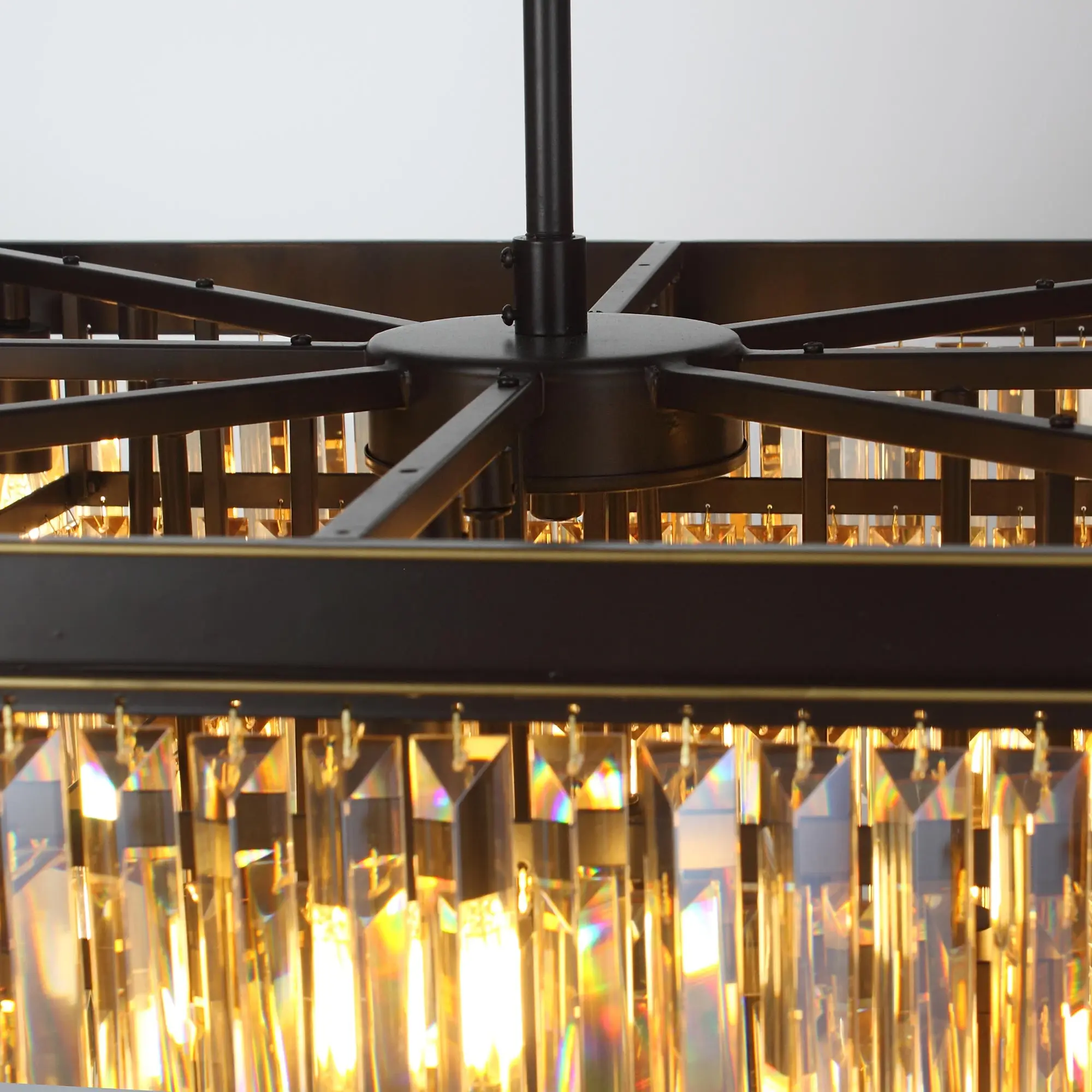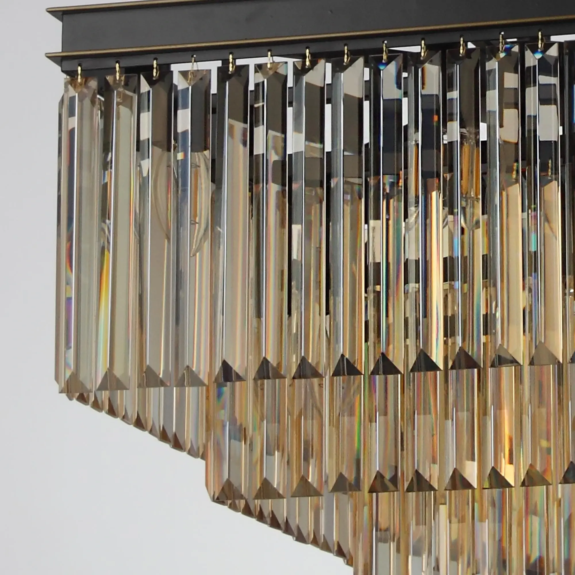Стильная подвесная люстра Citilux Мартин CL332232 с хрустальными подвесками модного оттенка шампань, расположенными каскадом в три яруса. Основание модели квадратной формы выполнено из металла солидной толщины, окрашенного в темный коричневый цвет. Казалось бы, незначительная деталь - золотистая окантовка, как последний штрих мастера, придает светильнику завершенный облик. Тип крепления – крючок. Высоту изделия можно отрегулировать в диапазоне от 1,39 метра до 55 см, для использования в помещениях как с высокими, так и с низкими потолками. В люстре 12 ламп с цоколем Е14 и максимальной мощностью для ламп накаливания 60Вт. Суммарная мощность 720Вт, площадь освещения до 31 кв. метра. Светодиодные лампы можно использовать более яркие. Светильник отлично подойдет гостиную, столовую и спальню, оформленную в классическом или современном стиле, в том числе в стиле лофт.,